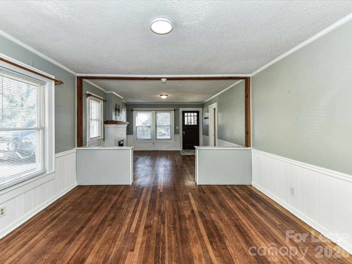 Lovely bungalow style home with rocking chair front porch in Albemarle. As you enter this beauty you will notice the nice open floorplan and the gleaming hardwood floors that go through most of the home. The large living room has a nonfunctional brick fireplace and flows nicely into the dining room. The kitchen features butcher block cabinets, new stainless steal appliances and access to the back yard. Great split floor plan with the primary bedroom with built in storage/desk is located in the rear of the home and the spacious secondary bedroom is located at the front of the home. In the hallway you will find a nicely updated bathroom with copper style sink and a tiled walk in shower and a good sized laundry room. Relax or entertain in the large back yard with some beautiful mature trees. Convenient location being close to downtown Albemarle, shopping, breweries, wineries as well as Badin Lake and Lake Tillery.