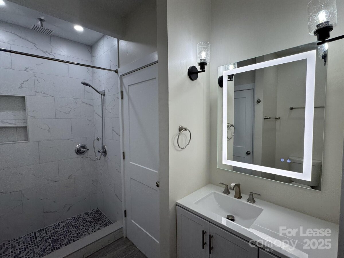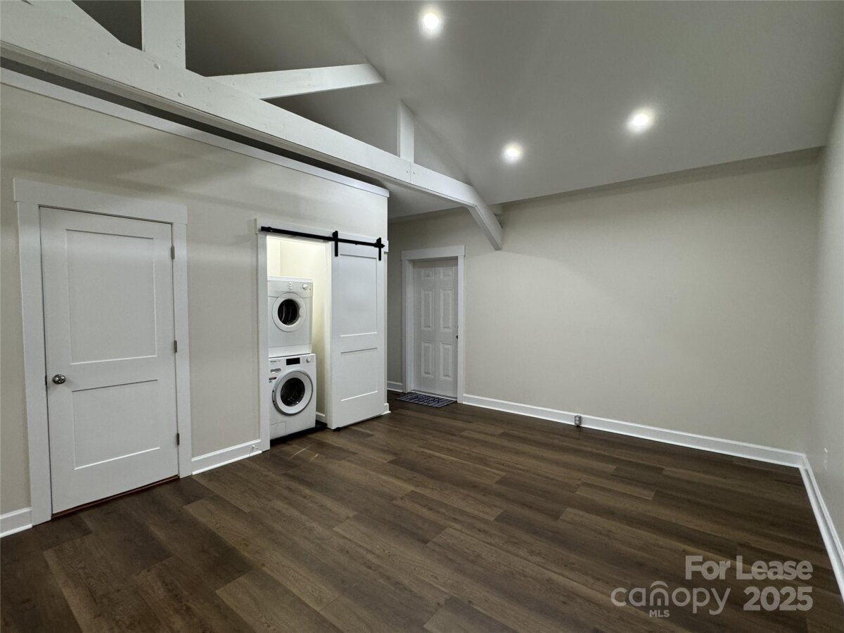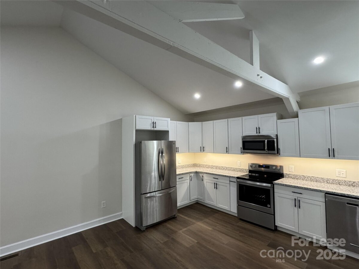 Beautiful one-level home is freshly created with high ceilings and heavy exposed beam trusses for an open, spacious feel. Rich woodgrain flooring flows throughout the all-new designer interior for luxurious living and easy cleaning. The new kitchen is the heart of this home, with shaker cabinets, a separate pantry, large granite counters, and stainless steel appliances that make cooking a joy! Spacious bedrooms have mirrored closets and ceiling fans, and new windows to let in lots of natural light. The tiled spa shower boasts a ceiling rain shower plus a dual-control wand to make getting ready a breeze. All HVAC, plumbing, and electrical systems are new. Thick soundproof insulation makes the home cozy and quiet, and lots of green and energy-saving features keep utility costs lower. One bedroom has a loft for storage or extra sleeping space (would need a ladder). The large deck extends life outdoors with plenty of space for grilling and umbrella dining with your favorite friends. Plenty of parking makes for easily accessible entry, and old oaks and a wide-open lawn give room to run. If you have a boat, you can store it here and be relaxing on Badin or Tillery within 15 minutes. Groceries and Atrium Health are minutes away, and a half-dozen parks and just about any service are all within a few miles. About an hour to CLT or Piedmont Triad airports. $45 app per adult. $1,350/mo is discounted rent—if you pay before the 1st, get $30 off the $1,380 rent. Pets welcome (3 max, deposit + fee). See virtual tour at https://is.gd/NMaeRp