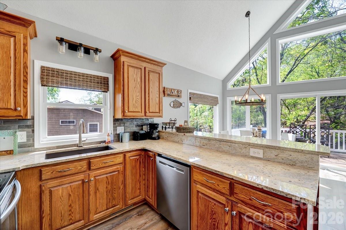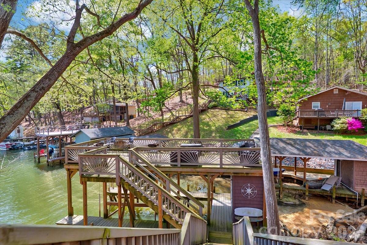 Ultimate Lakefront Retreat – 23234 Swift Island Rd, Albemarle, NC Get ready to fall in love with lake life! This stunning A-frame waterfront home is the perfect blend of charm, comfort, and adventure—tucked away on a peaceful, tree-lined lot with breathtaking views of the water. From the moment you walk in, you’re greeted by soaring ceilings and a dramatic wall of windows that flood the home with natural light and bring the outdoors in. The open-concept living, dining, and kitchen area is ideal for entertaining or simply relaxing after a day on the lake. Step right out onto the spacious deck and soak in the views—this is where memories are made! The kitchen shines with granite countertops, stainless steel appliances, and plenty of space to cook and gather. Flexible & Inviting Living Spaces This home offers 2 bedrooms with a unique and flexible layout: * A loft-style primary suite with its own private bathroom—your own peaceful retreat overlooking the main living area * A lower-level room currently used as a bedroom, complete with a coffee station—perfect for guests. * Additional living space downstairs provides a great bonus area for movie nights, game days, or extra sleeping space Outdoor Living & Lake Lifestyle The outdoor spaces truly steal the show: * Expansive upper and lower decks for entertaining * Covered porch for shaded relaxation * Private dock with covered boat slip * Brand new decking on the top level of the dock—perfect for sunbathing or hosting friends Whether you're boating, fishing, kayaking, or just unwinding by the water, this property delivers the full lakefront experience. Location Perks – Fun Around Albemarle & Lake Tillery Living here means you’re not just buying a home—you’re stepping into a lifestyle: * Lake Tillery – boating, fishing, paddle boarding, and endless water fun right outside your door * Uwharrie National Forest – hiking, camping, off-roading, and scenic trails just a short drive away * Old North State Club (nearby) – premier golf with stunning lake views * Downtown Albemarle – local dining, shops, and small-town charm * Known for great fishing—largemouth bass, crappie, and more Whether you’re looking for a full-time residence, weekend getaway, or income-producing vacation rental, this lakefront gem checks all the boxes.