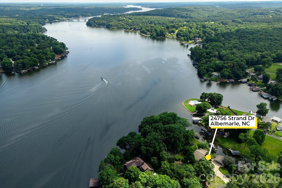 Where every day feels like a vacation—welcome to your Lake Tillery retreat. Just off the main channel of Lake Tillery, this private custom home is designed for the ultimate lakefront lifestyle. Offering over 4,000 square feet, the home provides exceptional space for both entertaining and everyday living. Dual primary suites, one on the main level and one on upper level, gives flexibility for guests, multi-generational living, or a vacation escape. Enjoy beautifully terraced outdoor living, featuring an in-ground pool and approximately 200 feet of shoreline. Two private docks with lifts, along with an impressive 950-square-foot enclosed boathouse—complete with roll-up doors and electric self-recovery—ensure effortless lake access and secure watercraft storage. Take in peaceful views of the James B. Garrison Bridge from the dock, relax poolside or by the fireplace while enjoying the privacy and tranquility this property offers year-round. No HOA. Short-term rentals permitted. Furniture available for purchase separately. Whether you’re seeking a full-time residence, weekend getaway, or investment opportunity, this exceptional lakefront property delivers unmatched versatility. With the perfect balance of lakefront privacy and convenient access to outdoor adventure and nearby amenities, this lake house is near to Morrow Mountain State Park and the Uwharrie National Forest; enjoy endless opportunities for hiking, biking, camping, and trail riding. Charming small towns including Albemarle, Norwood, Badin, Mount Gilead, and Troy are just a short drive away, offering local dining, shopping, and community events. A nearby winery adds to the area’s appeal, perfect for relaxing afternoons close to home. Lake Tillery is also home to two waterfront restaurants and three marinas. Enjoy the tranquility of the lake without sacrificing convenience—this property is ideally situated within easy reach of several major cities: Charlotte, Winston-Salem, Durham and Raleigh, Pinehurst, and Greensboro.