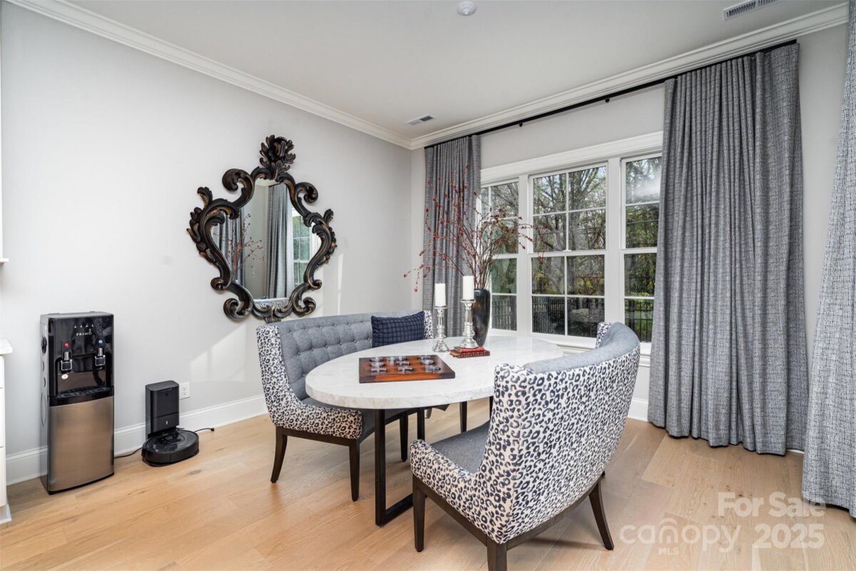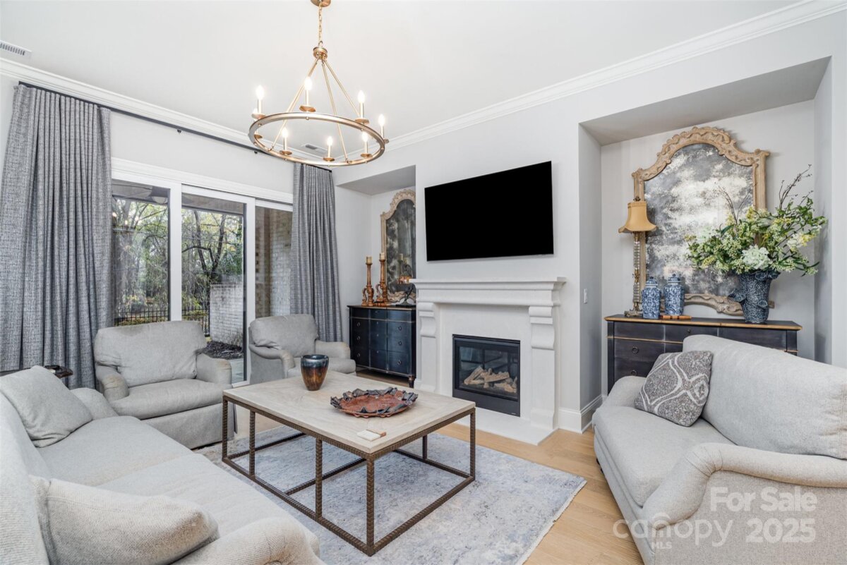 Lock-and-leave luxury in the heart of SouthPark! Built by Arcadia Custom Homes, this like-new and gently lived-in executive townhome offers refined finishes, exceptional storage, and a truly low-maintenance lifestyle with HOA-maintained exterior and yard. A welcoming foyer leads into an elegant open living area anchored by a gas fireplace, designer lighting, and seamless flow to the dining space and gourmet kitchen. Upstairs, the home features curated designer touches including striking black plantation shutters and thoughtful storage. The oversized primary suite is a standout, offering a generous bedroom with tray ceiling and an incredible custom closet system that is both beautiful and highly functional. Two additional bedrooms and full bathrooms, a loft, and a flex space previously used as an exercise room round out the upper level, providing room for work, wellness, or guests. The flex space includes professional-grade gym flooring, making it ideal for fitness, a home studio, or a high-durability workspace. A rare highlight of this property is its larger-than-typical backyard for the community, offering more outdoor enjoyment without the upkeep. The covered lanai overlooks the rear yard, and the in-ground gas grill hook-up creates a comfortable extension of the living space for outdoor meals and everyday relaxation. Perfectly maintained and move-in ready, this home combines elevated comfort with effortless living. Located just moments from SouthPark’s premier dining, shopping, and conveniences, this home offers upscale comfort with everyday ease.