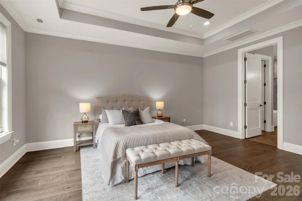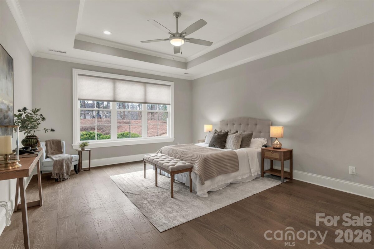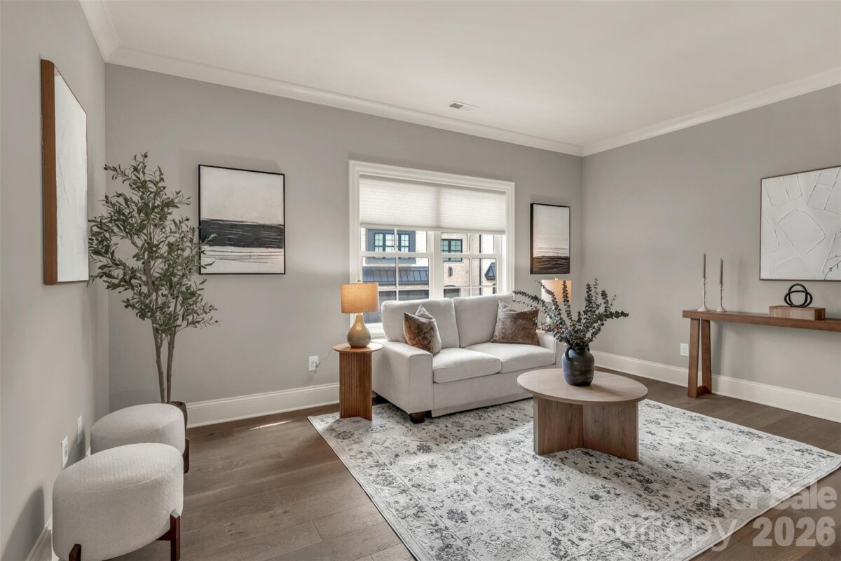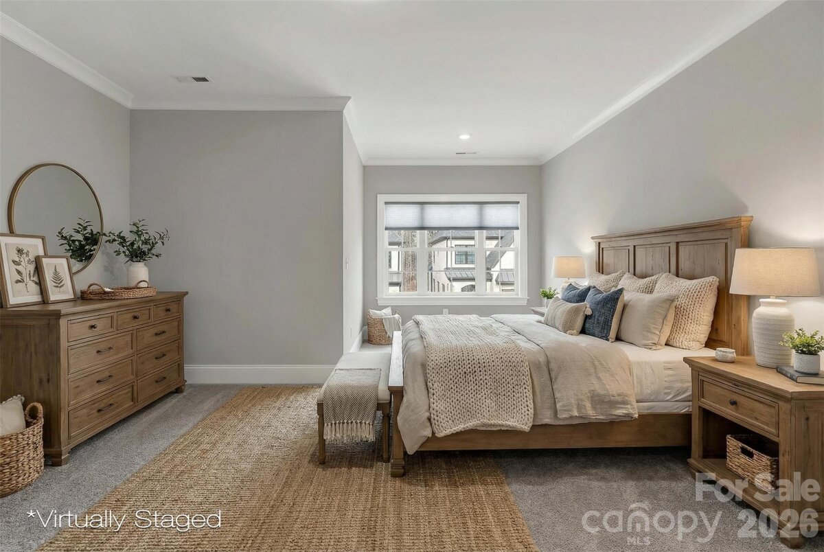 Step into refined luxury in this exquisite corner townhome, where meticulous attention to detail, superior craftsmanship, and sophisticated finishes converge in a thoughtfully designed layout tailored to the discerning buyer. Enter through the front portico and be welcomed by a stunning 8-foot custom walnut door that opens to a gracious foyer and an expansive open-concept great room featuring a vaulted ceiling. The chef’s kitchen flows seamlessly into the dining area and is complemented by a large butler pantry/scullery, ideal for both everyday living and entertaining. The main-floor primary suite offers a serene retreat with a tray ceiling and a luxurious spa-inspired bathroom, complete with a stall shower, freestanding soaking tub, and a walk-in closet with washer/dryer hookup for convenience in addition to the full laundry room located upstairs. Three-panel sliding doors extend the living space outdoors to a bluestone paver patio, overlooking the tranquility of a quiet, upscale residential neighborhood. Upstairs features 3 large secondary bedrooms with ensuite bathrooms and a relaxing loft area. Additional highlights include 10-foot ceilings on the main level, 9-foot ceilings upstairs, wide custom moldings, rich hardwood flooring, and a gas fireplace, all contributing to the home’s timeless elegance and exceptional comfort. Unit has the ability to be retrofitted for an elevator.