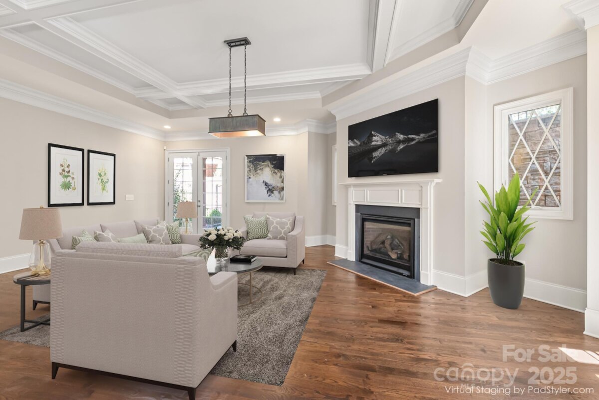 Welcome to Easton Park! This lock and leave, low maintenance luxury townhome is located at the end of a cobblestone drive and features a welcoming front porch. Step inside to a showcase offering main level living areas including a Chefs Kitchen with exceptional storage spaces, gourmet appliances and an expansive island. This all opens to a fabulous Den with coffered ceilings and a fireplace. Private main level Primary Suite. It features a spa like bath with walk in closet with custom designed storage system. Need a home office, craft room or a home gym? You can have it all! There are multiple flex spaces on the first and second levels. Need some great storage? You’ll find it in the easy-access walkout attic. Step outside to a lovely courtyard with privacy brick fencing, covered patio, paver patio and a bubbling water feature. Unbeatable South Charlotte location! Just minutes to SouthPark, The Arboretum, Carmel Commons where you will find the best in shopping & dining.