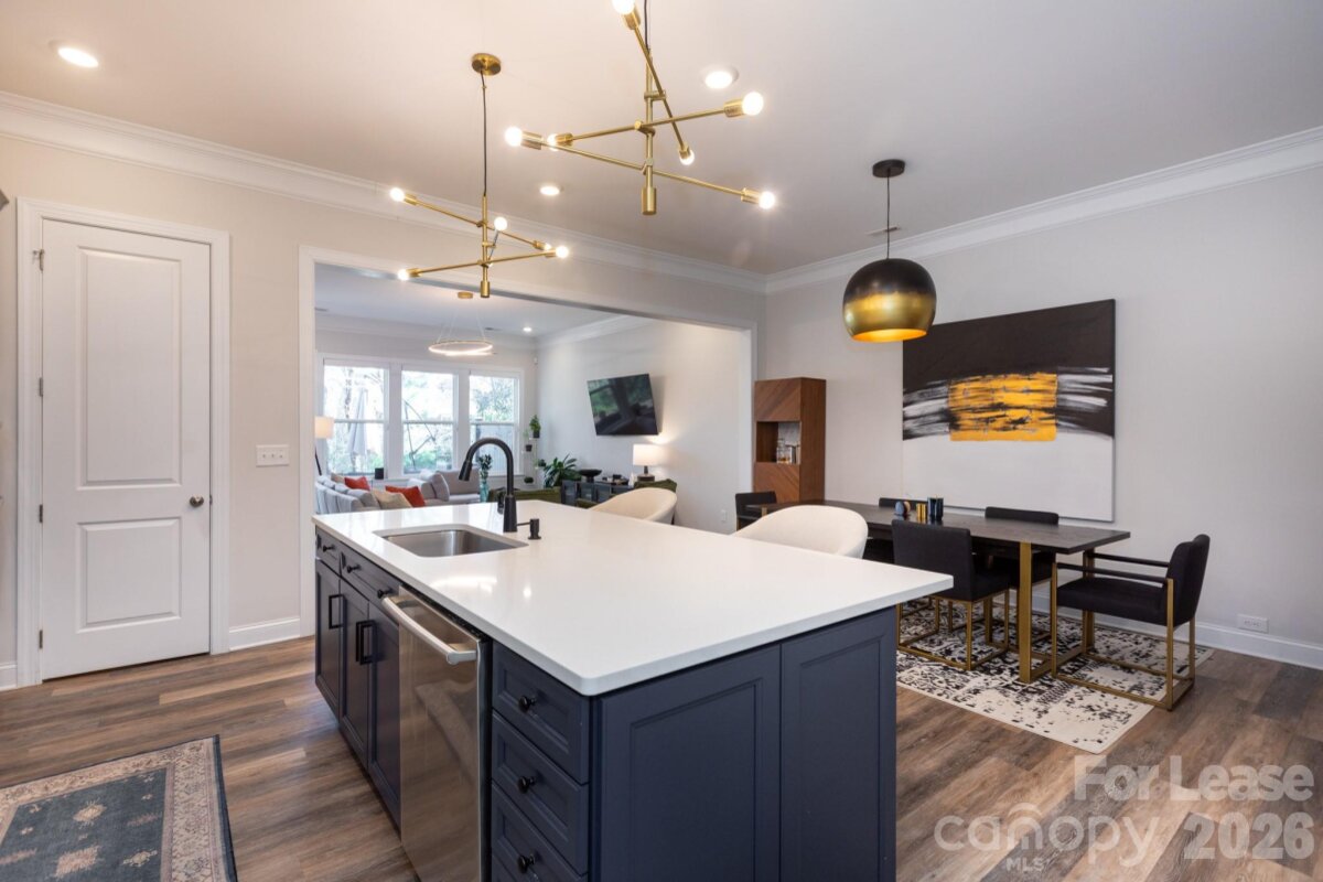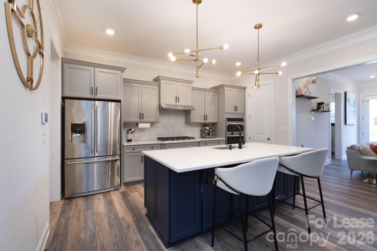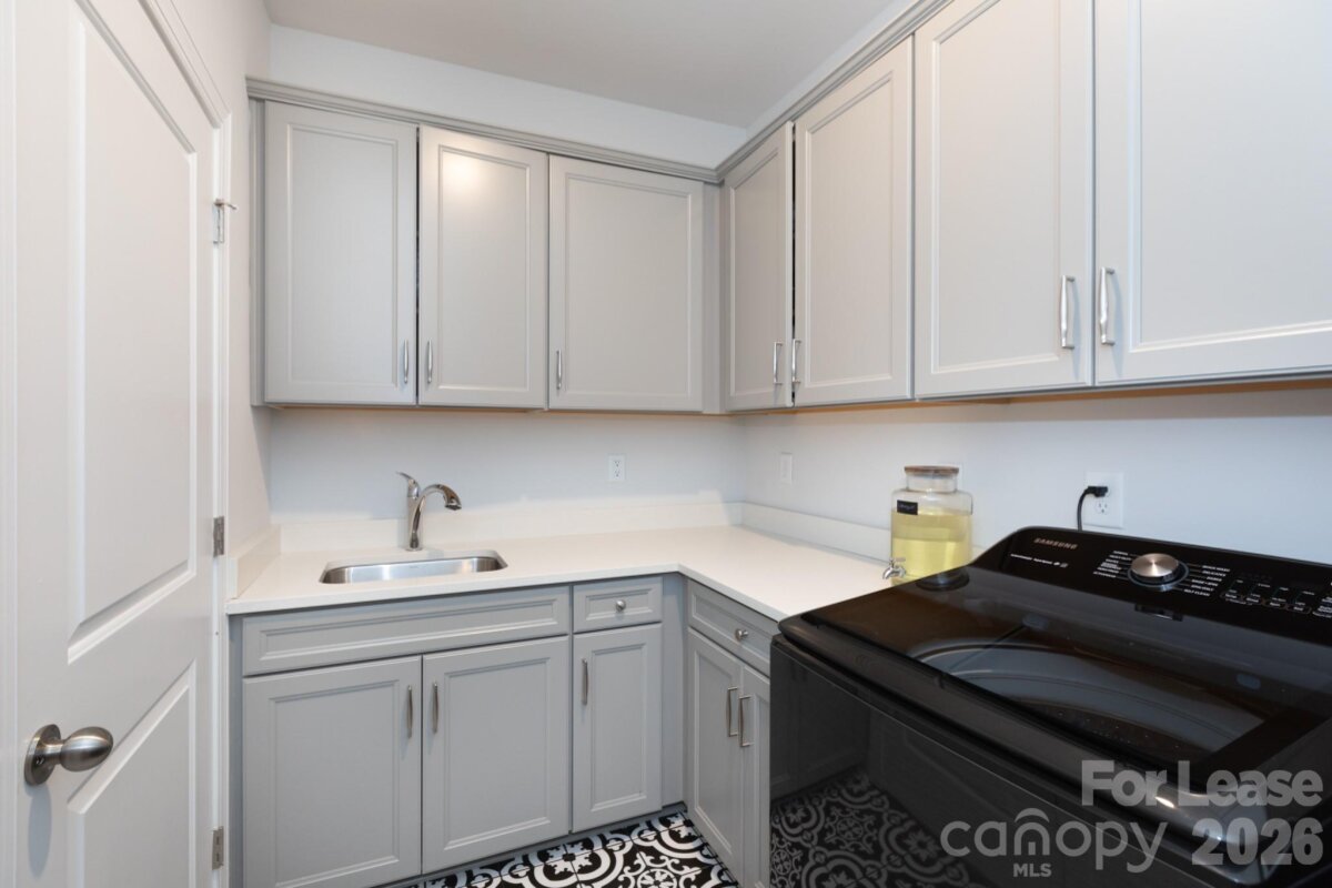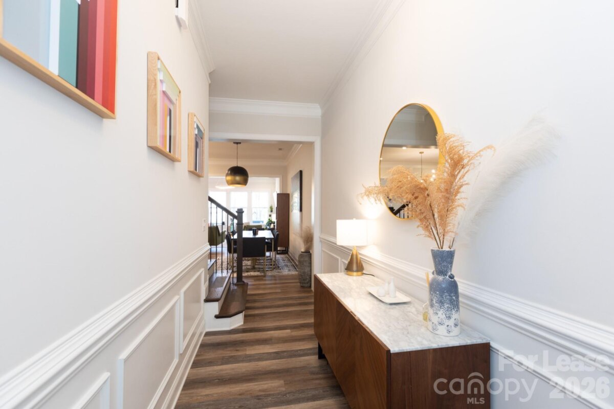 This exceptional townhome blends modern style with space and comfort, offering over 2,100 square feet and is located in the desirable neighborhood of Blanchard on Carmel. The home features 3 bedrooms, 2.5 baths, a pocket office, and a loft upstairs that’s ideal for a home office, workout area, or flex space. The main level offers 10-foot ceilings, with 9-foot ceilings upstairs, creating an open, light-filled layout. The kitchen is designed for both function and style with stone gray cabinetry, quartz countertops, ceramic tile backsplash, and stainless steel appliances, including a gas cooktop and upgraded wall oven/microwave. The primary suite is a true retreat, featuring his-and-her closets and a spacious ensuite with double vanities and a large walk-in shower. Additional highlights include a beadboard drop zone, laundry room with sink and washer/dryer included, tray ceiling in the primary bedroom, ceiling fans, a tankless water heater, Smart Home features, semi-automatic blinds, and an EV charger. The oversized one-car garage includes overhead storage, and the private patio offers a serene, wooded view, perfect for relaxing evenings. Water and garbage service are included, adding extra convenience. Located just minutes from SouthPark and Ballantyne, with easy access to I-485, this home offers style, comfort, and everyday convenience.