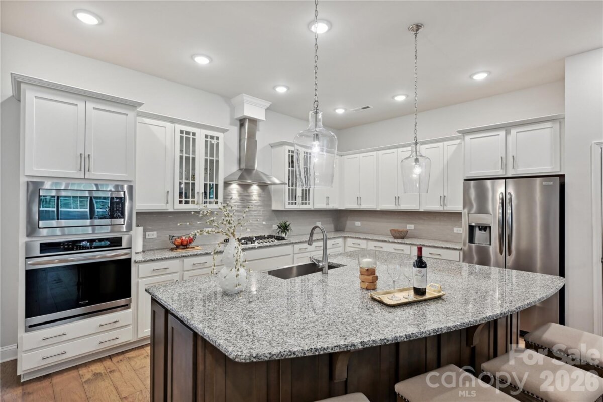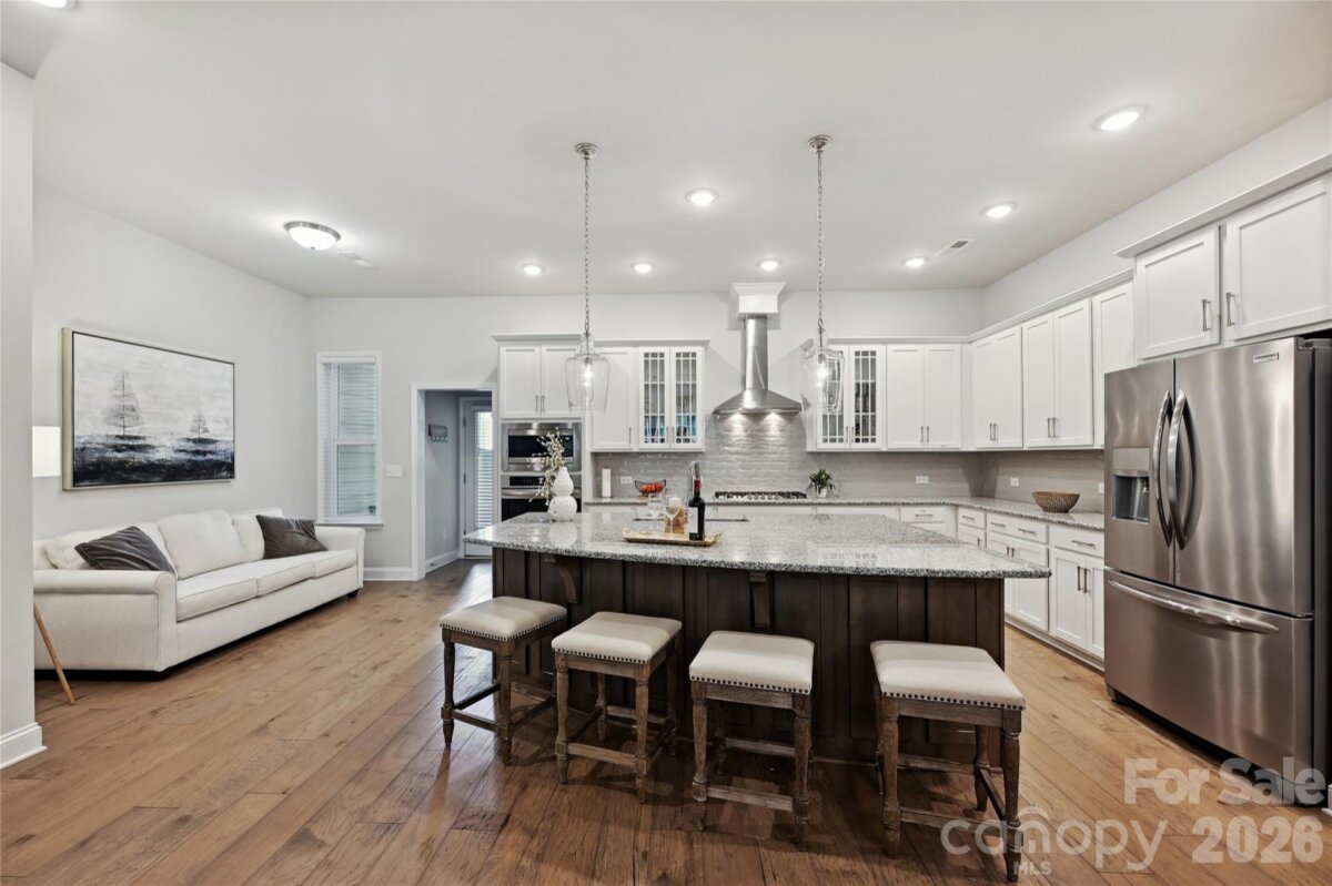 This contemporary townhome offers spaciousness, modern design and a layout for contemporary living. The open-concept main level centers around a gourmet kitchen with oversized island, wall oven and microwave, gas range with hood vent, and stylish cabinetry that blends function with form. The open-concept kitchen overlooks the dining and living areas creating the ideal entertaining space. Upstairs, a versatile loft offers added flexibility. The expansive primary suite is a standout, complete with a spa-like bath and generous closet space. The attached two-car garage provides both functionality and storage. Located just minutes from Ballantyne, the new Ballantyne Bowl with fabulous dining, entertainment center, shopping and so much more! The community of Southridge combines comfort, style, and an unbeatable location. Explore this fantastic townhome with unbeatable location with 4 beds total with a full bed and bath on main!