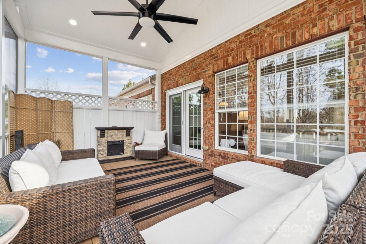 Living in Ballantyne has never looked better as it does in this 2-story townhome with a finished basement! Sitting in the desirable community of Ivy Ridge at Ballantyne, this beautiful all brick, end-unit Home has been meticulously maintained with new additions recently added over the last couple years. Step inside the front foyer where you are welcomed by hardwood floors and soaring ceilings. The cozy Den/Study is located to the front of the Home with the Dining Room on the other side. An Open layout is perfect for entertaining or spending time with family with the gas fireplace being the focal point of the Living Room. A large Gourmet Kitchen overlooks the Living Room featuring an electric range, new conventional wall oven & microwave, new dishwasher, new refrigerator, breakfast bar and a plethora of countertop space and cabinets/drawers. The main level is also highlighted with the private Primary Bedroom with its own Primary Bathroom and a huge walk-in closet. A newly added covered and screened rear deck was just added a couple years ago that offers the perfect outdoor retreat! Venture upstairs where you will find two spacious Guest Bedrooms each having a walk-in closet, additional Full Bathroom, Loft space, and the Office with French doors providing privacy from the rest of the Home. The Upstairs also has a 381 sq/ft walk-in attic space that is great for storage. A newly finished Basement offers additional living area that could also be used as a fourth Bedroom or 2nd living quarters with its own Full Bathroom. Another 935 sq/ft in the Basement that has HVAC ductwork ran to it already but could also be finished to give more heated living area to the Home. Walk-out Basement access leads to another outdoor living space with recently added pavers and gas line ran for a grill or fire pit. New washer and dryer in the laundry room! Extra lighting and windows in the Home with it being a rare end unit! A 2-Car Garage and extended driveway provides lots of parking. Lawn maintenance included as part of the community along with an outdoor pool, club house, and more! The Home is located a very short distance from Ballantyne Village and The Bowl which offers premier dining, entertainment, shopping, and a wide array of concerts and other events!