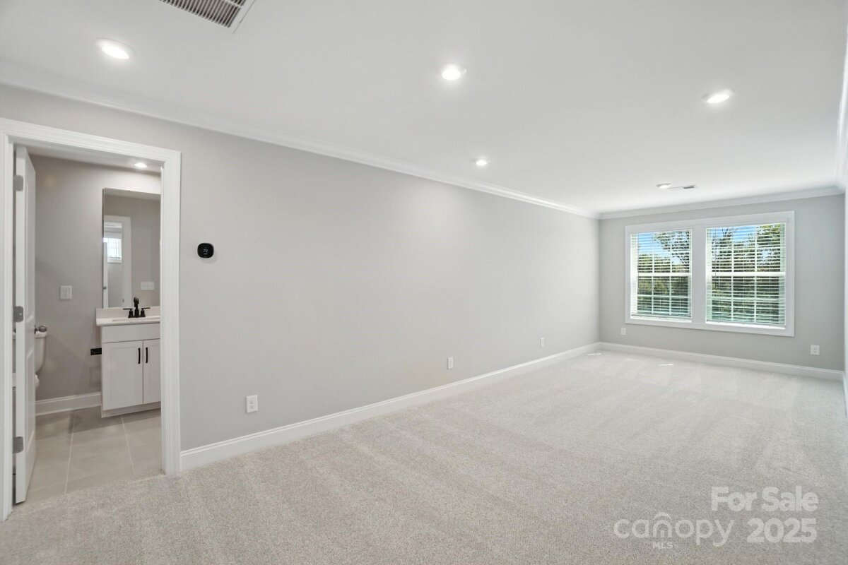 New Luxury Brick townhome in prime Ballantyne residential location! The Duke, a corner townhome has a North facing entrance and beautiful views of the wooded tree preserve from the abundance of windows in the home. Entering the main floor, the foyer sits between the guest wing where you have 2 Bedrooms, a large Bath with Dual Vanities and the Main Laundry Room. On the opposite side f the foyer, the garage entrance, Coat Closet , Stair case with storage underneath. The large open living area on the second floor features a stunning Gourmet Kitchen with Kitchen Aid appliances, 42" White cabinets w/soft close, pull out shelves, under cab. lights, Farmhouse sink, beautiful White Quartz countertops, ceramic Backsplash and a Large Walk In Pantry. A second floor Deck off the Large Great Room gives you additional entertaining space. Also on the 2nd floor, the Primary Bedroom with huge Walk In Closet where we have included a stacked Washer/Dryer giving you 2 Laundry locations. On the 3rd floor you have the 2nd Primary Suite with sitting area, large Dual Vanity bathroom and walk in closet. Walk in Attic Space provides easy access to your HVAC with plenty of extra room. This 4 bed/3.5 bath home is filled with light from an abundance of recessed lights and beautiful trimmed windows. 9 ft. ceilings with 8' doors on 1st and 2nd level along with upgraded LVP flooring elevate this home. Crown Molding, trimmed windows and 2" faux wood blinds throughout the home are a few of the upgrades that elevate the luxury feel of this home. One of 28 homes in our exclusive boutique community and one of the final two Duke plans. Incredible Financing Incentives available through our preferred lender. Listed price includes all upgrades!.