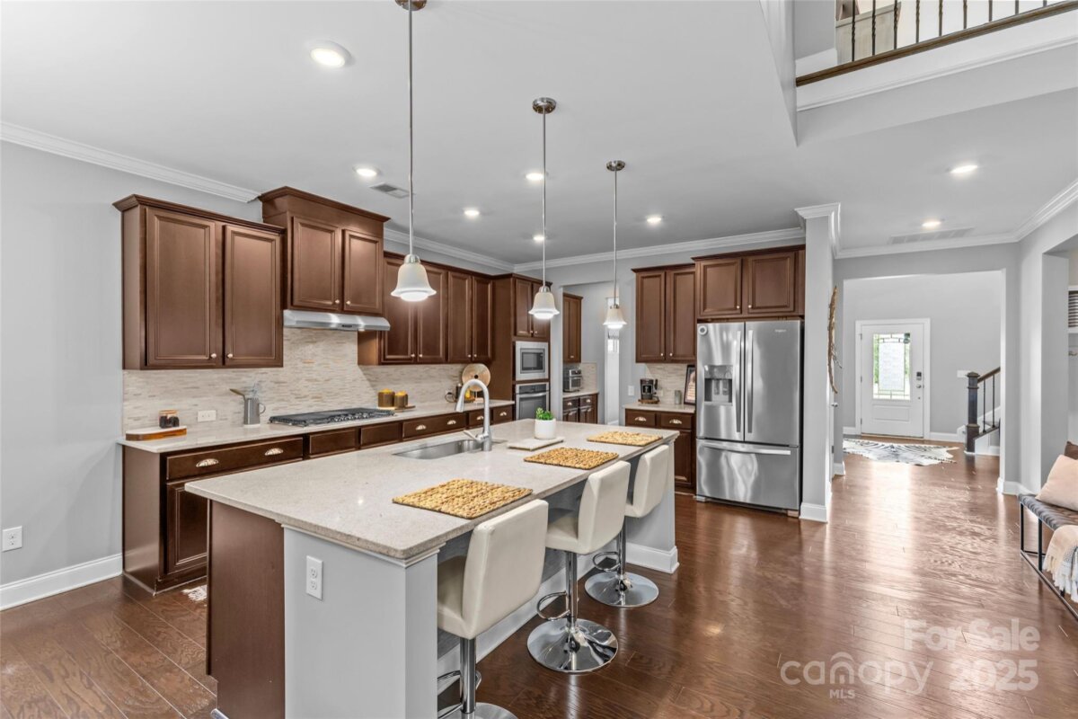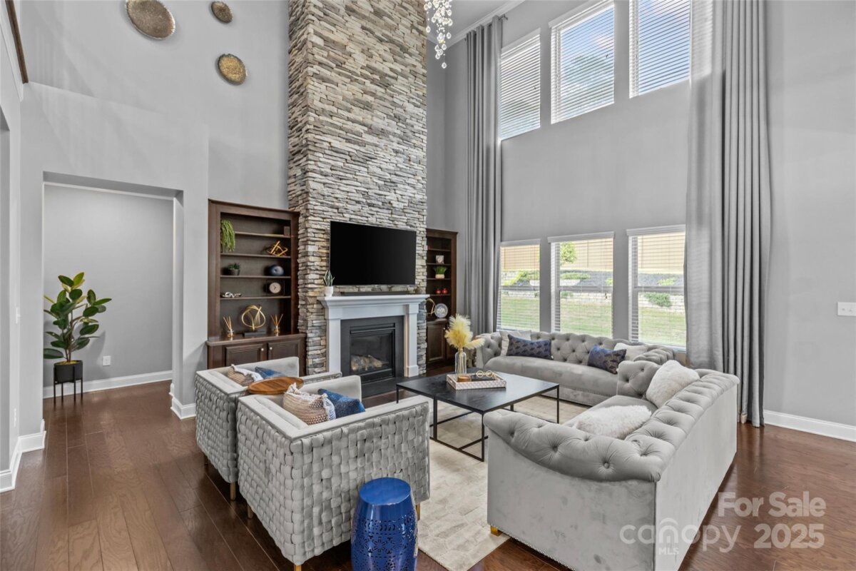 Welcome to this modern Craftsman-style, energy-efficient home in prime Ballantyne. With 5 beds, 4.5 baths, and 3,496 sq ft, this luxurious residence offers a two-story great room with stone fireplace, gourmet kitchen with gas cooktop and granite counters, and a first-floor guest suite. Enjoy the serene covered patio and professionally landscaped backyard. Foam insulation throughout ensures quiet comfort and significant energy savings. Located near Ballantyne, SouthPark, and top-rated Ardrey Kell High School. A must-see for families seeking luxury living in a premier location!
