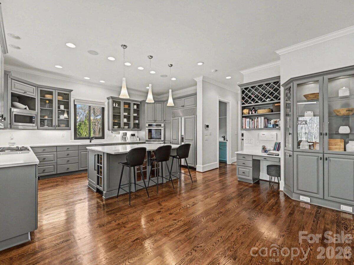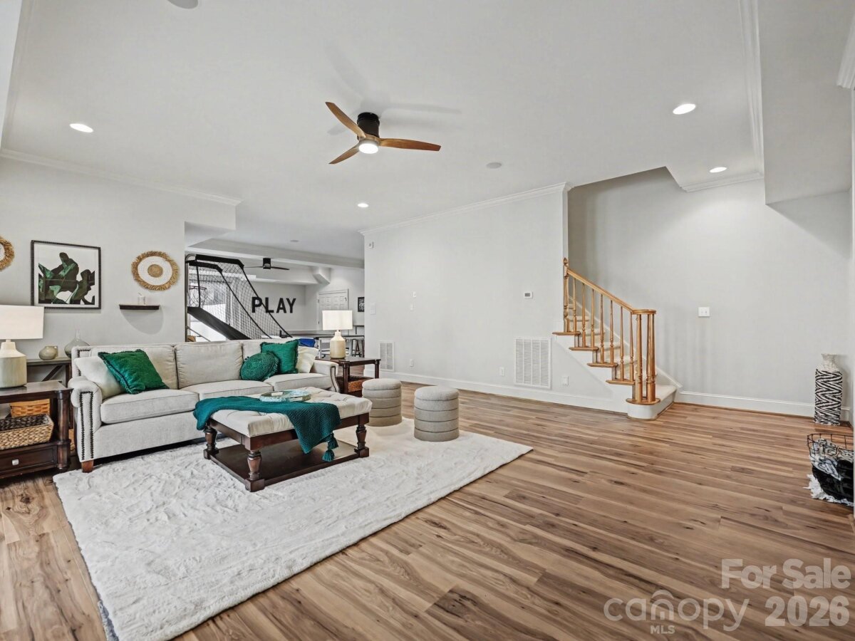 Is your client looking for a home with a Basement or one with a Secondary Living Space? -Well we have both so Welcome Home! This beautiful home is in amazing condition, neutral throughout and full of light. From the two story foyer to the formal living and dining this home flows beautifully . A cozy den with fireplace and built-ins overlooks the private terrace and rear yard and flows directly to a large chef's kitchen. The kitchen features a large island with seating, double ovens, gas cooktop, built in refrigerator, beverage refrigerator and two dishwashers along with abundant cabinetry, a built-in glass front hutch and desk area. The large breakfast area could also serve as a sunroom and opens to the upper terrace. An oversized primary suite boasts a trey ceiling, bayed window, large bath and substantial walk in closet. The second floor features a flex area that would be ideal for home gym or office. An elevated upper den with bamboo flooring and french doors is great media room or bonus. Three upstairs bedrooms, one with en-suite bath, other two share a jack and jill bath . Retreat to the lovely basement with two large entertaining areas and multiple exits to the covered patios and fenced yard. A secondary living area can be accessed from the basement or from a private exterior door and features a bedroom, living area, office or workout space and separate kitchen. A great multi-generational space. Beautifully landscaped and private fenced yard complete this gorgeous home. Floors have been beautifully refinished,new carpet 2024, neutral paint throughout, new exterior paint 2023 and new windows througout in 2025. Close to everything Ballantyne has to offer including the new Bowl at Ballantyne which features numerous restaurants, boutique shopping and many seasonal events. Bring your clients to their New Home .