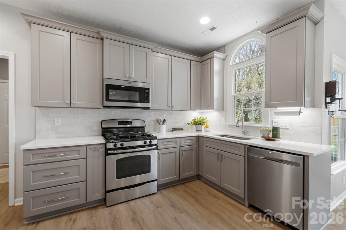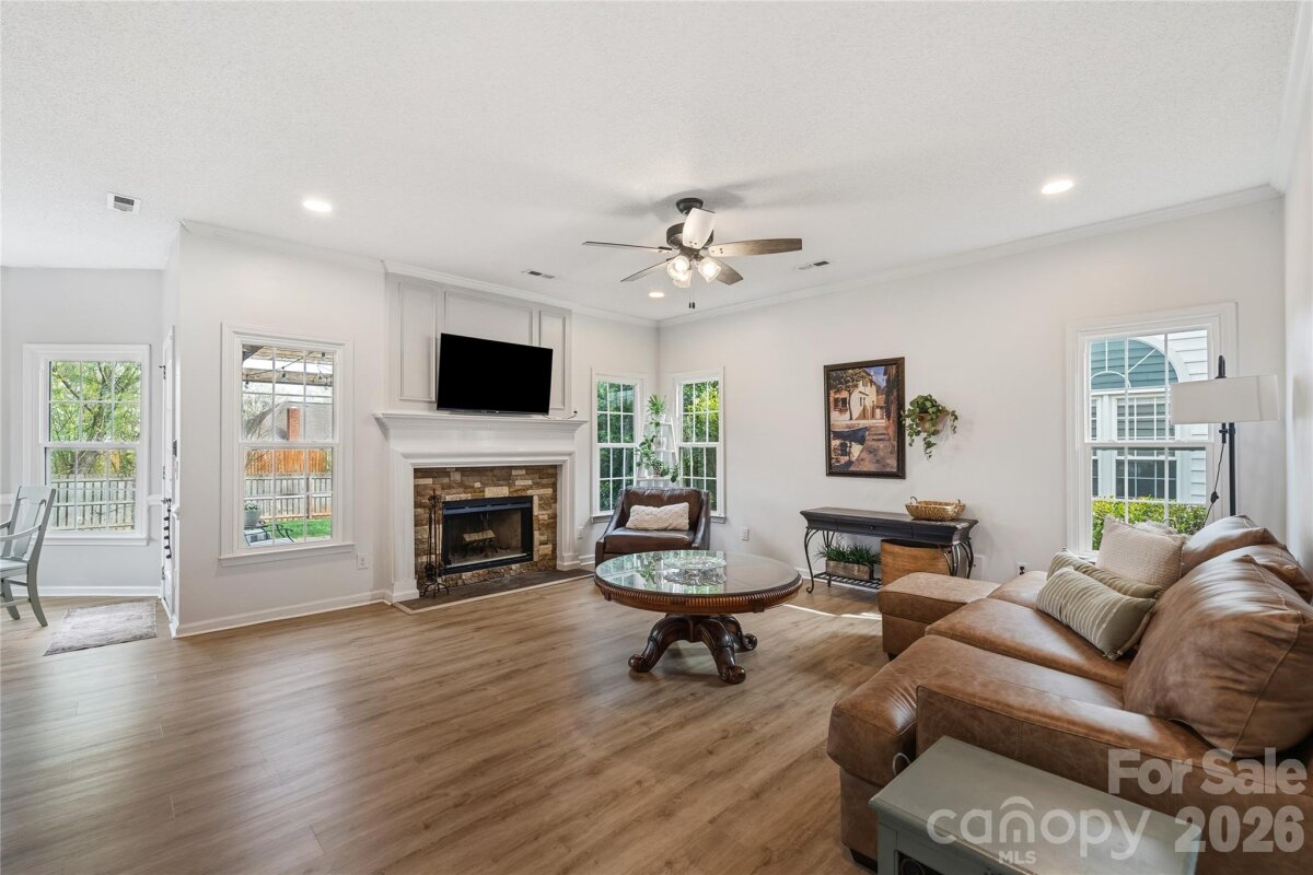 Location, Location!!! Don't miss this beautifully maintained home 4BR/2.5 Baths updated home located in cul-de-sac! This home features NEW laminate plank floors throughout except bonus room & one bedroom, NEW fully remodeled Kitchen with quartz countertops, NEW cabinets with soft close drawers and doors, NEW stainless steel appliances (refrigerator & dishwasher), gas stove, NEW backsplash, NEW light fixtures, NEW shelving in the pantry and drop zone in the laundry room. This house has NEW windows (Double Pane Low-UV glass Zen Windows), stone fireplace surround in family room open to kitchen. Open staircase to upstairs with wrought iron spindles. Half bath on main with decorative shiplap wall, office with french doors on main level. Primary suite upstairs with small office area or great nursery area. Updated tile in primary bath. NEW carpet in Bonus room which could be used as 4th bedroom, CUTE little cubby area great for kids play area. Spacious secondary bedrooms, one with NEW carpet and one with custom built-ins. 2021 NEW Gas furnace 2025 Replaced coil in A/C unit, Backyard with firepit, brick paver patio and pergola. Fully fenced with privacy fencing, irrigation front and backyards. Excellent location in neighborhood! Community pool, playground & tennis. Sought after schools.