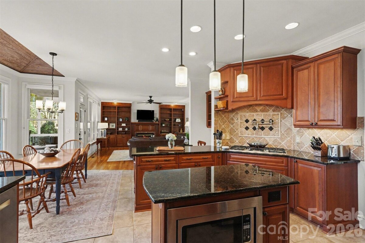 New listing in the highly sought after Kensington at Ballantyne! This gem of a community is one of Ballantyne's best kept secrets! Kensington is a perfect location with quick and easy access to I-485, the Ballantyne Corporate Park, the Ballantyne "Bowl" with restaurants, an amphitheater and attractive green spaces! This full brick beauty has a 3 car garage and is located on a quiet culdesac. The home has been faithfully maintained by the long term owners. There's fresh interior Shoji White paint, a new roof, a new vapor barrier, updated primary and hall baths and a huge 3rd level/walk up attic with extensive storage or a possible future expansion. You'll enjoy a dramatic light filled two story foyer upon entry. The two front "formal" rooms on either side currently serve as an office and a sitting room. Easy to transition back to a dining room if desired. The family room has high quality built-in cabinets and opens to the dining/breakfast area and thoughtfully redesigned kitchen w/ a walk in-pantry, dry bar, wine fridge, double wall ovens, island, pot filler, warming drawer and handy stand mixer cabinet with easy lift ledge for all your baking needs! The primary suite, three additional bedrooms, an ensuite bath, a jack and jill bath and a bonus/loft room round out the second floor. No need to go to the spa! The renovated primary bath is stunning and it's all you'll ever need! Large screened porch with vaulted ceiling and double level Trex decks are perfect to entertain family and friends or just enjoy the birds and quiet relaxation. The lot is a generous .415 of an acre w/ a level backyard that is very functional and pool ready if you so wish! So many options! Welcome home!!