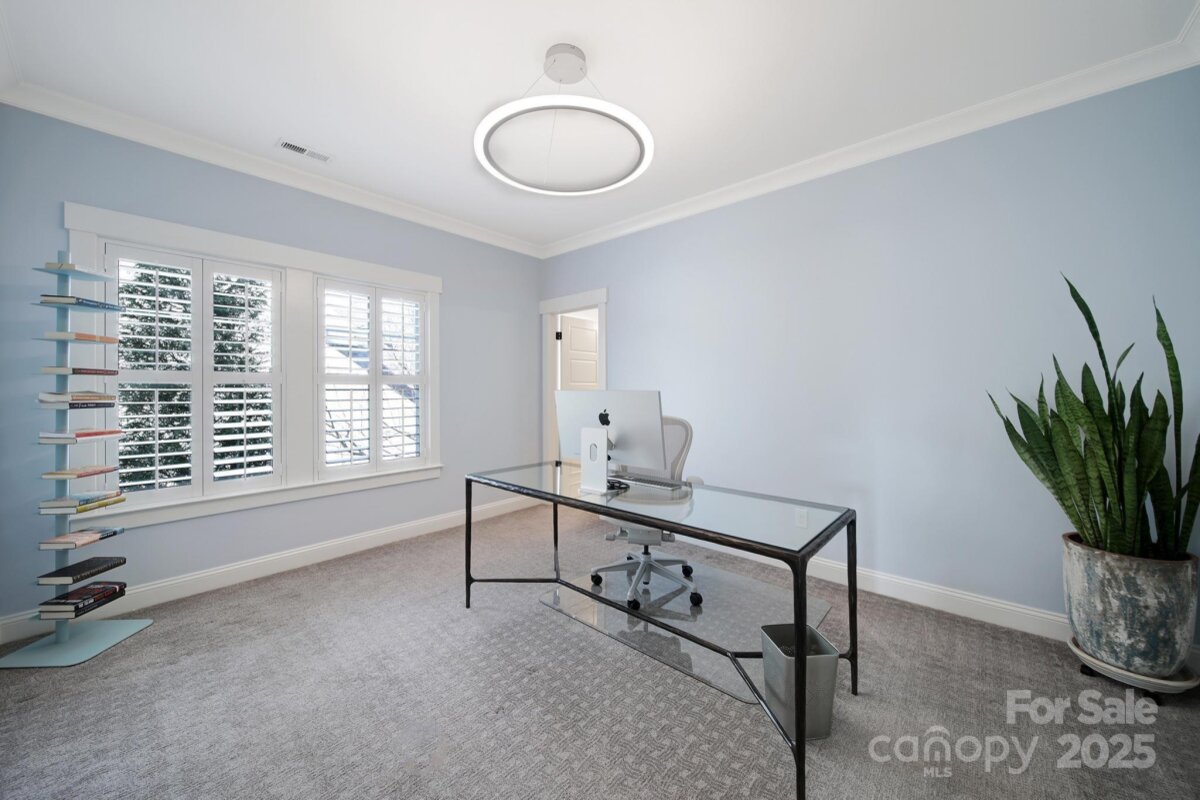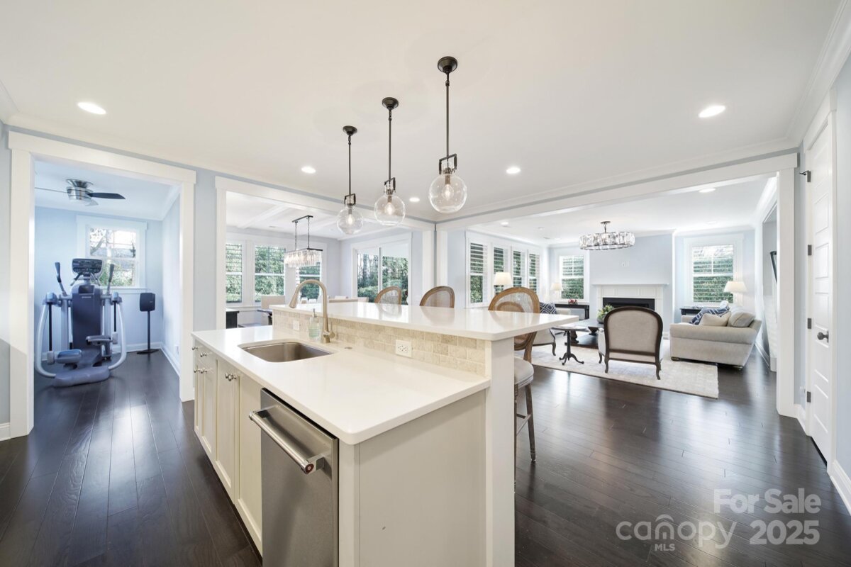 Located within walking distance of Blakeney Town Center, 8912 Blakeney Dr. showcases refined craftsmanship and thoughtful upgrades. The open-concept living areas are filled with natural light and enhanced by crown molding, Restoration Hardware lighting, and custom 4†plantation shutters throughout. The kitchen is designed for both function and style, featuring a Wolf range, KitchenAid appliances, expansive counter space, a large center island, and a custom walk-in pantry. The primary suite offers a private retreat with a spa-inspired bath and two generously-sized custom closets. Additional living spaces flow seamlessly to the fenced, secluded backyard ideal for relaxing or entertaining. The oversized garage with epoxy flooring provides ample room for parking and storage, with flexibility for a workshop or hobby space. Notable improvements include a complete new HVAC system installed in 2024, a Halo LED whole-house air purification system, Energy Recovery Ventilator (ERV) and a CPI security system. Convenient walking or biking proximity to Hawk Ridge, Community House, and Ardrey Kell schools adds to the home’s appealing location, along with nearby nature areas and community walking paths. This luxurious home offers a rare blend of high-end finishes, modern systems, and everyday convenience in one of the area’s most sought-after communities. Don't wait - schedule your private tour today!