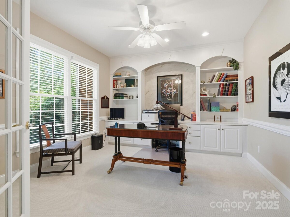 Well Maintained, Custom Built, Full Brick two story in the Heart of Ballantyne. This home has been lovingly maintained and updated over the years and is ready for new owners. Downstairs you will find a Home Office with built in Shelving and Storage Cabinets plus an open Living Room and Dining Room with lots of light. Walk into the Updated Kitchen with Large Center Island, Gas Cooktop, more Storage Cabinets and a cozy Breakfast Area. The two story Great Room has a gas fireplace and is a cozy place to kick back and relax. The Primary Bedroom is situated on the First Floor and is spacious and has an updated Bathroom with Glass walled shower, built in Jacuzzi Tub and his and hers sinks with more cabinets. The Walk in Primary Closet is quite spacious. Head upstairs and find a large loft/sitting area surrounded by 4 additional Bedrooms (the largest one could also be used as an Upstairs Bonus Room) and 2 additional full baths. There are also 2 separate areas that are currently being used as Storage Rooms. Head back downstairs and go out to the rear yard and you will find a Large Screen enclosed rear porch overlooking the heavily wooded rear yard and the rear wood deck. The side load garage is large enough to add some additional storage bins. When you head outside, you will find a short walk to the Morrison Family YMCA or a slightly longer walk to the proposed new Wegman's (scheduled to open later this year). or take a short drive the the Bowl at Ballantyne. A Truly GREAT house in a GREAT location and a GREAT place to call Home.