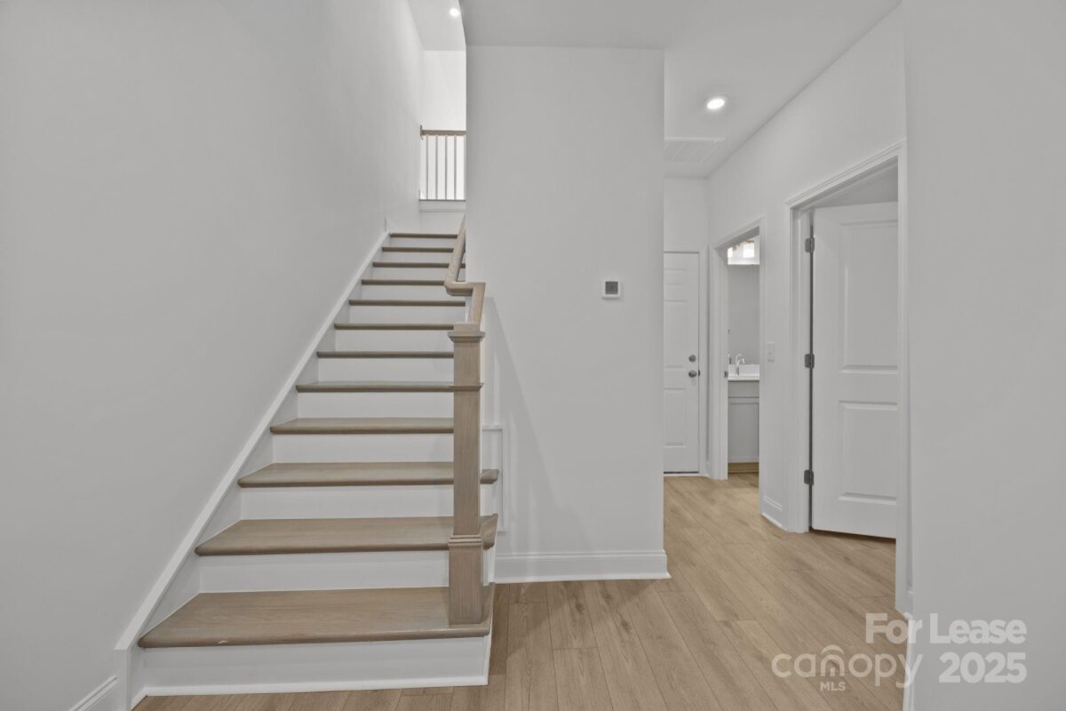 Welcome to this brand new never lived in 2025 Townhome located in the sought after Ballancroft Towns Subdivision in Ballantyne NC. Just minutes away from all that Ballantyne has to offer! This is a 3 bedroom, 3.5 bathroom townhome. Every room has its own full bathroom with two Primary Suites on the 3rd floor. Each floor has its own smart thermostat. Enjoy an updated kitchen with granite countertops, a large kitchen island and stainless steel appliances. The two primary suites have fully updated bathrooms with walk in tiled showers and double vanities. Enjoy a large balcony that overlooks the community and wooded space on the backside of the unit. A 2 car garage is also included with an EV charger!