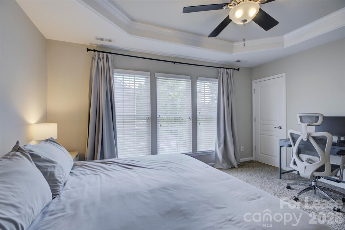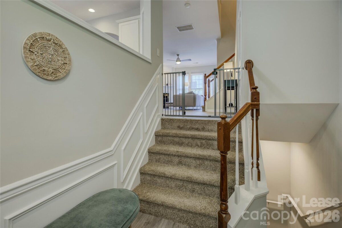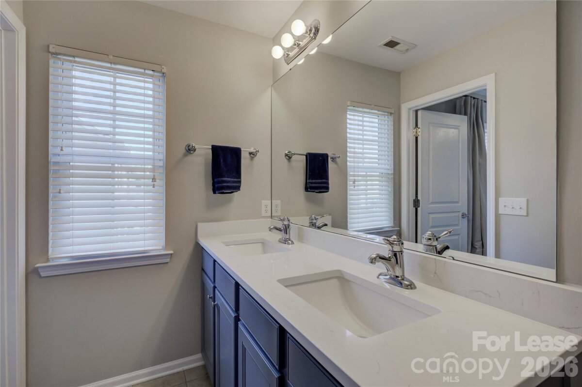 Step inside to a grand two-story foyer that flows into an open-concept layout, complete with high ceilings, custom trim, gas fireplace, and stylish modern tile flooring. The unique floor plan includes a front-facing kitchen equipped with granite countertops, stainless steel appliances, recessed lighting, a glass tile backsplash, breakfast nook, and bar seating—perfect for entertaining. Freshly painted and with new carpet, the home offers two spacious primary suites upstairs, each with tray ceilings, large bathrooms, and ample storage. The lower level includes a third bedroom with a private full bath—ideal for guests or in-laws. Enjoy abundant natural light throughout and take advantage of all the amenities Baxter Village has to offer, including two outdoor pools, a clubhouse, tennis courts, walking trails, sidewalks, playgrounds, and vibrant Market Street shops and restaurants. Award-winning schools! Photos were taken when the property was furnished but is currently being leased unfurnished. Due to increased enrollment, some schools are experiencing an enrollment freeze. This freeze does not impact any student currently attending these schools.