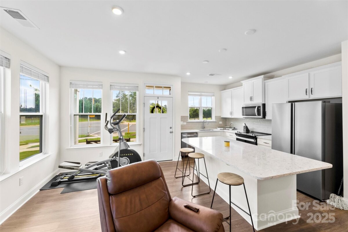 Beautiful End Unit Townhome just minutes from vibrant Downtown Belmont! Arrive to a covered front porch and step inside to an inviting open floor plan filled with natural light and stylish finishes. The kitchen features stainless steel appliances, granite countertops, a pantry, tile backsplash, and a spacious eat-at island with built-in storage—ideal for both casual dining and entertaining. Upstairs, the luxurious primary suite boasts a walk-in closet and spa-like bath with dual vanities, a walk-in tile shower with bench seating, and a glass enclosure. Two additional guest bedrooms provide generous space and ample storage for family, friends, or a home office. Additional highlights include: durable LVP flooring throughout, attached garage for convenience, and you are just a golf cart's ride away from Belmont’s shopping, dining, and entertainment. Experience small-town charm with modern living in Belmont. Schedule a showing today!