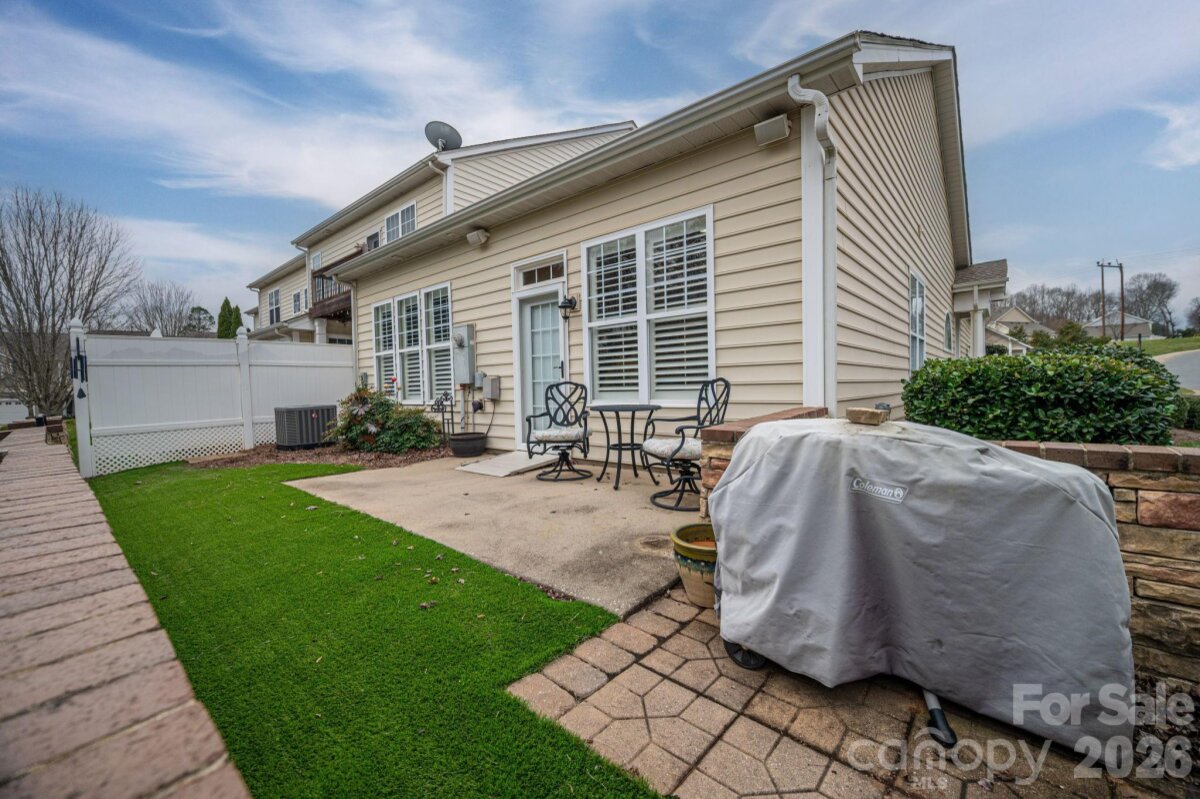 Located in the sought-after Water’s Edge community of Belmont, this beautifully maintained former model townhome offers effortless one-level living in a desirable end-unit setting. Thoughtfully designed with an open floor plan and an abundance of natural light, the home features expansive windows and upgraded shutters throughout, creating a bright and inviting atmosphere. Accessibility was a priority in the design, with 36-inch wide doorways that provide enhanced ease of movement. The kitchen showcases upgraded cabinetry, granite countertops, and a layout ideal for both everyday living and entertaining. A one-car garage adds convenience and additional storage. Step outside to a large private back patio, enclosed by a charming stone wall—perfect for relaxing, hosting guests, or enjoying quiet outdoor moments. Combining comfort, style, and functionality, this low-maintenance townhome offers a rare opportunity for single-level living in one of Belmont’s most desirable communities.