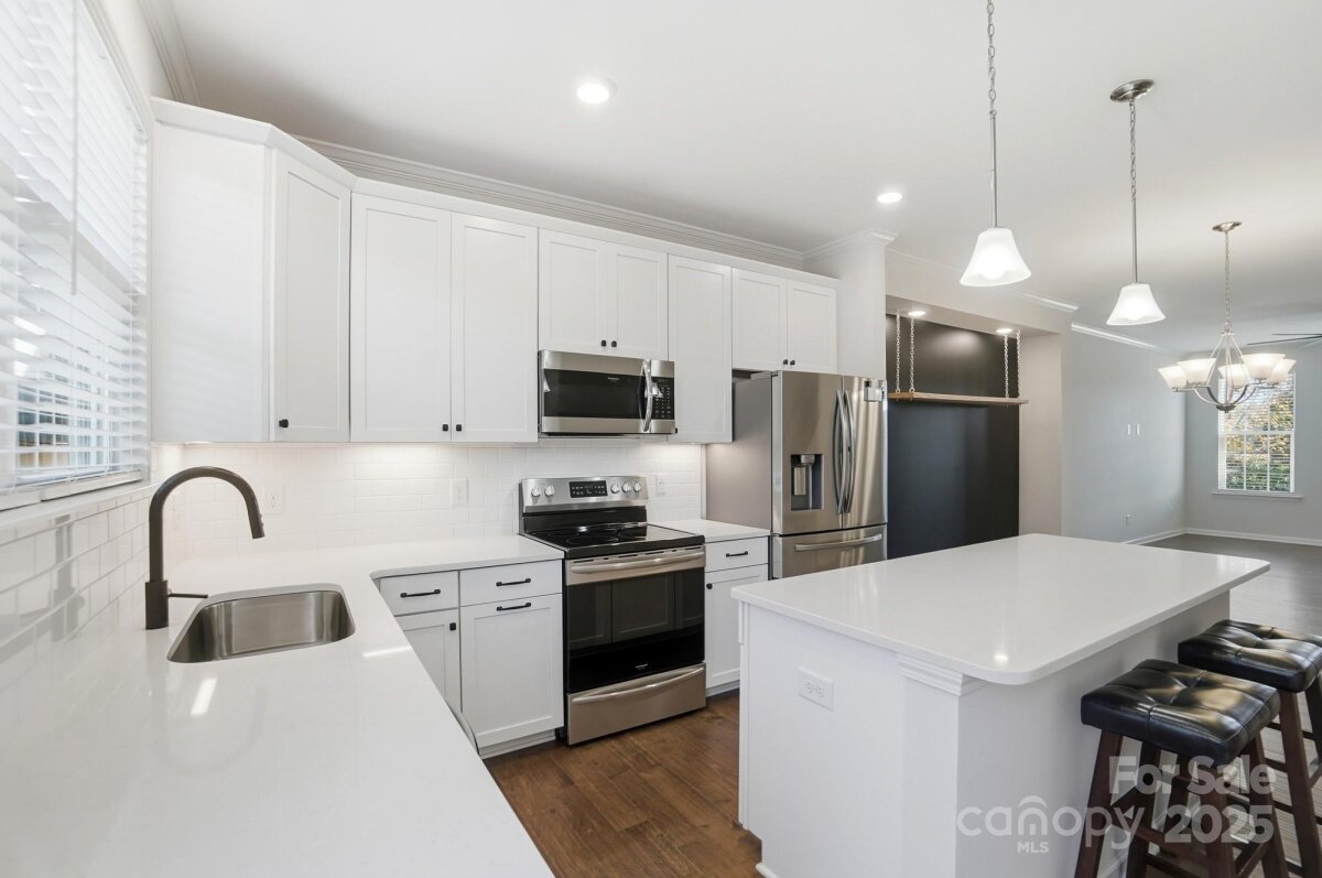 Introducing an exceptional opportunity to be waterfront in the prestigious Aberfoyle community of Belmont—a residence where luxury, convenience, and lifestyle converge effortlessly. Perfectly positioned, this home places you less than 10 minutes from Charlotte Douglas International Airport, while a leisurely walk or golf-cart ride brings you to the heart of downtown Belmont’s boutiques, restaurants, and charming main street energy. The new Belmont Recreation Center sits just across the street, and you’ll enjoy close proximity to Kevin Loftin Riverfront Park, scenic riverfront walking trails, and the U.S. National Whitewater Center, only minutes away. Built in 2020, this refined townhome showcases elevated finishes throughout. The main level features LVP flooring, while the kitchen impresses with sleek quartz countertops, stainless steel appliances, a pantry, pull-out trash, bar seating, and a farmhouse-style sink—perfectly blending functionality with style. The luxurious primary suite offers a serene retreat with a custom accent wall, an elegant tile walk-in shower, and dual vanities adorned with quartz. The second bedroom serves as a private guest suite with its own en-suite bath and generous walk-in closet. A conveniently located second-level laundry—with washer and dryer included—adds to the effortless livability of the home. What truly sets this property apart are the unobstructed, breathtaking views of the Catawba River. Step outside to your private, fenced patio, where you may even enjoy the unexpected delight of fresh bananas from the neighbor’s overhanging banana tree. Completing this exceptional offering is a detached one-car garage equipped with a kayak rack, ideal for those who love to take advantage of the river lifestyle. This residence artfully combines luxury, sophistication, and convenience—a rare find within one of Belmont’s most desirable communities.