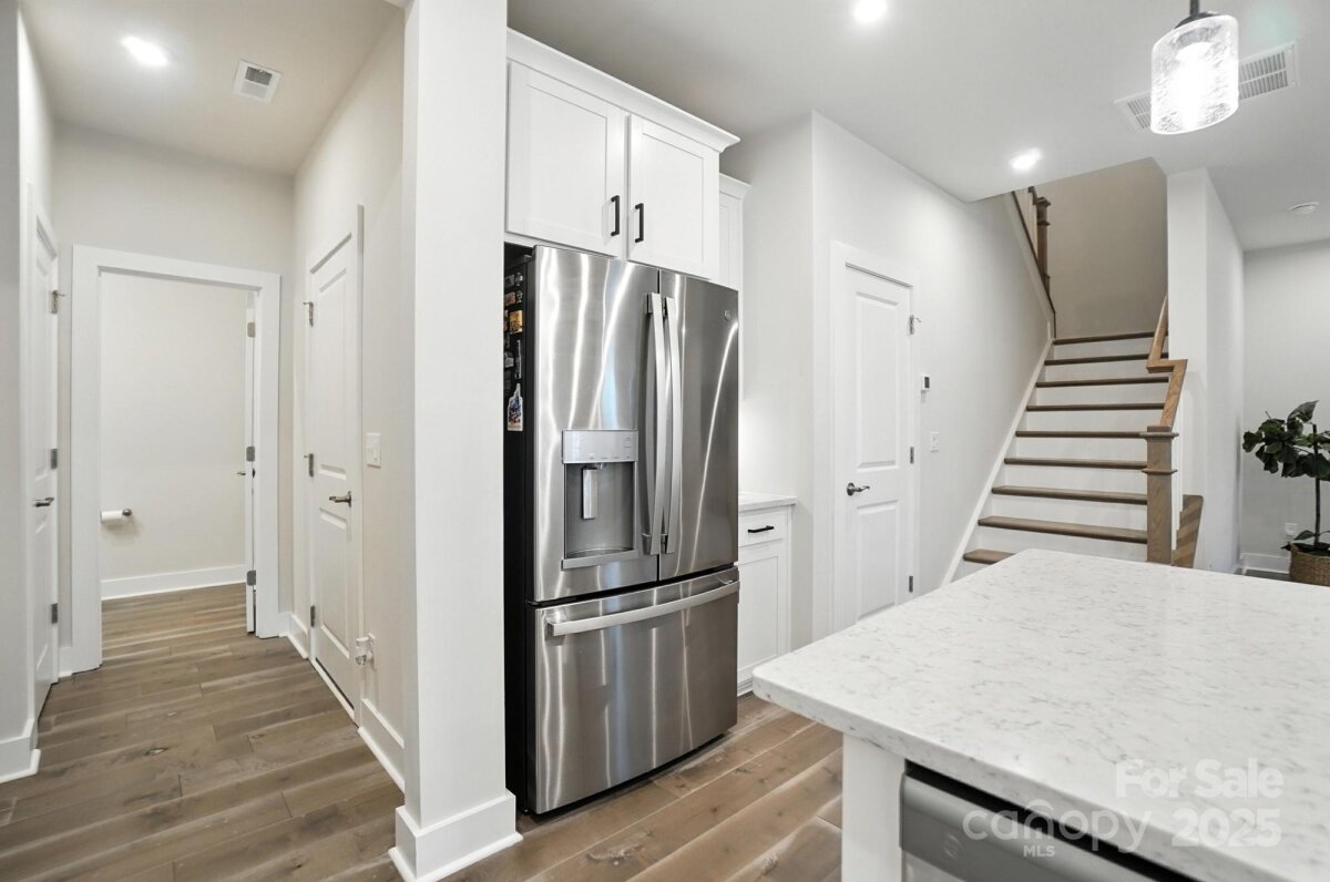 Like new and ready to move in! This immaculate townhome offers an open layout with designer finishes! The upgraded kitchen features under cabinet lighting on a switch, a single bowl undermount stainless steel sink, gas cooktop, under cabinet vent hood, built-in stainless steel microwave and wall oven combo, and tons of pantry space! The oak box staircase with open rails brings you upstairs to a versatile loft. On one side of the second floor is the spacious primary suite, including a private bathroom with tiled shower and dual vanities, and a large closet. The other side of the second floor includes a convenient upstairs laundry room, an additional full bathroom with dual vanities, and two spacious secondary bedrooms with ample closet space. Outside, relax on the covered front porch, or meet your neighbors at the community pavilion and activity lawn. Come enjoy low maintenance living just minutes from Lake Wylie and downtown Belmont!