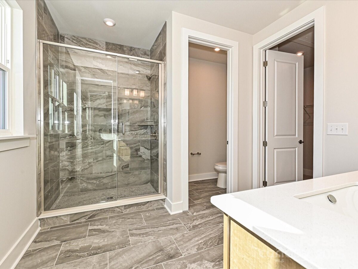 You’ll love the spacious, open layout and designer details of this premium new townhome in the brand new Seven Oaks community. This home features a white gourmet kitchen with large island and quartz counters along with stainless steel GE appliances. A charming front porch welcomes you inside and features a 9-ft sliding door that connects to and expands your indoor living area. Schedule a tour today to see this stunning home in person! 3-Bedroom Home in Belmont Two Vanity Sinks in Secondary Bathroom First Floor Open Stair Rail Hardwood Steps Finished Two-Car Garage