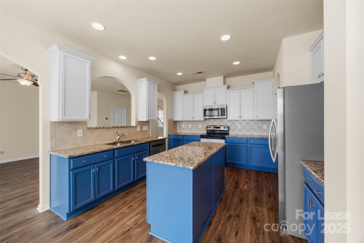 Stunning 5-bed, 4.5-bath home in Stowe Point on a corner lot! This home has so much space! Open Floor plan on the main, including the dining room, family room, and kitchen. The kitchen features granite counters, a work island, an eat-in breakfast area, and a walk-in pantry. The kitchen opens to the large family room with a gas log fireplace. There is one small bedroom on the main floor off the kitchen with an ensuite bath. There is also an office space in the front next to the dining room. The primary bedroom is on the second level with a large custom WIC with built-ins and an ensuite bath with a double-sink vanity, a garden tub, and a separate shower. Three nicely sized secondary rooms on this level share a full hall bath with a large double-sink vanity and a shower/tub combo. The laundry room is also on this floor. On the third level is a large loft area, which would work well for media, office, or kids area, and a bedroom with an ensuite bath and WIC. The large back patio is brick pavers with a built-in grill, great for entertaining any time of year. This home has so much to offer. Pets conditional. **No Cats**.