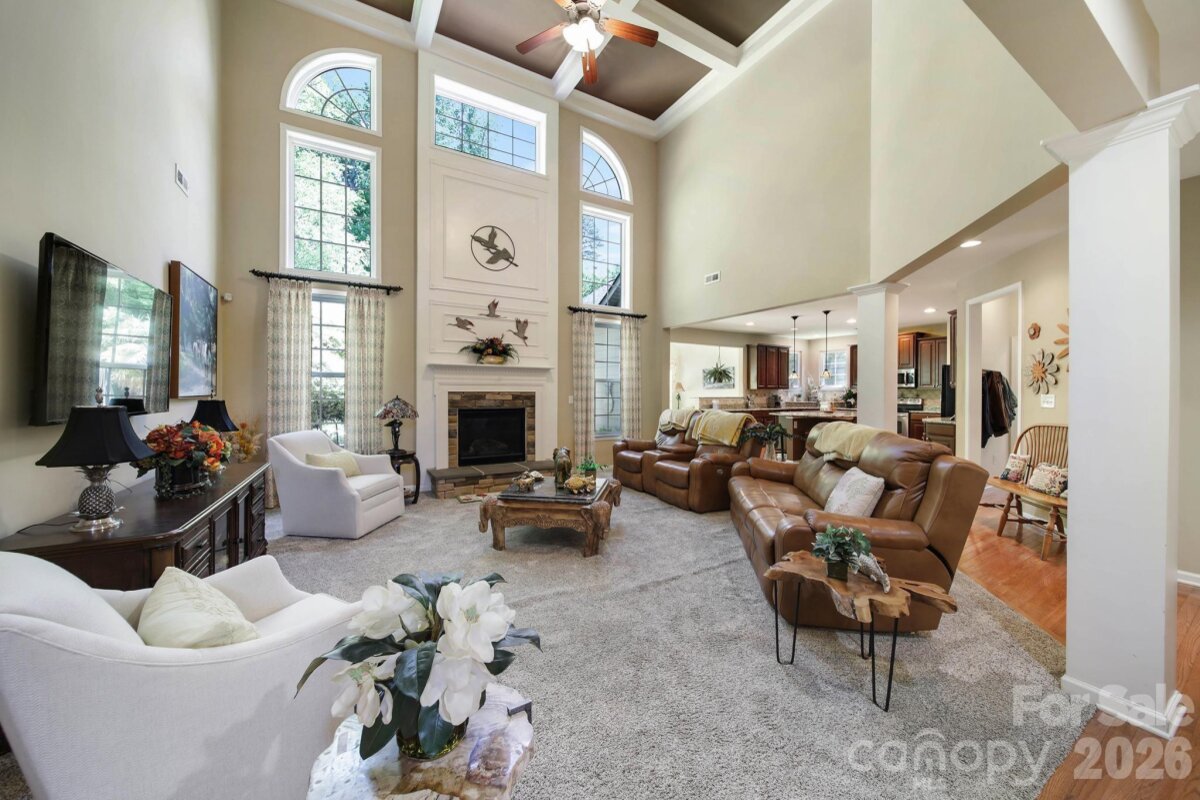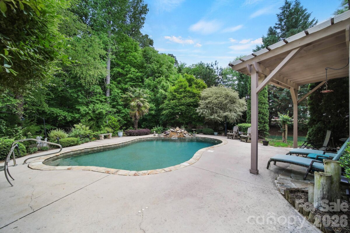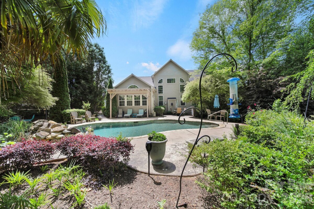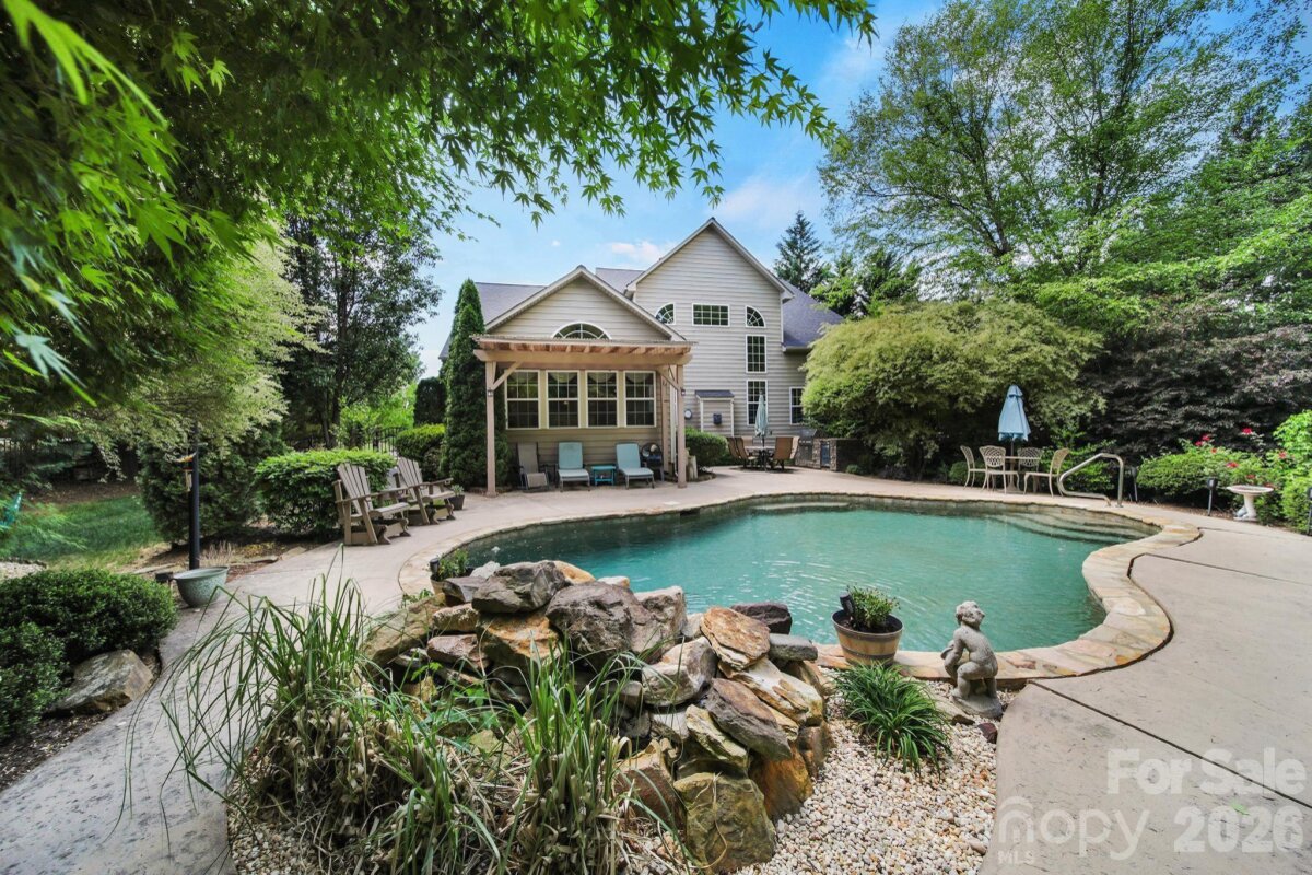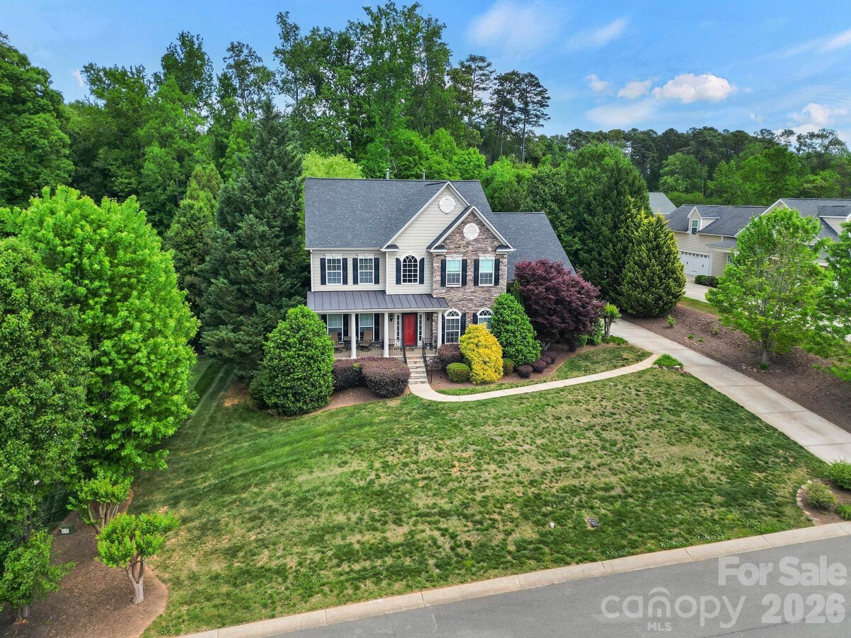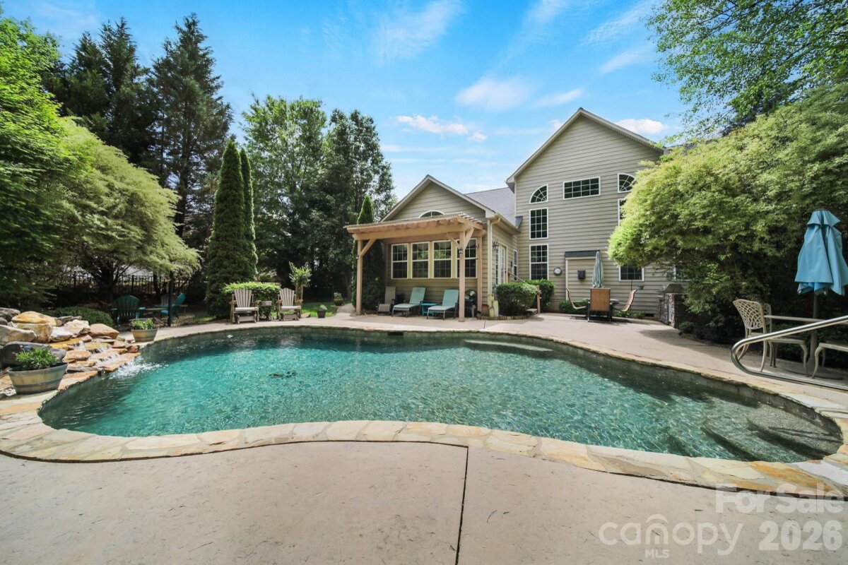 Welcome to this beautifully appointed two-story home in the desirable Lakepoint subdivision of Belmont, where thoughtful design and inviting spaces come together effortlessly in this lake community. A charming covered front porch sets the tone, offering ample room for rocking chairs - perfect for enjoying quiet mornings or greeting guests with view of the lake. Step inside to a dramatic two-story foyer, flanked by a formal den on the left and an elegant dining room on the right, complete with a contemporary chandelier and classic wainscoting. At the heart of the home, the stunning two-story great room impresses with floor-to-ceiling windows that flood the space with natural light. A gas log fireplace serves as a warm focal point, while a coffered two-tone ceiling adds architectural interest and sophistication. The open layout flows seamlessly into the kitchen, where granite countertops, a central island with seating, tile backsplash, and electric range create a functional and stylish hub for everyday living and entertaining. A breakfast bar connects the kitchen to a bright sunroom/breakfast nook - an ideal spot for morning coffee or casual conversation while meals are prepared. The main-level primary suite offers a serene retreat, featuring a tray ceiling with ceiling fan and a spa-inspired ensuite bath. Relax in the soaking tub, enjoy the convenience of dual vanities, and unwind in the spacious glass-enclosed shower. A generous walk-in closet completes the suite. Upstairs, double doors lead to a versatile bonus room perfect for a home office, media room, or flex space. Three additional bedrooms and two full baths, including a jack-n-jill bath between two of the rooms, provide plenty of living space for family and guests, with select rooms offering peaceful views of the lake. Outdoor living is just as impressive. Step onto the patio just off the great room, where a built-in gas grill makes entertaining easy. Spend summer days by the salt water pool with its striking rock water feature, or relax under the Tuscan-style pergola. A thoughtfully landscaped fire pit area invites cozy evenings under the stars. Other notable features of this home include whole house water filtration system, roof 2019, 2 zone furnace 2025, hotwater heater 2026. All of this is just a short drive from Belmont’s charming downtown, offering lakefront dining, shopping, restaurants and a vibrant local scene.