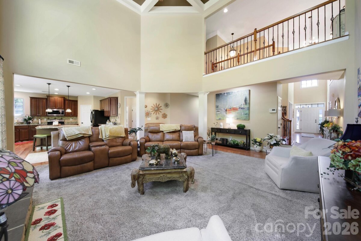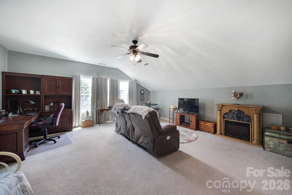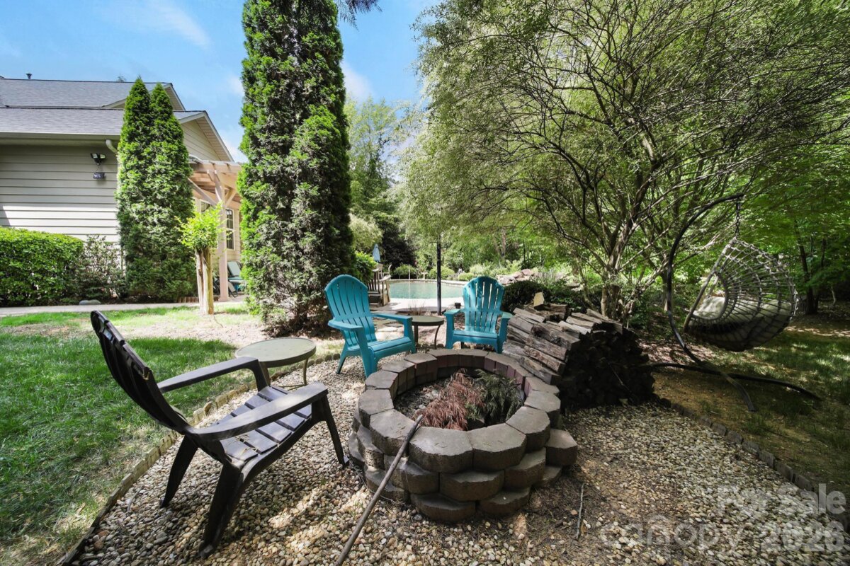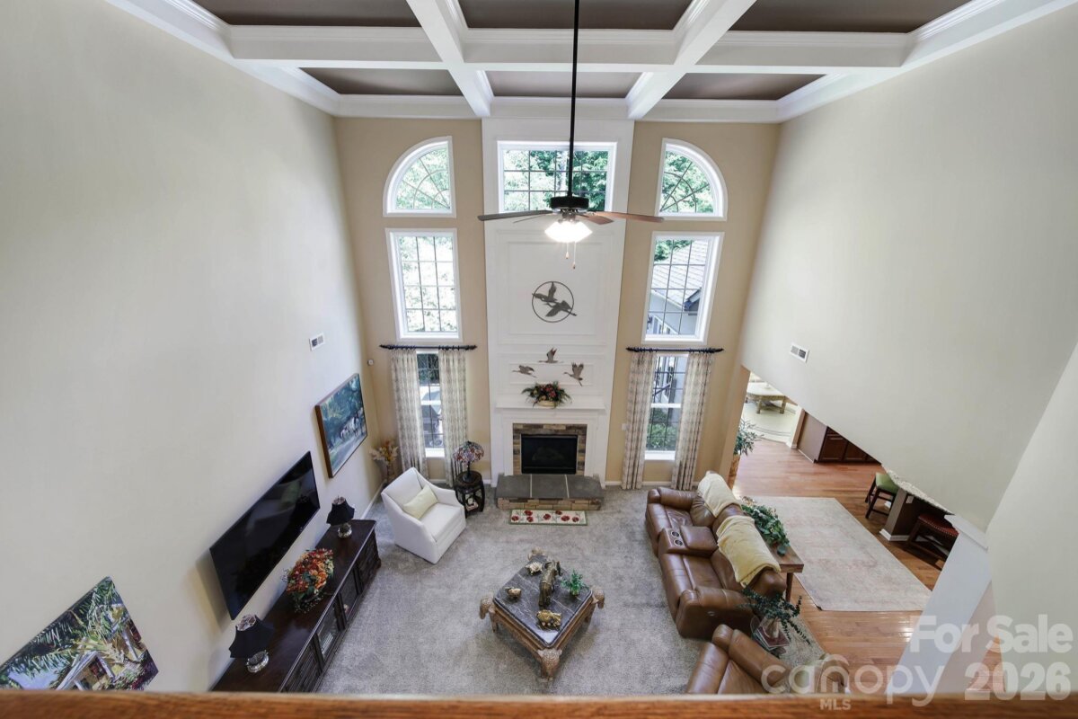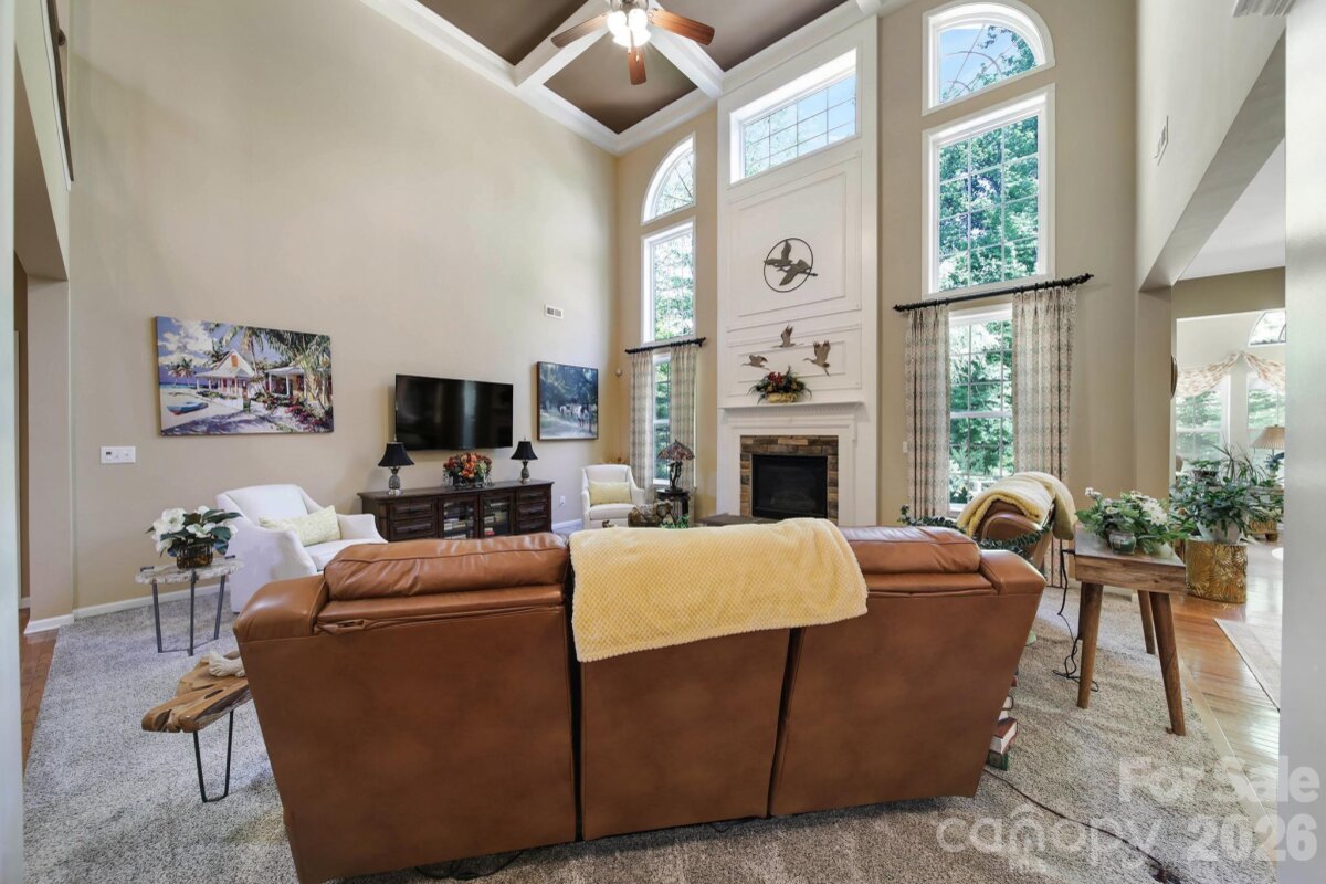 Welcome to this beautifully appointed two-story home in the desirable Lakepoint subdivision of Belmont, where thoughtful design and inviting spaces come together effortlessly in this lake community. A charming covered front porch sets the tone, offering ample room for rocking chairs - perfect for enjoying quiet mornings or greeting guests with view of the lake. Step inside to a dramatic two-story foyer, flanked by a formal den on the left and an elegant dining room on the right, complete with a contemporary chandelier and classic wainscoting. At the heart of the home, the stunning two-story great room impresses with floor-to-ceiling windows that flood the space with natural light. A gas log fireplace serves as a warm focal point, while a coffered two-tone ceiling adds architectural interest and sophistication. The open layout flows seamlessly into the kitchen, where granite countertops, a central island with seating, tile backsplash, and electric range create a functional and stylish hub for everyday living and entertaining. A breakfast bar connects the kitchen to a bright sunroom/breakfast nook - an ideal spot for morning coffee or casual conversation while meals are prepared. The main-level primary suite offers a serene retreat, featuring a tray ceiling with ceiling fan and a spa-inspired ensuite bath. Relax in the soaking tub, enjoy the convenience of dual vanities, and unwind in the spacious glass-enclosed shower. A generous walk-in closet completes the suite. Upstairs, double doors lead to a versatile bonus room perfect for a home office, media room, or flex space. Three additional bedrooms and two full baths, including a jack-n-jill bath between two of the rooms, provide plenty of living space for family and guests, with select rooms offering peaceful views of the lake. Outdoor living is just as impressive. Step onto the patio just off the great room, where a built-in gas grill makes entertaining easy. Spend summer days by the salt water pool with its striking rock water feature, or relax under the Tuscan-style pergola. A thoughtfully landscaped fire pit area invites cozy evenings under the stars. Other notable features of this home include whole house water filtration system, roof 2019, 2 zone furnace 2025, hotwater heater 2026. All of this is just a short drive from Belmont’s charming downtown, offering lakefront dining, shopping, restaurants and a vibrant local scene.