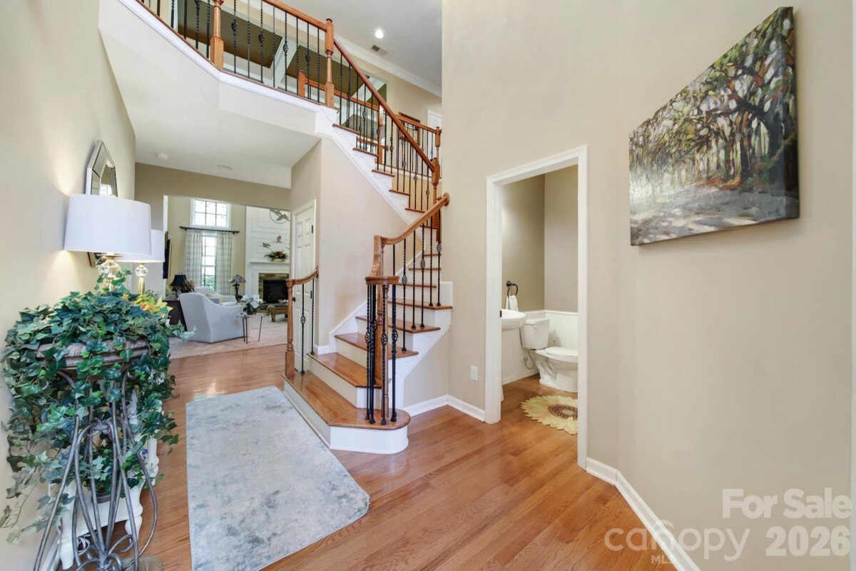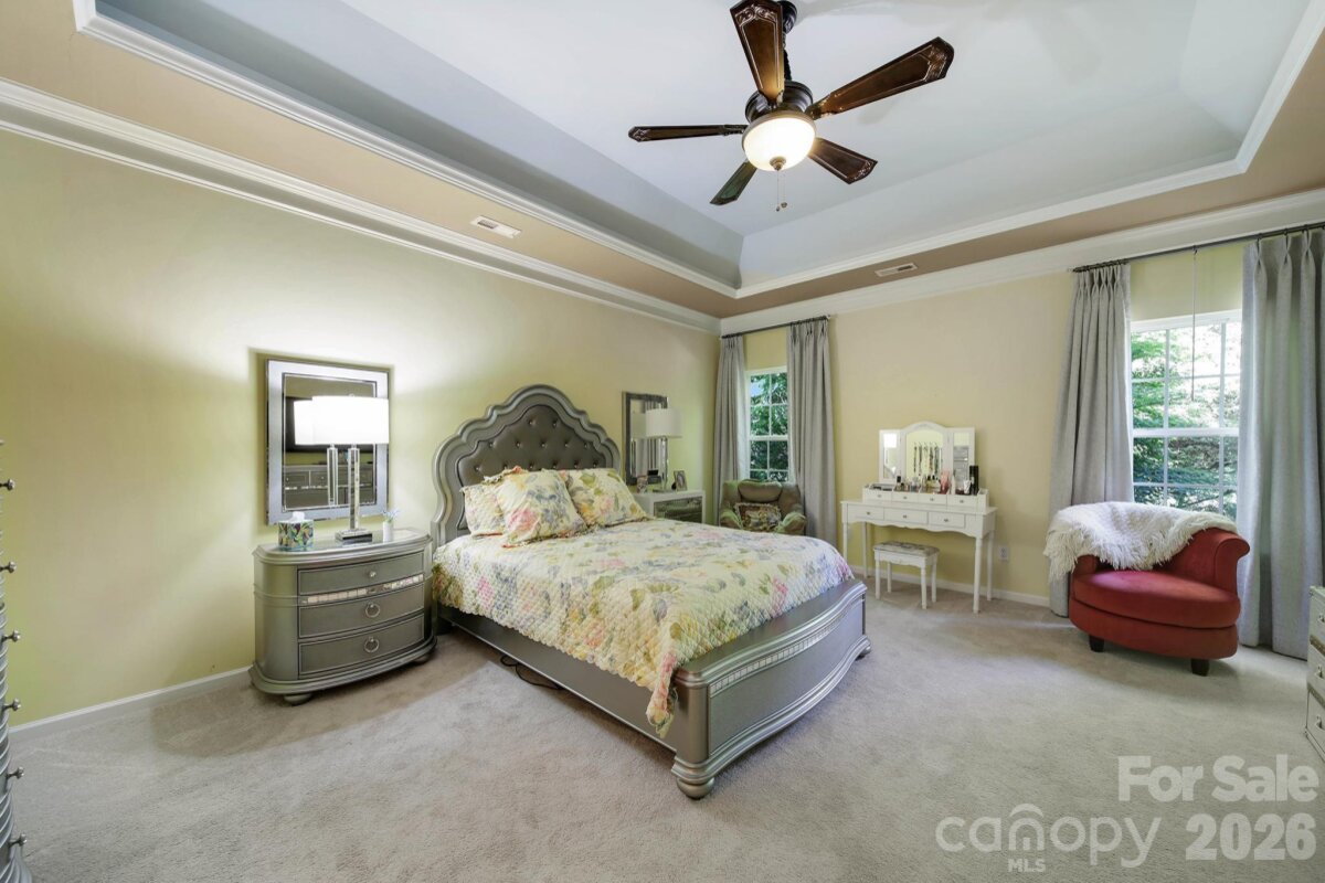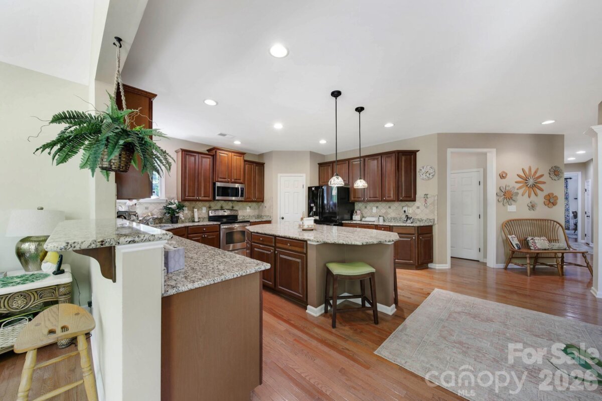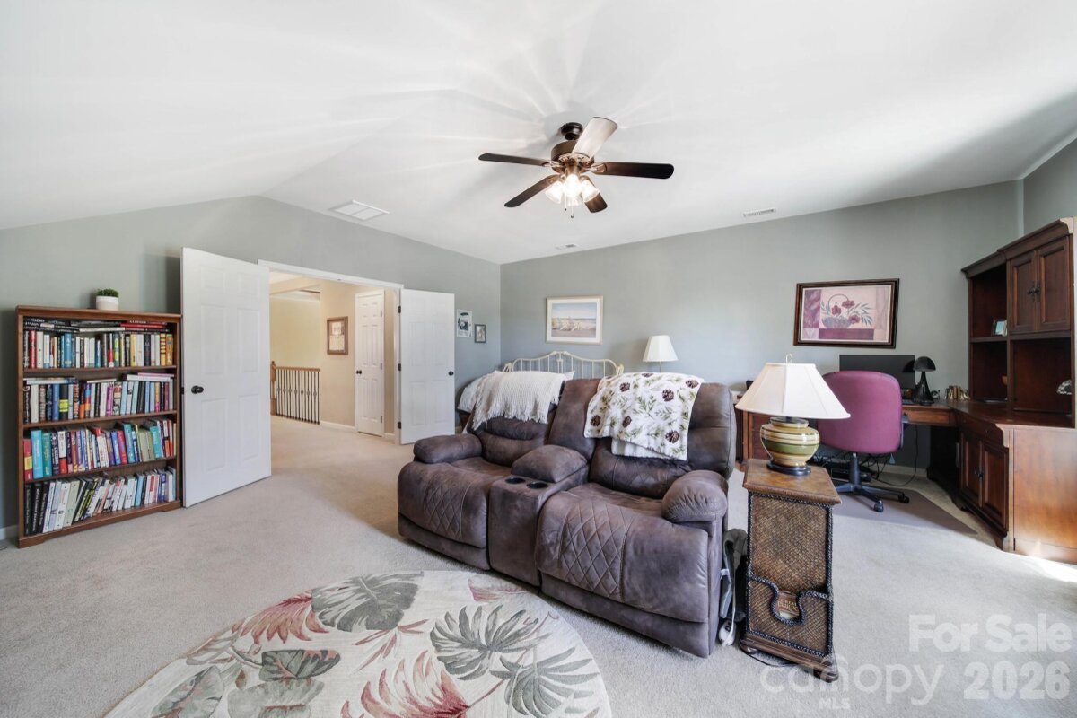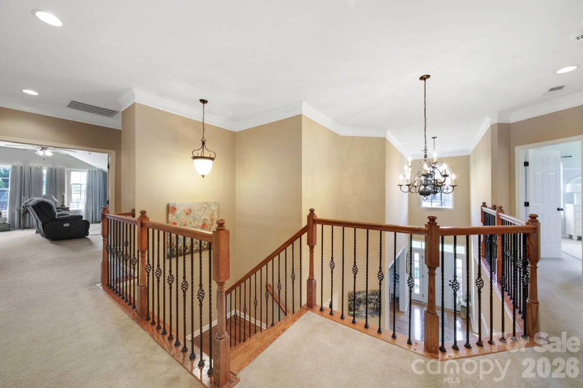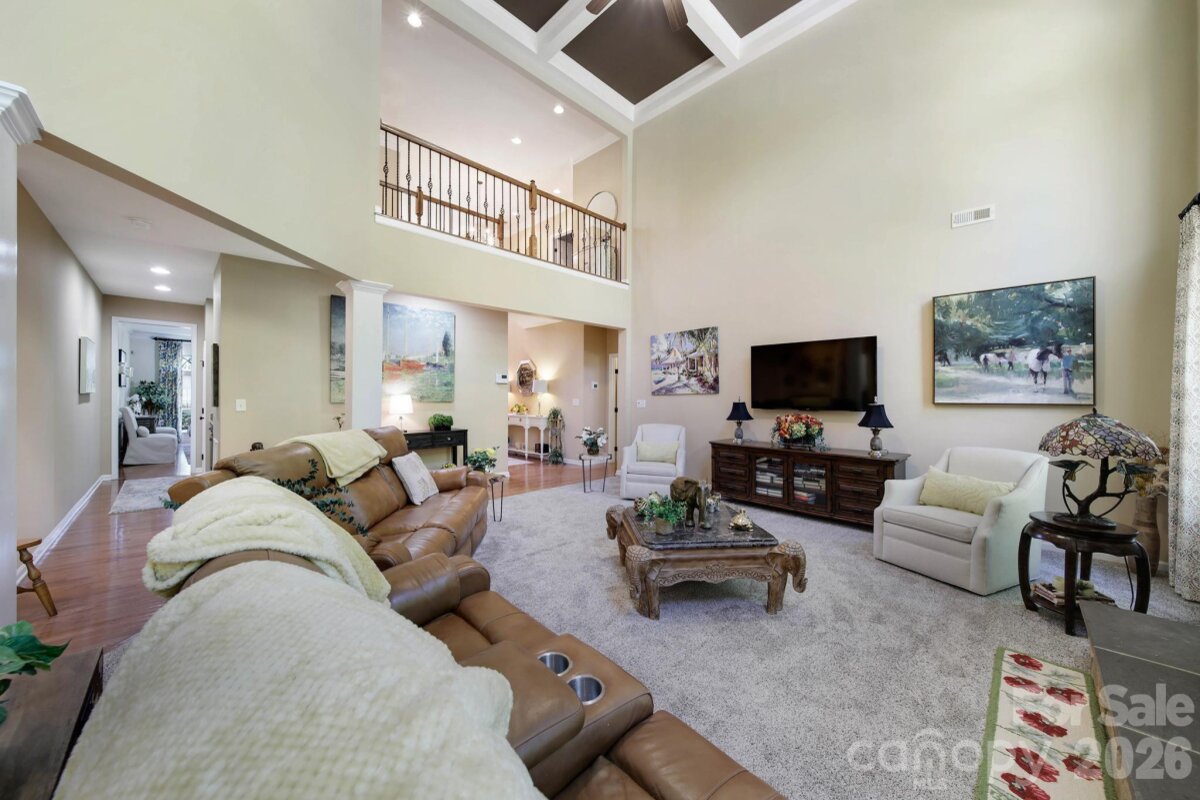 Welcome to this beautifully appointed two-story home in the desirable Lakepoint subdivision of Belmont, where thoughtful design and inviting spaces come together effortlessly in this lake community. A charming covered front porch sets the tone, offering ample room for rocking chairs - perfect for enjoying quiet mornings or greeting guests with view of the lake. Step inside to a dramatic two-story foyer, flanked by a formal den on the left and an elegant dining room on the right, complete with a contemporary chandelier and classic wainscoting. At the heart of the home, the stunning two-story great room impresses with floor-to-ceiling windows that flood the space with natural light. A gas log fireplace serves as a warm focal point, while a coffered two-tone ceiling adds architectural interest and sophistication. The open layout flows seamlessly into the kitchen, where granite countertops, a central island with seating, tile backsplash, and electric range create a functional and stylish hub for everyday living and entertaining. A breakfast bar connects the kitchen to a bright sunroom/breakfast nook - an ideal spot for morning coffee or casual conversation while meals are prepared. The main-level primary suite offers a serene retreat, featuring a tray ceiling with ceiling fan and a spa-inspired ensuite bath. Relax in the soaking tub, enjoy the convenience of dual vanities, and unwind in the spacious glass-enclosed shower. A generous walk-in closet completes the suite. Upstairs, double doors lead to a versatile bonus room perfect for a home office, media room, or flex space. Three additional bedrooms and two full baths, including a jack-n-jill bath between two of the rooms, provide plenty of living space for family and guests, with select rooms offering peaceful views of the lake. Outdoor living is just as impressive. Step onto the patio just off the great room, where a built-in gas grill makes entertaining easy. Spend summer days by the salt water pool with its striking rock water feature, or relax under the Tuscan-style pergola. A thoughtfully landscaped fire pit area invites cozy evenings under the stars. Other notable features of this home include whole house water filtration system, roof 2019, 2 zone furnace 2025, hotwater heater 2026. All of this is just a short drive from Belmont’s charming downtown, offering lakefront dining, shopping, restaurants and a vibrant local scene.