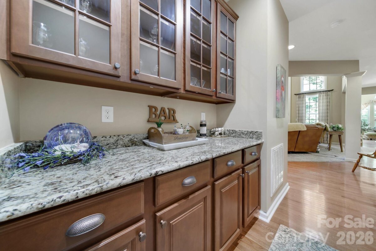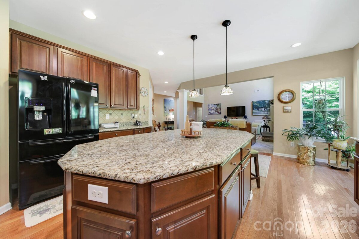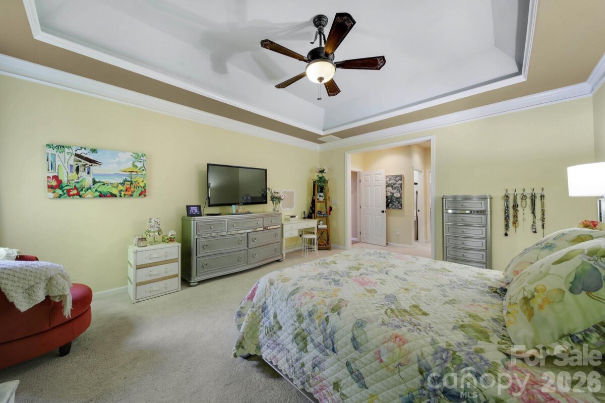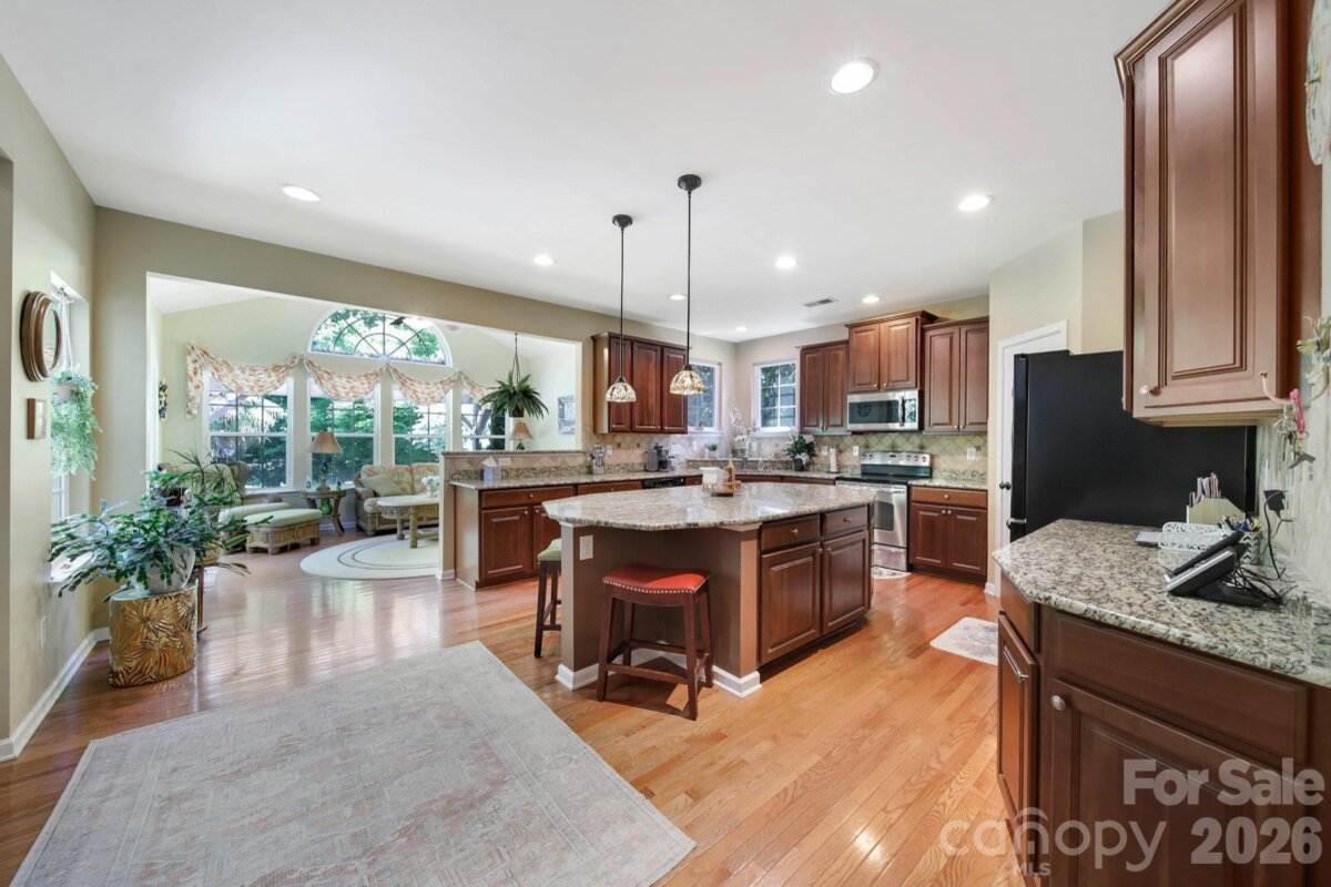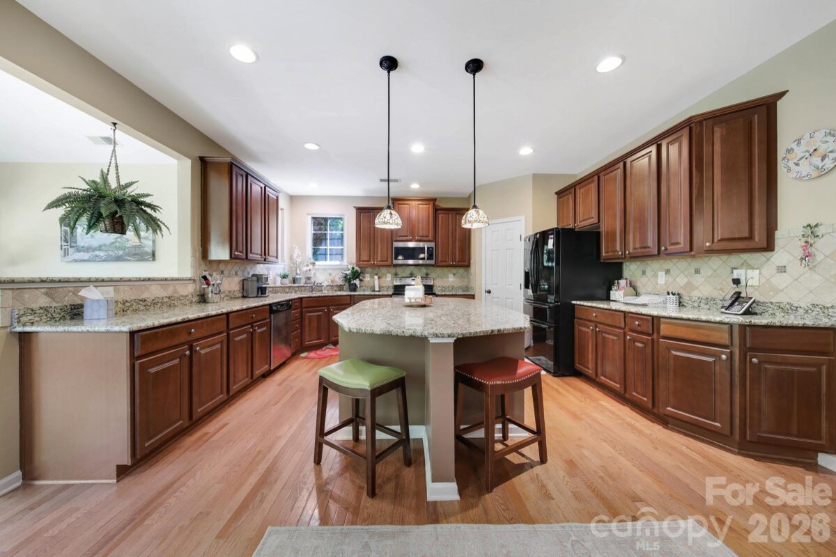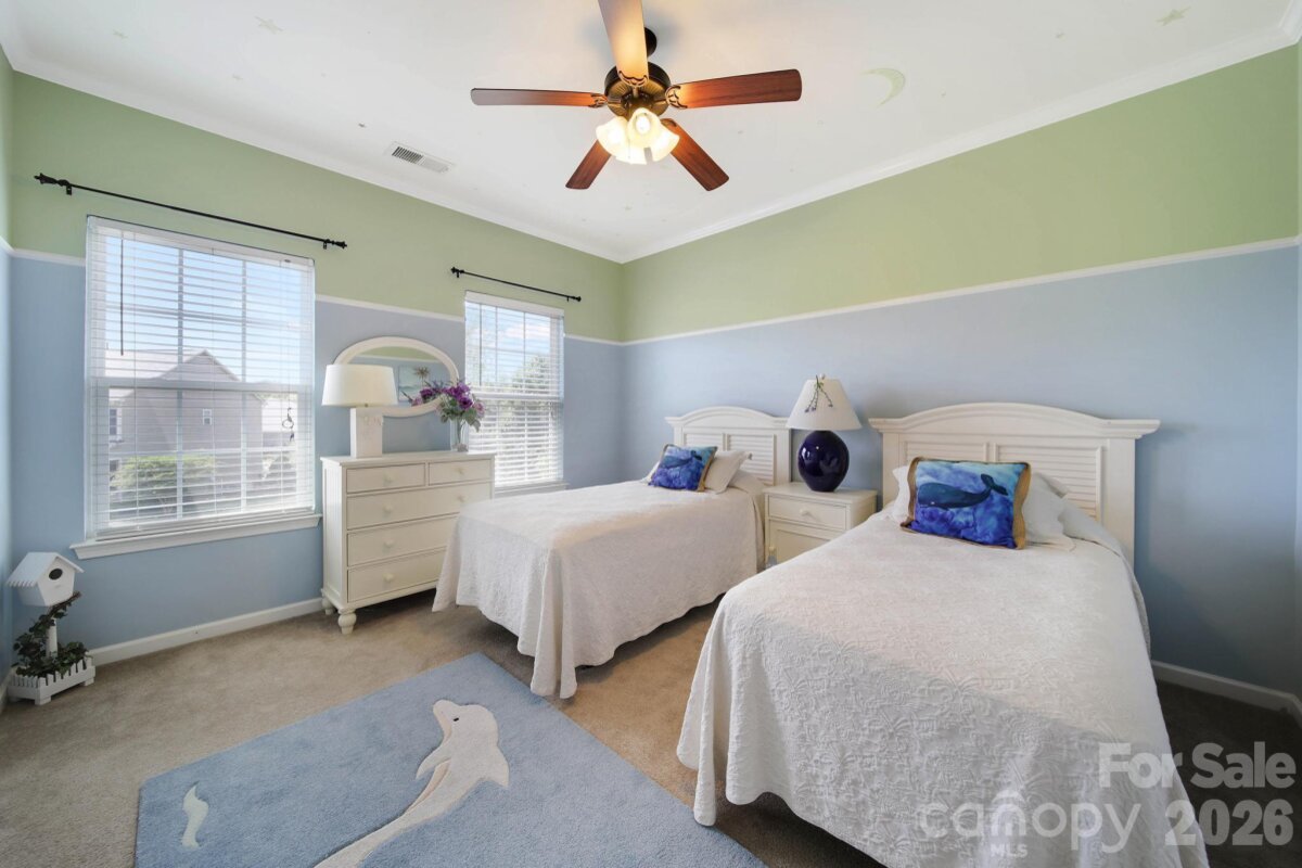 Welcome to this beautifully appointed two-story home in the desirable Lakepoint subdivision of Belmont, where thoughtful design and inviting spaces come together effortlessly in this lake community. A charming covered front porch sets the tone, offering ample room for rocking chairs - perfect for enjoying quiet mornings or greeting guests with view of the lake. Step inside to a dramatic two-story foyer, flanked by a formal den on the left and an elegant dining room on the right, complete with a contemporary chandelier and classic wainscoting. At the heart of the home, the stunning two-story great room impresses with floor-to-ceiling windows that flood the space with natural light. A gas log fireplace serves as a warm focal point, while a coffered two-tone ceiling adds architectural interest and sophistication. The open layout flows seamlessly into the kitchen, where granite countertops, a central island with seating, tile backsplash, and electric range create a functional and stylish hub for everyday living and entertaining. A breakfast bar connects the kitchen to a bright sunroom/breakfast nook - an ideal spot for morning coffee or casual conversation while meals are prepared. The main-level primary suite offers a serene retreat, featuring a tray ceiling with ceiling fan and a spa-inspired ensuite bath. Relax in the soaking tub, enjoy the convenience of dual vanities, and unwind in the spacious glass-enclosed shower. A generous walk-in closet completes the suite. Upstairs, double doors lead to a versatile bonus room perfect for a home office, media room, or flex space. Three additional bedrooms and two full baths, including a jack-n-jill bath between two of the rooms, provide plenty of living space for family and guests, with select rooms offering peaceful views of the lake. Outdoor living is just as impressive. Step onto the patio just off the great room, where a built-in gas grill makes entertaining easy. Spend summer days by the salt water pool with its striking rock water feature, or relax under the Tuscan-style pergola. A thoughtfully landscaped fire pit area invites cozy evenings under the stars. Other notable features of this home include whole house water filtration system, roof 2019, 2 zone furnace 2025, hotwater heater 2026. All of this is just a short drive from Belmont’s charming downtown, offering lakefront dining, shopping, restaurants and a vibrant local scene.