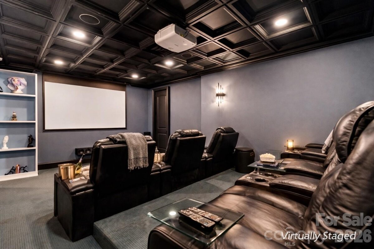 Welcome to this stunning lakefront residence located in the gated community of Reflection Pointe. Positioned on the shores of Lake Wylie, this home blends timeless design with thoughtful updates and incredible views. The primary suite is located on the main level, featuring a recently updated bathroom with modern finishes that create a spa-like retreat. Open living areas are filled with natural light and provide direct access to the expansive upper deck overlooking the water. The exquisitely finished walkout lower level extends the home’s versatility, complete with a theatre room, wine cellar, and generous entertaining spaces. Step outside to the lower-level travertine patio with a saltwater hot tub, perfectly placed to take in the lakefront scenery. Newly replaced steps leading to a floating dock and boat lift. On the third level, a large bonus room offers endless possibilities for hobbies, entertainment, or additional living space. Multiple vantage points—including the deck, patio, fire pit area, and private dock—bring the beauty of Lake Wylie right to your doorstep. Practical features include a three-car garage. Lower level features storage area—plenty of space to keep life streamlined. Reflection Pointe offers resort-style amenities including walking trails, clubhouse, tennis courts, swimming pool, and a community dock. Conveniently located near shopping, dining, marinas, and major highways, this property balances privacy with accessibility. An Invisible Fence is also in place for your pet. This home must be experienced in person to truly appreciate the thoughtful design, brand-new designer roof, recent updates, and breathtaking lake setting. Schedule your private showing today and discover the lakefront lifestyle waiting for you. Community marina with beach area and waterfront pavillon