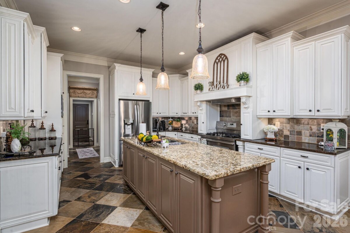 Back on market, no fault to sellers. Buyers got cold feet. Old World Grandeur Meets Backyard Paradise in Gated River Lakes waterfront neighborhood. Experience the pinnacle of craftsmanship in this stunning custom estate, where Old World charm and architectural precision converge. Spanning an impressive 5,035 square feet, this 4-bedroom, 4.5-bathroom sanctuary is defined by its breathtaking ceiling details, including Groin and Double Barrel vaults that lend an air of European cathedral elegance. Freshly painted throughout! The executive office is a masterclass in design with its intricate Coffered Trey ceilings, while the primary suite offers a serene retreat under a stately Square Trey, complete with a newly designed custom closet system. Private door to back porch. Spacious ensuite has all the upgrades you expect and more. The heart of the home is the chef’s kitchen, recently updated, premium high-end appliances and a custom pantry system for effortless organization. Loads of custom cabinetry and spacious center island. Kitchen is open to hearthroom/den and breakfast area. Every inch of this home exudes quality, from the rich Brazilian Cherry hardwoods underfoot to the heavy, artisanal moldings and extraordinary designer lighting fixtures and multiple fireplaces making each area super cozy. In addition to the 3 spacious beds (each with private baths) upstairs, there are 2 other large living spaces that could easily be additional bedrooms if needed. The luxury extends outdoors to your own private oasis. Relax on the magnificent covered back porch and watch the deer wander about in the woods while you cozy up by the stone fireplace. Step down to the pristine gunite saltwater pool and float around in total privacy. The pool area is secured by elegant wrought iron fencing and currently features a temporary childproof gate for added peace of mind. Beyond the casement windows, the estate is professionally illuminated by custom landscape lighting, highlighting the GAF Slateline Shingles and manicured grounds. Home also has a freshly encapsulated crawl space. Located within the prestigious gates of River Lakes, this isn’t just a home; it’s a work of art.