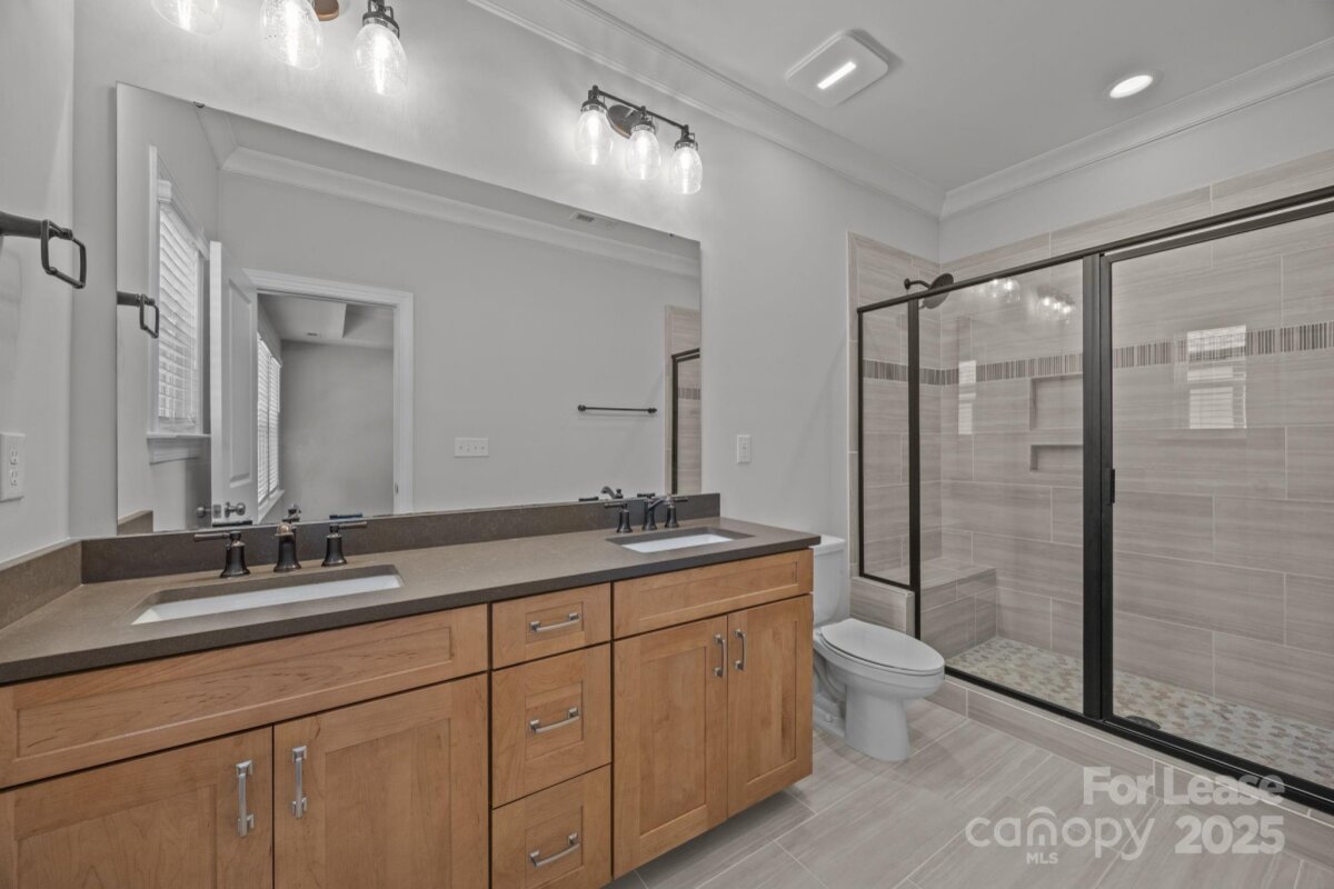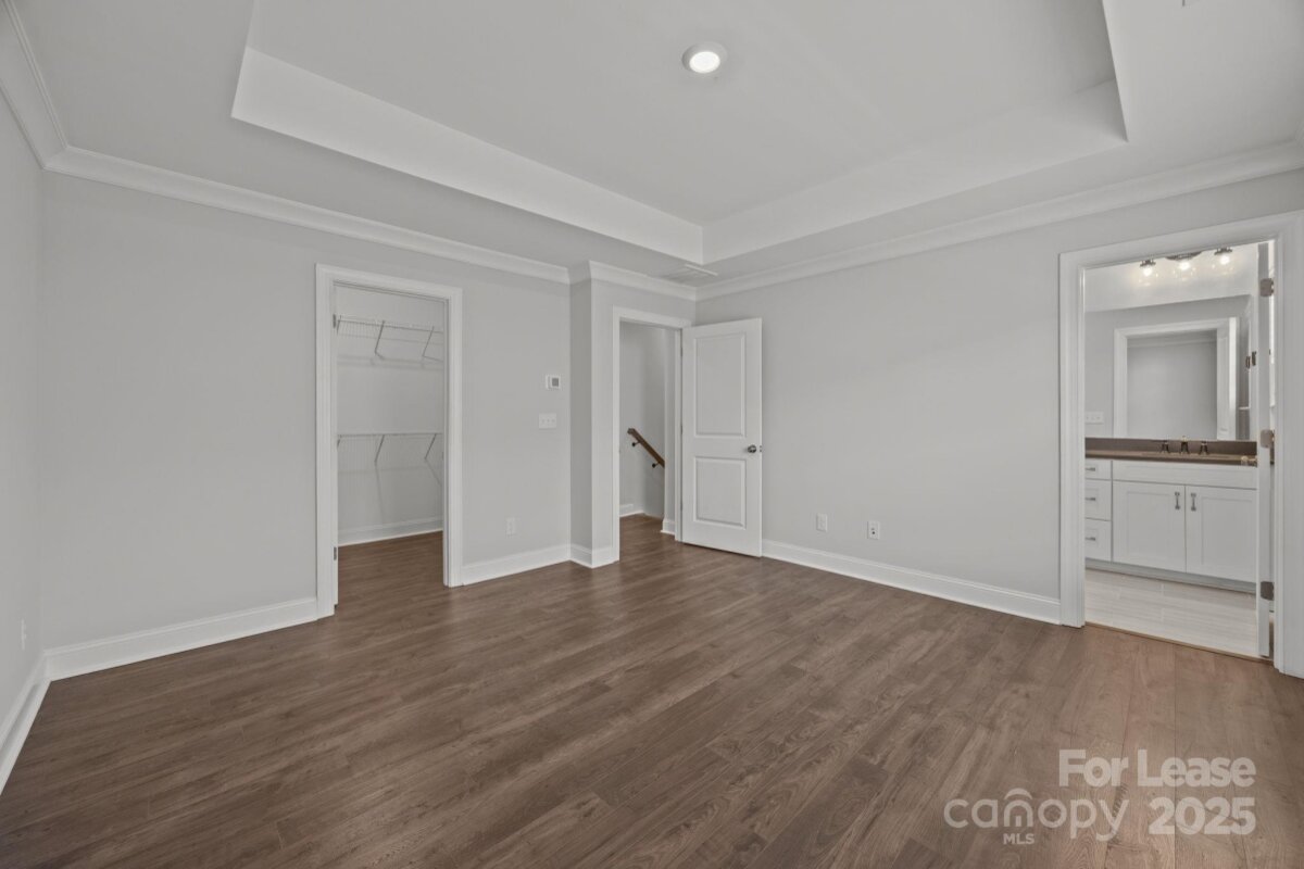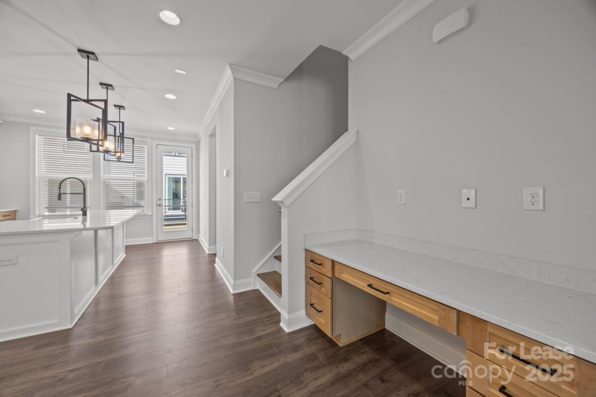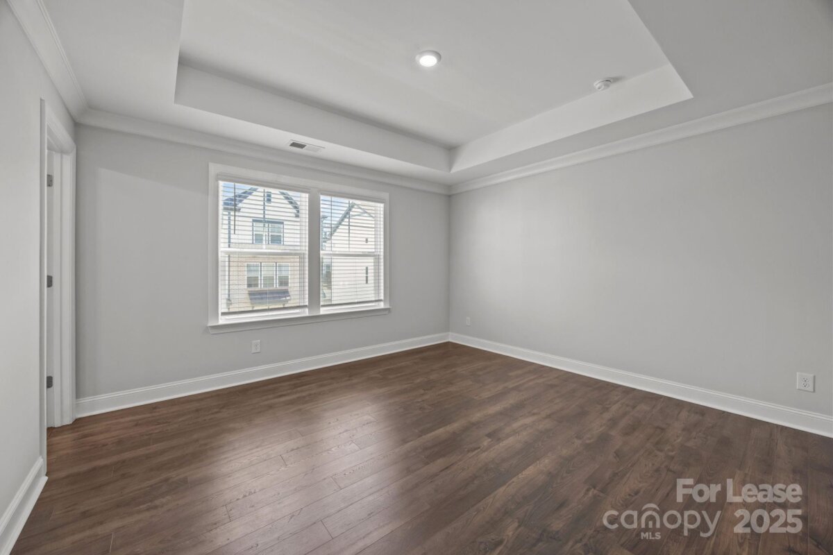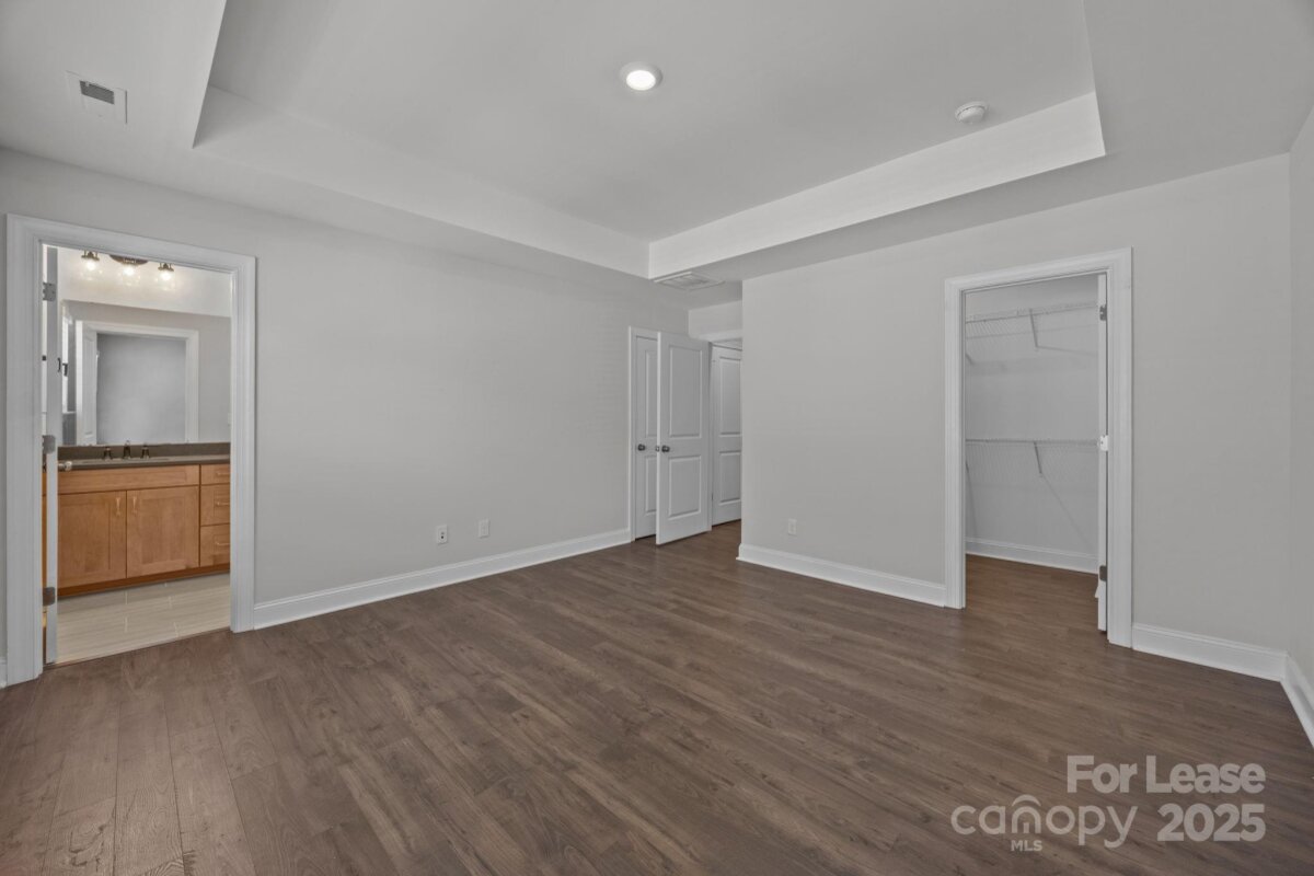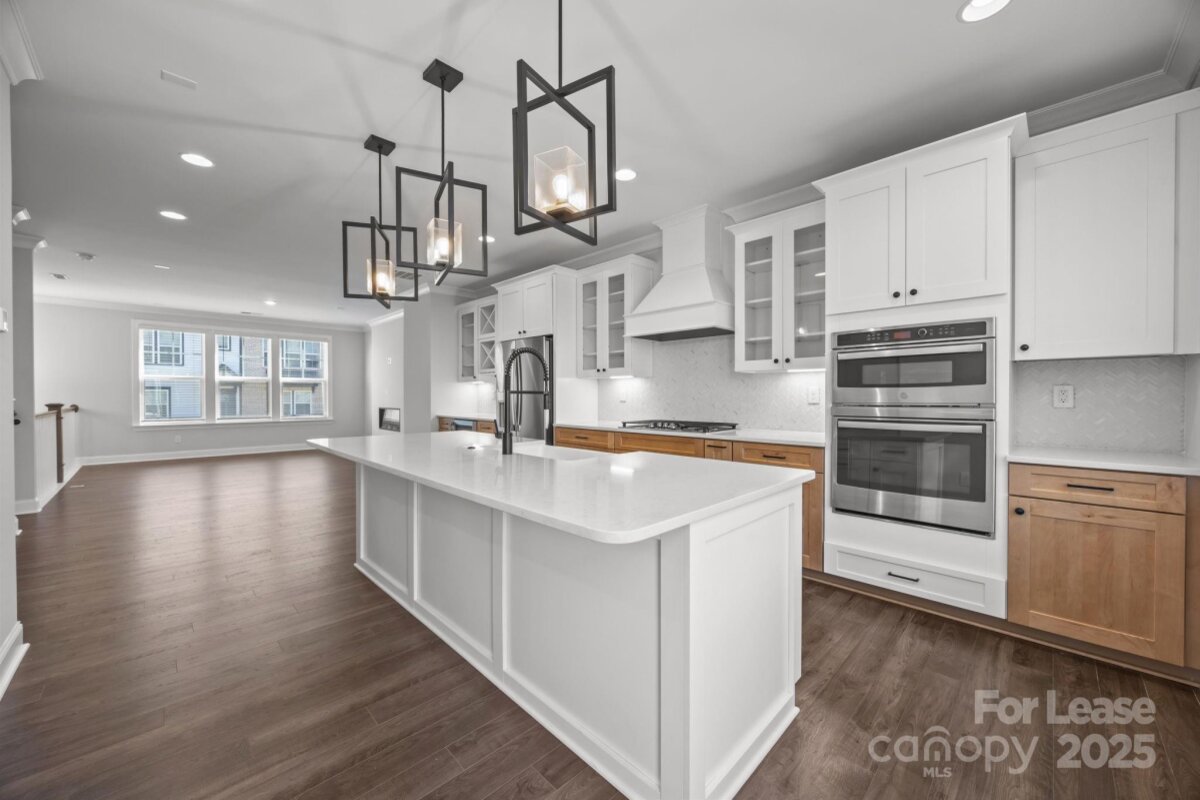 Stunning luxury townhome built with numerous upgrades in Ballantyne East. This townhome has a functional layout where every bedroom has its own full bathroom. The entry level features a private guest suite or home office with its own full bath and direct access to the 2-car garage. Upstairs, enjoy an open-concept main living area with high ceilings, luxury flooring, a dedicated desk space and abundant natural light. Pre-wired for surround sound in the family room. The gourmet kitchen boasts granite countertops, stainless steel appliances, beverage center, a gas range, upgraded cabinets, tile backsplash, and a large center island--perfect for entertaining. Step outside onto the spacious balcony to relax or dine outdoors. On the top floor, you'll find 2 primary suites with a walk-in closets and spa-like baths. Located in Ballantyne East, this home is close to Stonecrest Shopping Center and the Ballantyne Bowl.