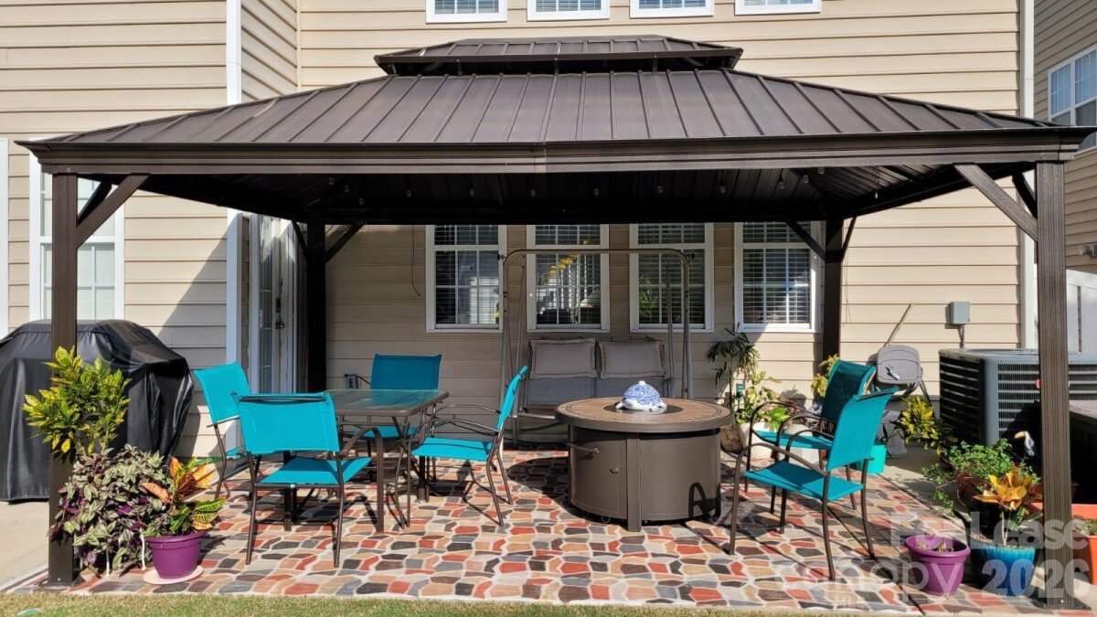 This beautifully maintained home showcases traditional architecture with a finished attic, wood flooring throughout the main level, and a spacious, open floor plan designed for comfortable living and entertaining. The home includes fully remodeled designer bathrooms, a half bath on the main level, ceiling fans in every room. The large open kitchen is equipped with a center island, granite countertops, a stylish backsplash, pantry, ample cabinet and counter space, and updated Samsung appliances, all flowing seamlessly into the great room with gas logs, dining area, breakfast nook, and foyer. Natural light fills the home throughout the day, creating a warm and inviting atmosphere. Additional features include built-in garage storage, a fenced backyard, and a large gazebo perfect for outdoor gatherings, along with access to community amenities such as a clubhouse and pool.