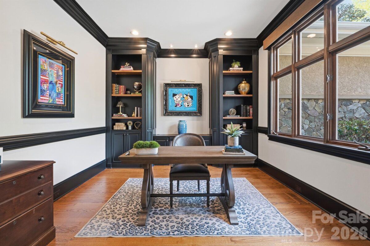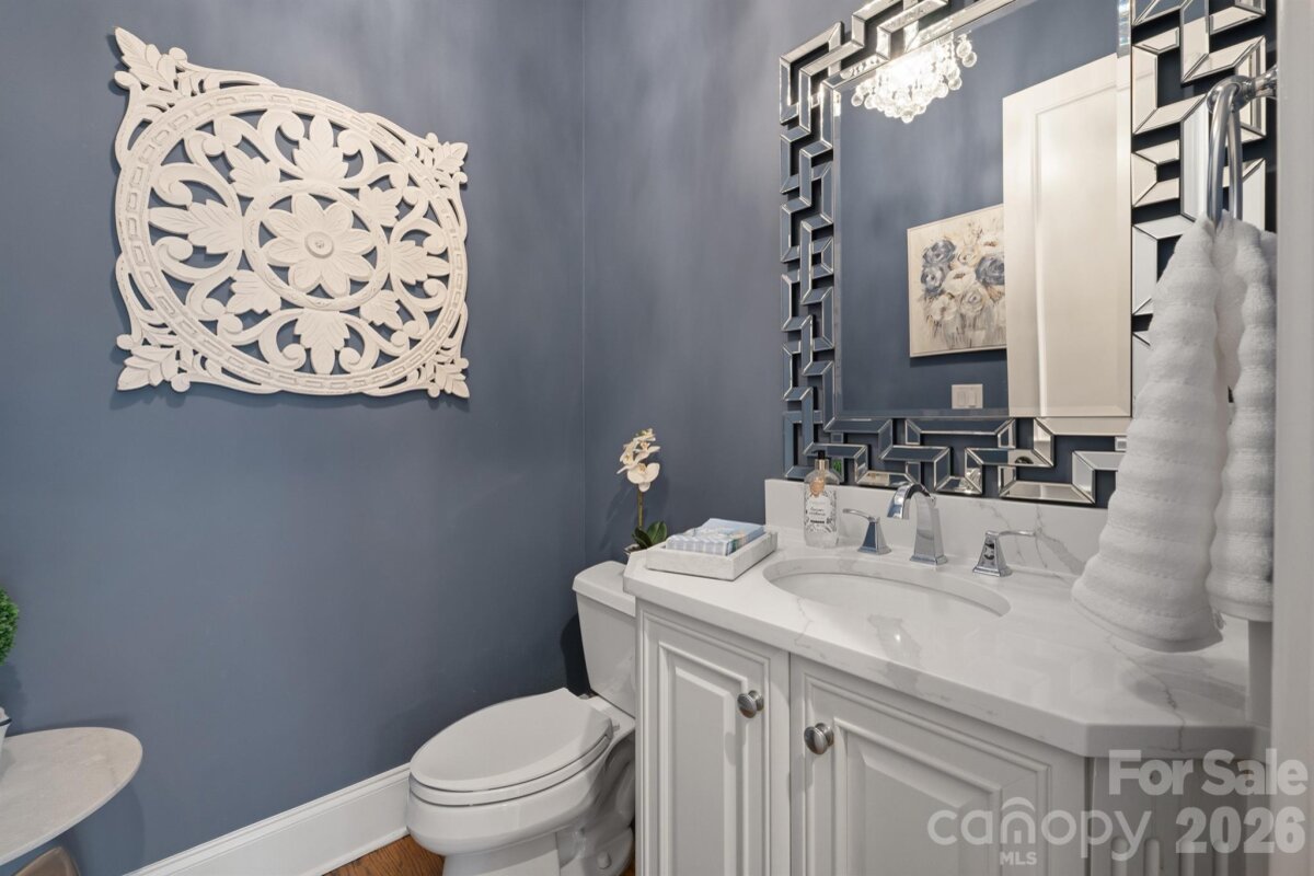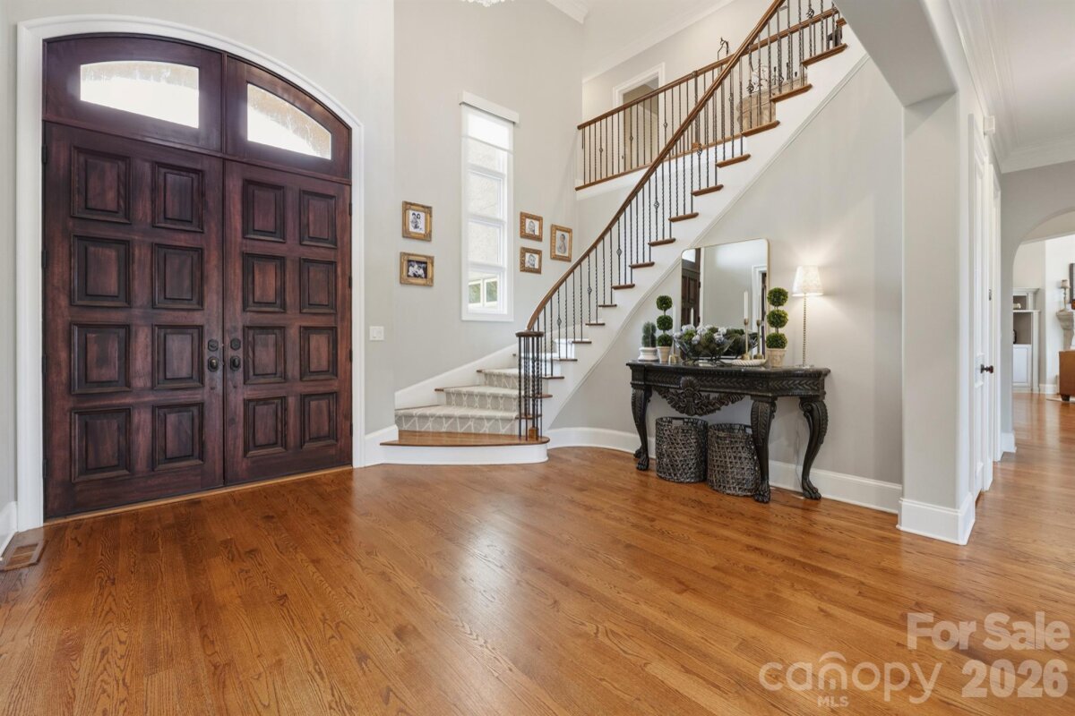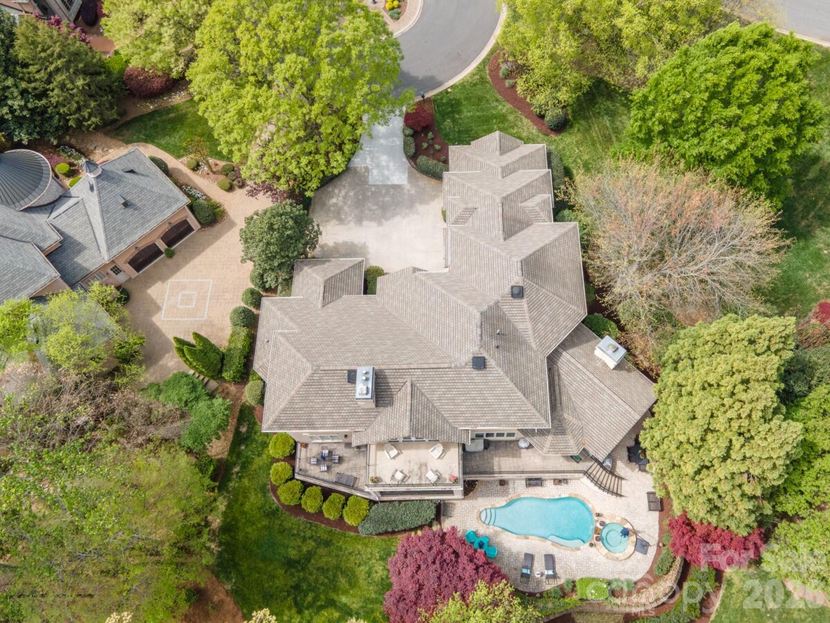 Homes like this don't hit the market often! Located in the highly sought-after Ballantyne Country Club, this property sits on a premier lot - located on a cul-de-sac, featuring a half acre of space, and overlooking the 13th fairway of a Rees Jones-designed golf course, it's an unbelievable location. Exterior features of the property include a 3-car side-load garage w/ stained wood doors, stone and stucco exterior, professional landscaping w/ multi-zone irrigation, covered veranda, and a fully-fenced rear yard. Approach the handmade mahogany double front doors, and step inside to a grand 2-story foyer with curved staircase with 36-light Swarovski Crystal Chandelier w/ electrical lift system. Interior features include hardwood floors throughout the main level, countless windows to let natural light pour in, high ceilings, motorized blinds in several locations, multi-zone built-in speakers, custom woodwork, solid 8' doors, coffered ceilings, and more! Formal dining room, sunken living room with fireplace, and a DREAM kitchen that was recently redone - quartzite counters, oversized center island w/inlet for seating, custom cabinets including display cabinets, pendant lighting, high end stainless steel appliances including 48" 6-burner gas range with double oven and custom hood vent w/ cover, Sub-Zero refrigerator, warming drawer, and walk-in pantry. Main floor master suite recently made to have matching hardwood floors, trey ceiling w/ cove lighting, plantation shutters, and gas fireplace with built-in cabinets/shelving, as well as a remodeled spa-like ensuite bathroom - dual vanities, leathered granite counter tops, herringbone tile walk-in shower w/ niches and benches, and a walk-in closet with custom shelving. Recently remodeled laundry on main floor with utility sink. Upper level has 3 more bedrooms. 2 bedrooms have a jack and jill bathroom with tub/shower insert between them. Bonus room upstairs with beverage fridge, sink, fireplace, and balcony. Huge walk-in attic complements an already abundant amount of storage. Whole-home inline, self-cleaning water filter system. And best of all - kick back at the end of the day and enjoy the heated saltwater PebbleTec pool/spa with waterfall feature and brick paver surround. Pool area also has access to a "Cabana" room - sink, dishwasher, water resistant flooring, powder room, and storage area for pool accessories. Plumbed gas grill area and plenty of space for seating make the yard perfect for entertaining! This house was designed by Christopher Phelps and built by Simonini Builders. HOA includes trail access, playground, basketball court, dog park, and 24-hour security. Membership to the Ballantyne Country Club is OPTIONAL, but grants access to golf, swim, tennis, fitness, and dining. And all this, with great proximity to schools, Uptown, and The Bowl at Ballantyne!