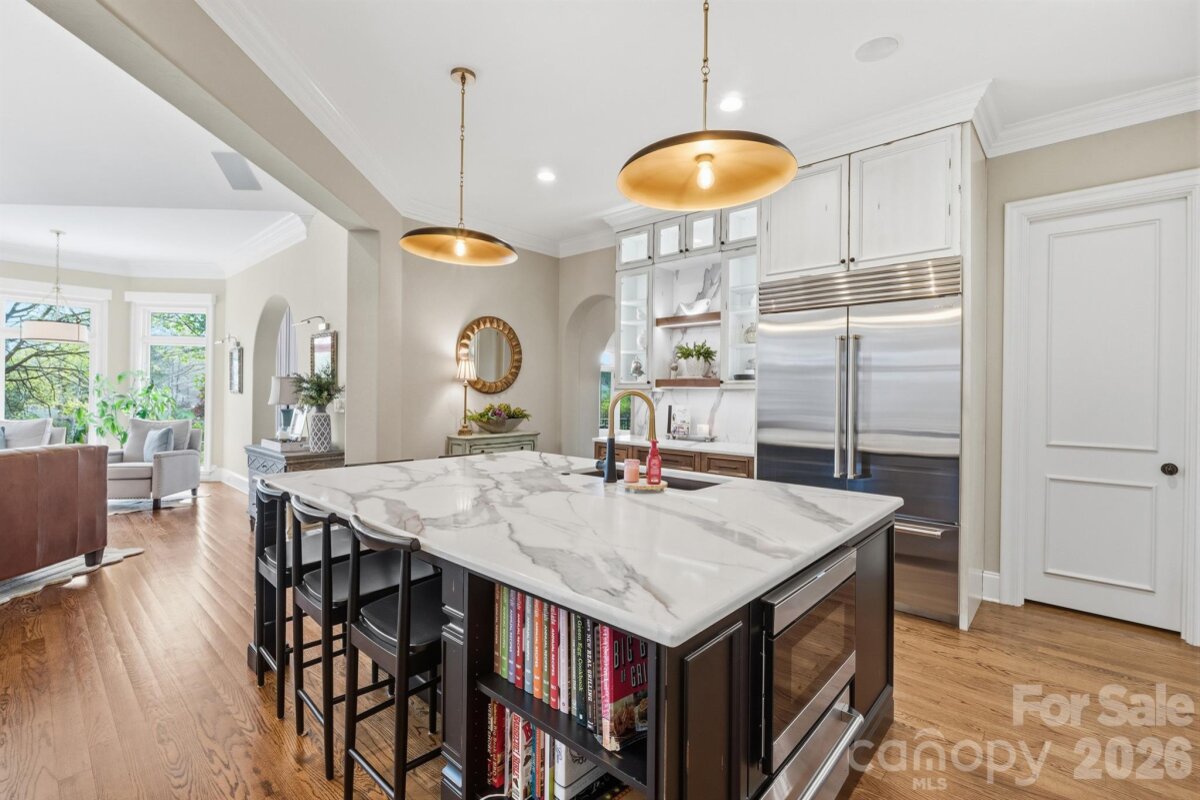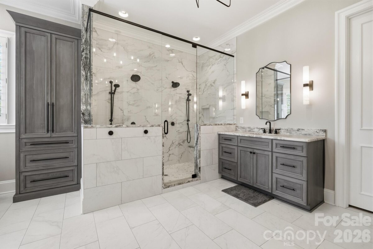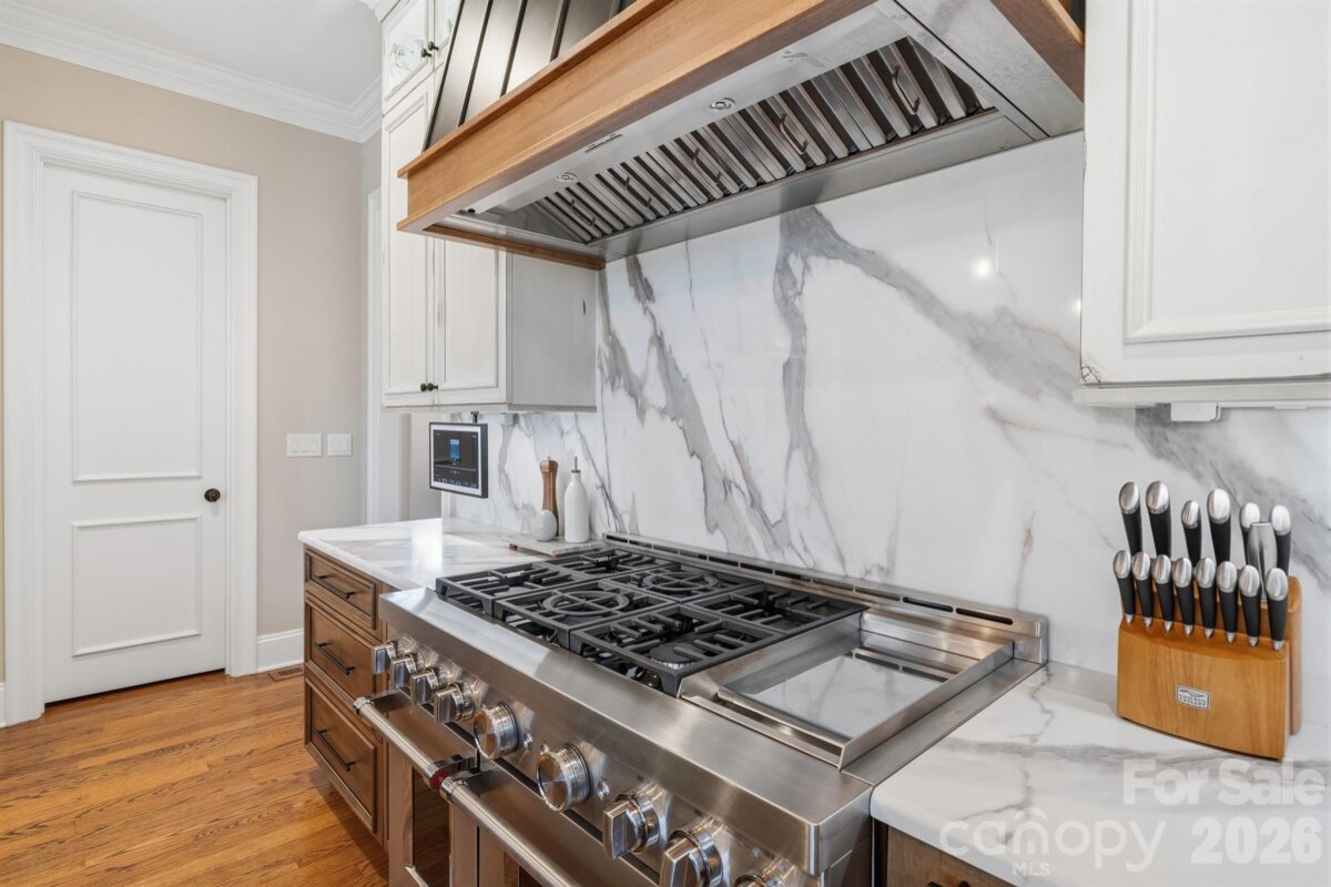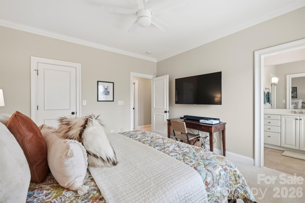 Homes like this don't hit the market often! Located in the highly sought-after Ballantyne Country Club, this property sits on a premier lot - located on a cul-de-sac, featuring a half acre of space, and overlooking the 13th fairway of a Rees Jones-designed golf course, it's an unbelievable location. Exterior features of the property include a 3-car side-load garage w/ stained wood doors, stone and stucco exterior, professional landscaping w/ multi-zone irrigation, covered veranda, and a fully-fenced rear yard. Approach the handmade mahogany double front doors, and step inside to a grand 2-story foyer with curved staircase with 36-light Swarovski Crystal Chandelier w/ electrical lift system. Interior features include hardwood floors throughout the main level, countless windows to let natural light pour in, high ceilings, motorized blinds in several locations, multi-zone built-in speakers, custom woodwork, solid 8' doors, coffered ceilings, and more! Formal dining room, sunken living room with fireplace, and a DREAM kitchen that was recently redone - quartzite counters, oversized center island w/inlet for seating, custom cabinets including display cabinets, pendant lighting, high end stainless steel appliances including 48" 6-burner gas range with double oven and custom hood vent w/ cover, Sub-Zero refrigerator, warming drawer, and walk-in pantry. Main floor master suite recently made to have matching hardwood floors, trey ceiling w/ cove lighting, plantation shutters, and gas fireplace with built-in cabinets/shelving, as well as a remodeled spa-like ensuite bathroom - dual vanities, leathered granite counter tops, herringbone tile walk-in shower w/ niches and benches, and a walk-in closet with custom shelving. Recently remodeled laundry on main floor with utility sink. Upper level has 3 more bedrooms. 2 bedrooms have a jack and jill bathroom with tub/shower insert between them. Bonus room upstairs with beverage fridge, sink, fireplace, and balcony. Huge walk-in attic complements an already abundant amount of storage. Whole-home inline, self-cleaning water filter system. And best of all - kick back at the end of the day and enjoy the heated saltwater PebbleTec pool/spa with waterfall feature and brick paver surround. Pool area also has access to a "Cabana" room - sink, dishwasher, water resistant flooring, powder room, and storage area for pool accessories. Plumbed gas grill area and plenty of space for seating make the yard perfect for entertaining! This house was designed by Christopher Phelps and built by Simonini Builders. HOA includes trail access, playground, basketball court, dog park, and 24-hour security. Membership to the Ballantyne Country Club is OPTIONAL, but grants access to golf, swim, tennis, fitness, and dining. And all this, with great proximity to schools, Uptown, and The Bowl at Ballantyne!
