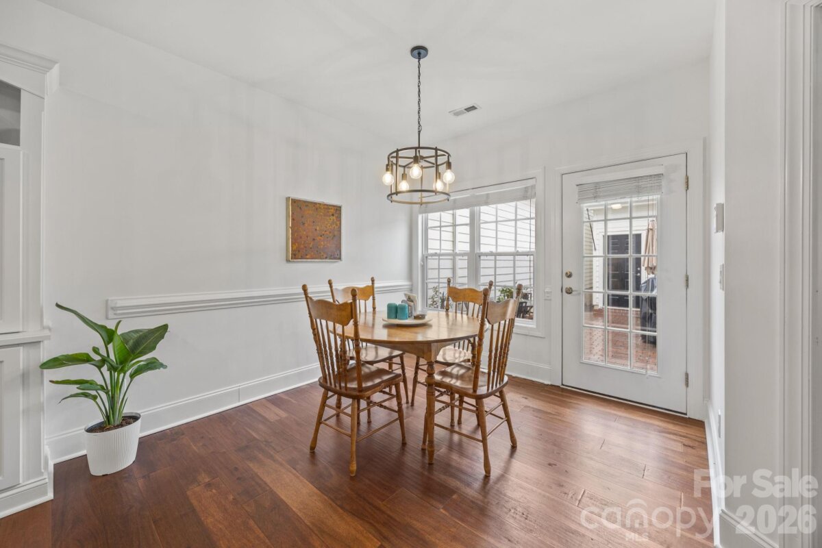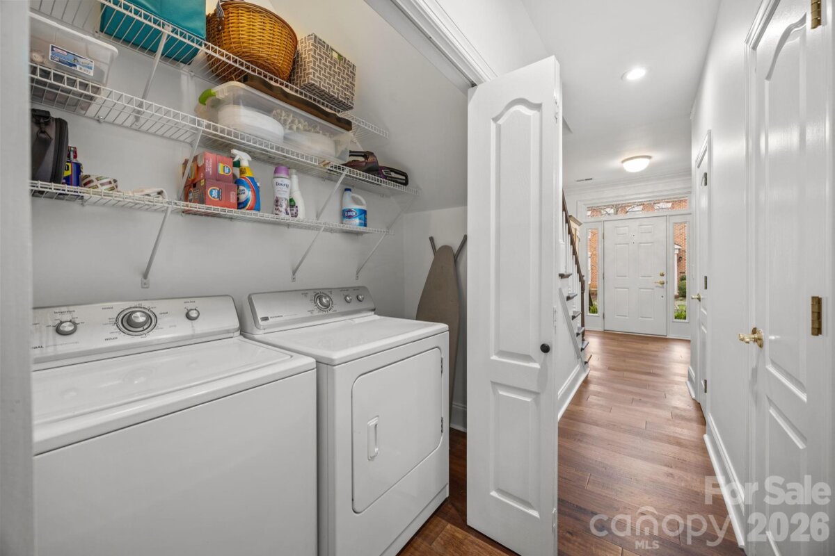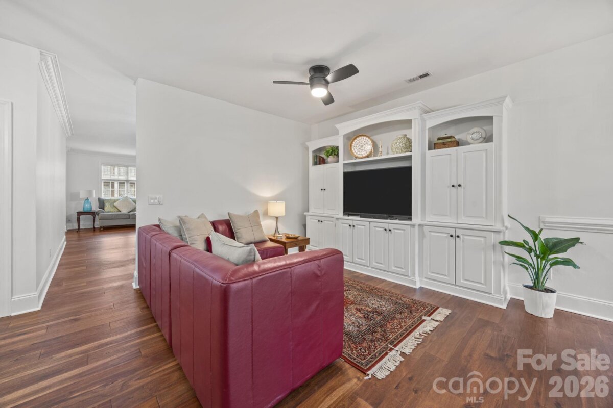 Welcome to this newly updated 2-story townhome, nestled within the coveted St. Albans neighborhood of Davidson. This 3 bed/2.5 bath Cunnane-built home features exquisite crown-molding downstairs and custom built-ins in the living room, family room, and the 3rd bedroom (currently being used as an office.) Hardwood floors run throughout the whole home with the exception of the upstairs bathroom. No carpet. The abundance of windows and the white neutral paint creates a light and airy feel with a wealth of natural light. The living room offers a welcoming gas fireplace for those chilly evenings. The spacious primary suite is on the main floor with dual walk-in closets and an ensuite bath with garden tub, large tiled shower and dual sink vanity. The kitchen has a gas range, large island, and new granite countertops that seamlessly flow into the matching backsplash. Ample cabinetry, pantry, and counter space adds great functionality to the space. Dining area, casual family room, half bath, laundry, and breakfast area complete the downstairs. Upstairs there are 2 additional bedrooms, a loft area, a full bath, and an extra large walk-in storage area. Outside is a enclosed private terrace with a gas grill hookup, great for entertaining. Two car garage in rear backs up to alley. The neighborhood is filled with tree-lined streets and manicured green spaces, as well as a dog park, playground, and walking trails. Downtown Davidson is less than 1 mile away with its award-winning restaurants, boutiques, coffee shops, bookstore, and local library. Easily stroll to town to enjoy special events at Davidson College, Concerts on the Green, the weekly Farmer's Market, or other special community offerings. Sophisticated townhome, low-maintenance living and prime location!