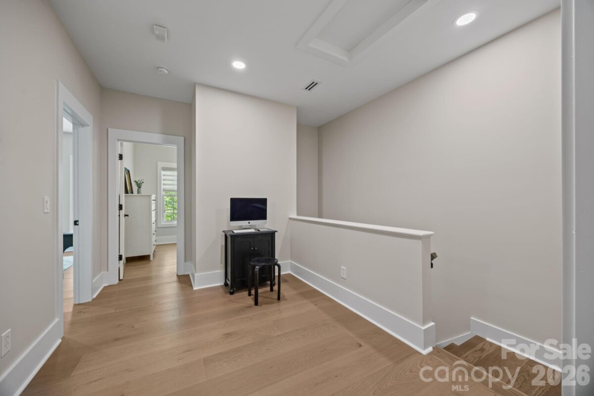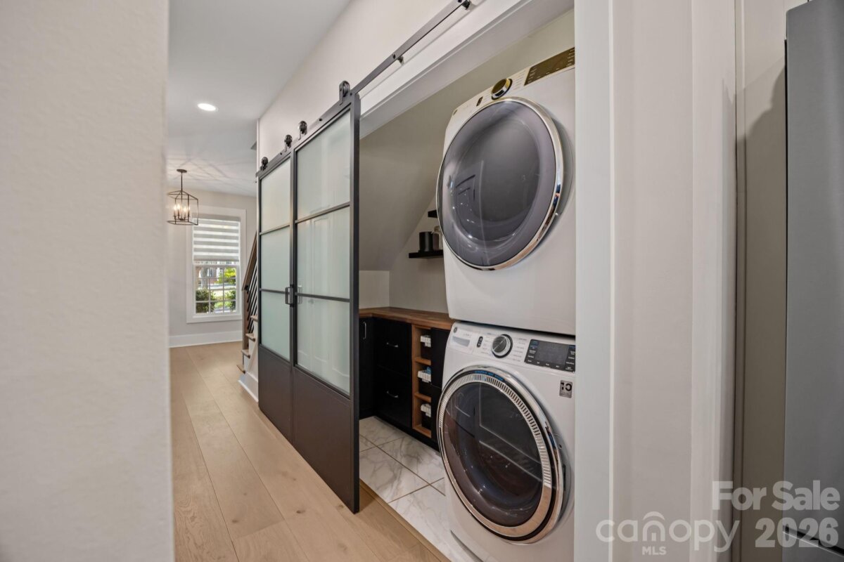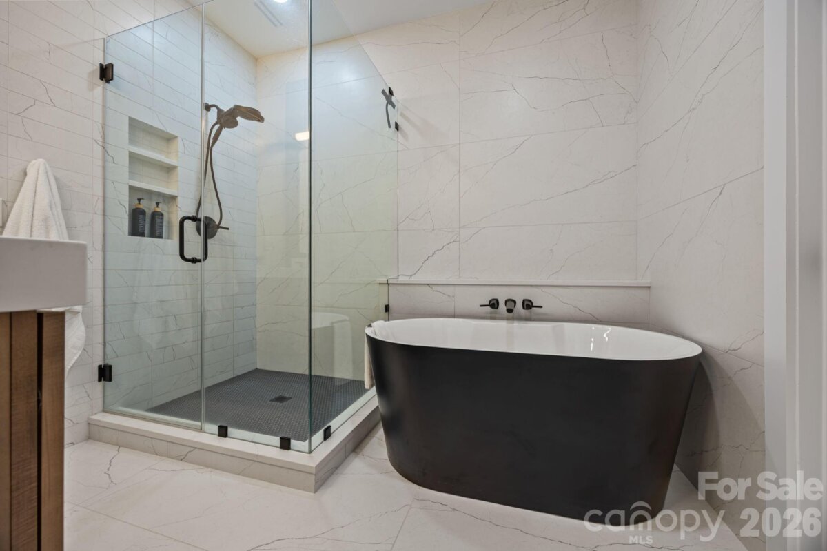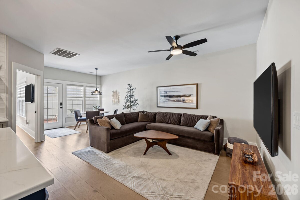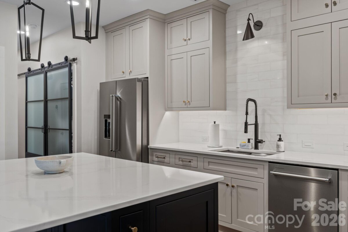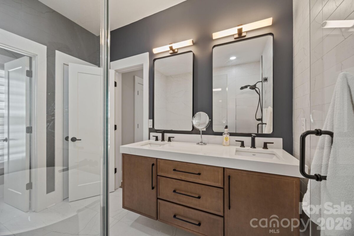 Fully renovated from top to bottom, this exceptional St. Albans townhome offers a rare blend of custom design, high-end finishes, and low-maintenance living in one of Davidson’s most desirable walkable neighborhoods. Located directly across from the park, this one-of-a-kind home has been thoughtfully transformed well beyond a typical update, with no detail overlooked. Highlights include a main-level primary suite, wide-plank engineered hardwoods throughout, including the stairs and bedrooms, all new upgraded interior doors and custom trim work, and a stunning chef’s kitchen with custom cabinetry, quartz countertops, commercial-style gas range, marble backsplash to the ceiling, and a dramatic statement hood. The open living space is anchored by a sleek linear gas fireplace with full-height stone surround and floating shelves, while the home’s modern design continues with a custom stair railing, and beautifully finished details throughout. Spa-like bathrooms feature floating hardwood vanities, oversized tile, black fixtures, and a freestanding soaking tub in the primary suite. Additional features include a custom laundry and storage space with modern glass-and-metal style sliding door, finished flex room ideal for an office, gym, or creative space, EV-ready garage, and new HVAC and water heater (2025). A truly turnkey opportunity for the buyer seeking style, quality, and walkability, just moments from Davidson’s shops, dining, and charm!