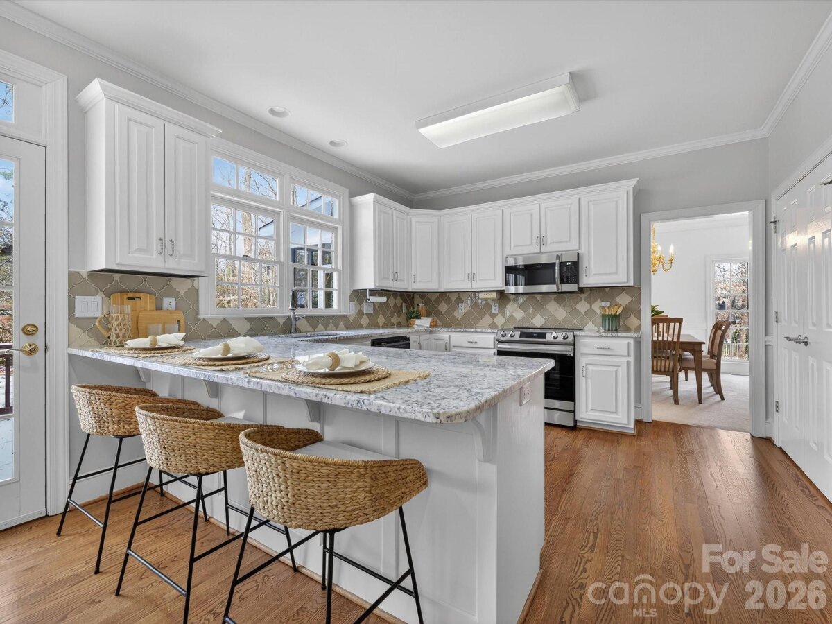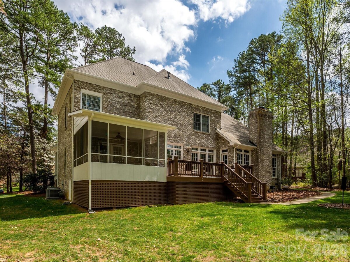 Full brick home situated on a flat 1.25-acre lot in Davidson, offering a parklike setting with a southern-facing front porch. Outdoor features include a screened porch, private deck ideal for entertaining, and horseshoe pits. The home offers four bedrooms and 2.5 baths with all bedrooms located upstairs, along with a spacious bonus room; pool table to convey. Interior highlights include a hardwood foyer, hardwood floors in the kitchen and breakfast area, and a renovated kitchen. Main-level office. Two-story great room with fireplace and dual staircases—one from the foyer and one from the great room. Community amenities include approximately 27 acres of common area, a 4-acre pond, tennis court, basketball court, and walking trails.