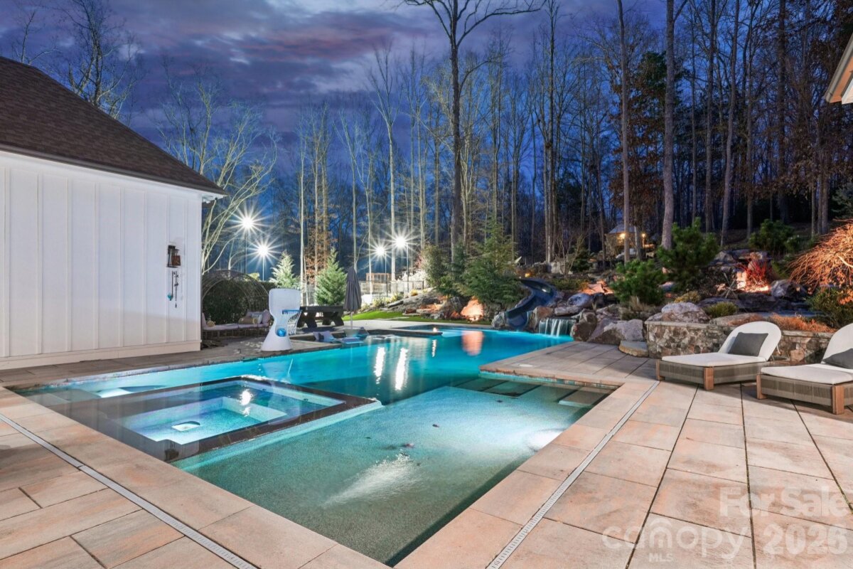 Exceptional luxury living in the highly sought-after River Run community of Davidson. Situated on a private 1.5+ acre estate lot, this stunning custom home blends elegant design, modern comfort, and resort-style outdoor living. Thoughtfully designed with expansive living spaces, high-end finishes, and seamless indoor-outdoor flow, the home offers both sophistication and functionality for everyday living and entertaining. The chef’s kitchen features professional-grade appliances, a large center island, and custom cabinetry, opening to spacious living and dining areas filled with natural light. The main level includes a luxurious primary suite and guest accommodations designed for comfort and privacy, while additional living areas and flexible spaces throughout the home provide room for work, fitness, and entertainment. Step outside to your private backyard retreat designed for year-round enjoyment. The grounds feature a custom pool with slide, pickleball court, basketball court, private putting green, and multiple gathering areas including a fire pit with seating, outdoor kitchen by the pool, and a wood-fired pizza oven—creating the ultimate setting for entertaining and recreation. Additional highlights include a 4-car garage plus dedicated golf cart garage, beautifully landscaped grounds, and expansive outdoor living spaces. Located within the desirable River Run community offering golf, tennis, swimming, and scenic walking trails, all just minutes from charming downtown Davidson, Lake Norman, dining, and shopping.