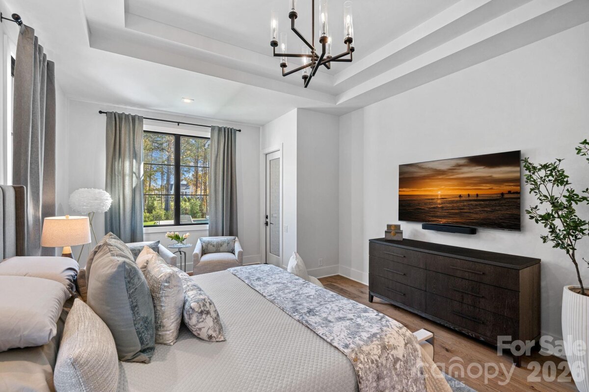 Located in Davidson Farms – Stunning Modern Home by AR Homes. This exquisite residence boasts spectacular features throughout. The primary bedroom, guest suite, and a dedicated office/den are conveniently located on the main floor, alongside a large open kitchen that includes a pass-through window to the covered porch. The great room and bar/wine room create an inviting space perfect for entertaining.Enjoy seamless indoor-outdoor living with pocketing doors leading to a covered porch equipped with remote retractable screens, a cozy fireplace, and an outdoor kitchen. A luxurious heated salt-water pool and spa add to the outdoor oasis, complemented by a 676 sq. ft. putting green featuring five cups.The kitchen is a chef's dream, featuring custom cabinetry, quartz countertops, a professional 48†range with dual ovens and six burners, plus a 48" built-in refrigerator. The spacious walk-in scullery includes a sink, dishwasher, and an additional refrigerator for ample storage.Retreat to the primary bath, which offers an oversized wet room, quartz counters, and a freestanding tub. The large, bright foyer with a floating staircase invites you into the home.Upstairs, you'll find a bonus room, club room with a wet bar, and a media room, along with three additional bedrooms, three full baths, and a half bath. There's also flex space ideal for an exercise area or playroom or walk-in conditioned storage space. Additional features include a upgraded/luxury lighting throughout, sealed crawlspace and a three-car side-load garage, making this home both practical and luxurious.