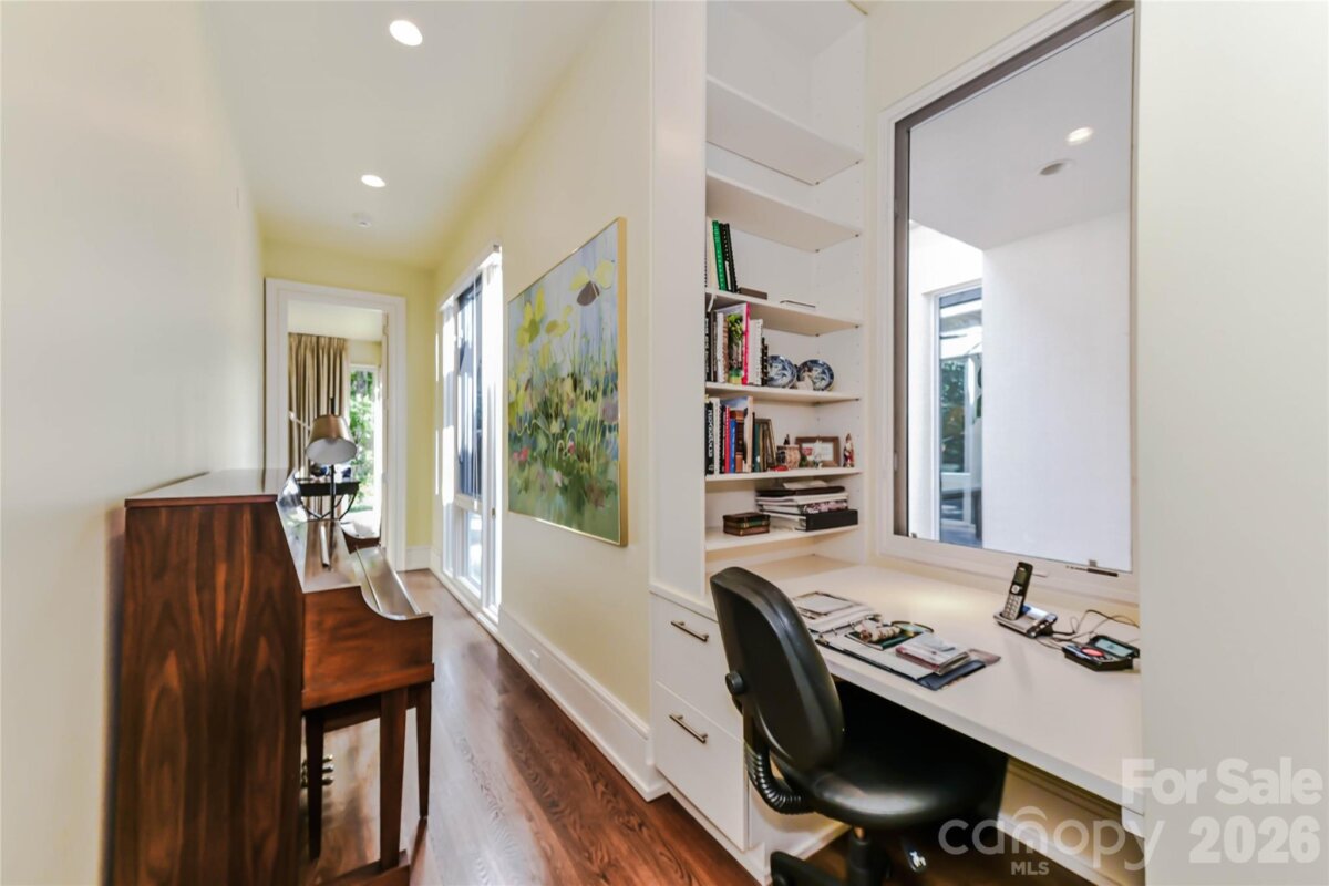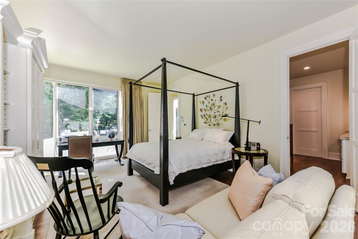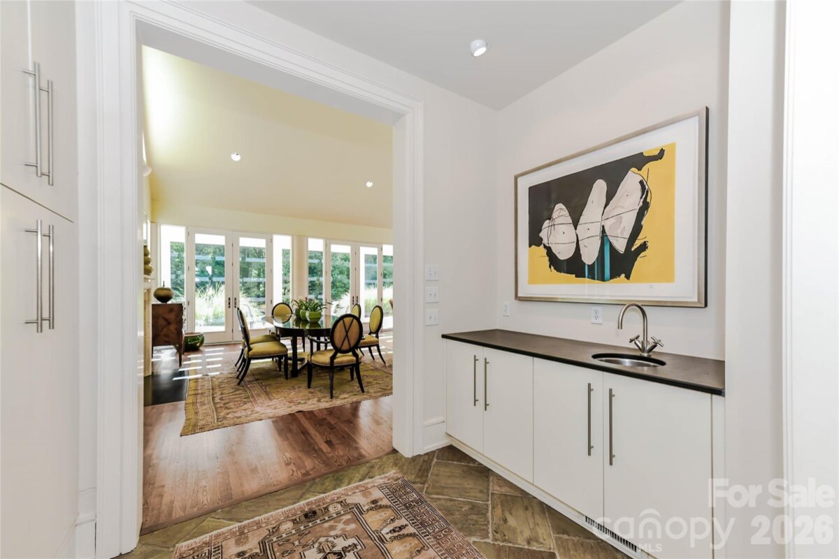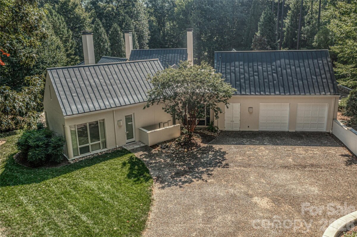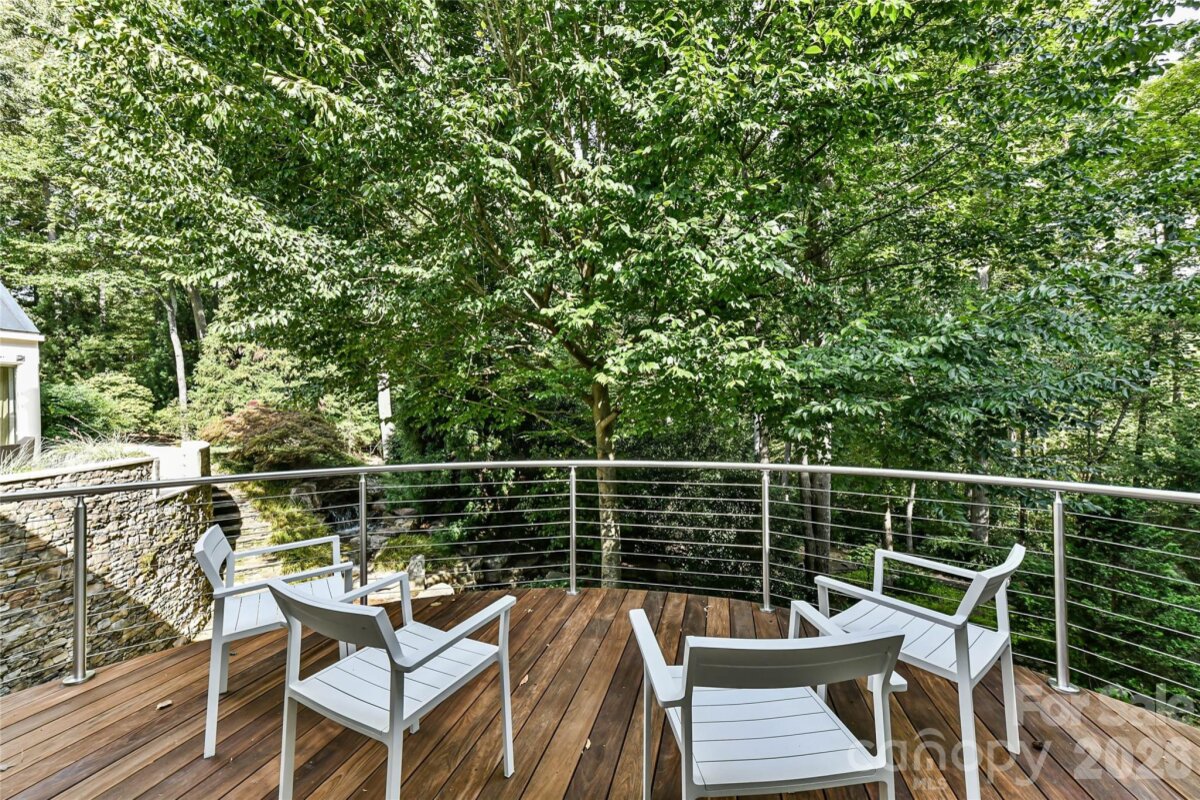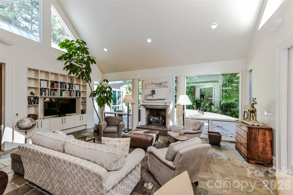 Located just 1.5 miles from downtown Davidson, 606 Ardrey Circle is one of the area’s most beautiful homes! The owners took great care in planning every single detail and have lovingly maintained it. The exquisite residence sits on a private 2.64-acre property, enveloped by gorgeous, mature trees. Accessory Dwelling Unit would most likely be allowed. Please confirm with the Town of Davidson. The grounds are absolutely beautiful, with a grassy lawn, stone walls and steps, woodland paths, stone firepit, sculptures and multiple spaces to relax. One of the most stunning features is a large stone waterfall that is visible from inside the house. There is ample room for a large pool and pool house. Built by Gene Keener (Fine Homes), the modern home was designed by Charlotte architect Jim Meyer and blends in perfectly with the natural surroundings. Light is abundant in each room and outdoor spaces abound. Most of the living space is on the main level, including 4 bedrooms and 4 & 1/2 bathrooms. The oversized, custom glass front door is surrounded by transoms and leads to a gracious entrance hall and spectacular central gallery atrium with glass ceiling. The house is composed of six pods around the central living space. The spacious living room/ dining room is vaulted and features 2 wood burning fireplaces and a wall of French doors that open to a generous stone veranda with pergola with a lovely trellis ceiling. A partially covered tile patio off the great room offers an amazing view of the waterfall and the surrounding forest. The great room has a wood burning fireplace and built-in bookcases and is open to the kitchen, which has honed granite counters and stainless steel appliances, including a gas stove and stainless steel vent. A large butler’s panty for additional storage and counter space is adjacent to the kitchen. Ten foot ceilings downstairs, tall wood doors and built-ins add to the comfortable, elegant feel. The stone flooring in kitchen, family room and all 3 full baths is heated. The two primary bedrooms are located near the great room and back hall which leads to an oversized 2 car garage. A spacious laundry utility room is conveniently located there along with back stairs that lead to a bonus room and loft area. Two additional bedrooms with en-suite bathrooms are off the foyer. There are two wells on the property that provide water for the waterfall feature & irrigation for the gorgeous grounds. 606 Ardrey Circle is an amazing home in a truly phenomenal location in the heart of Davidson.
