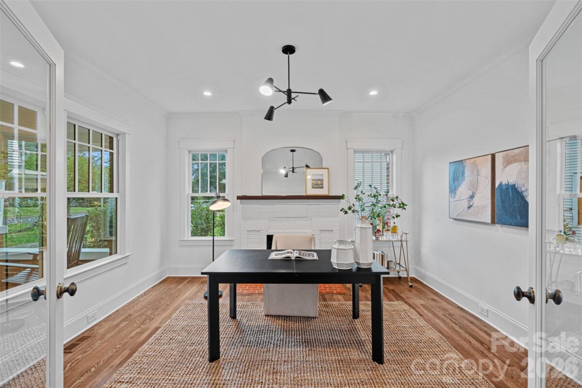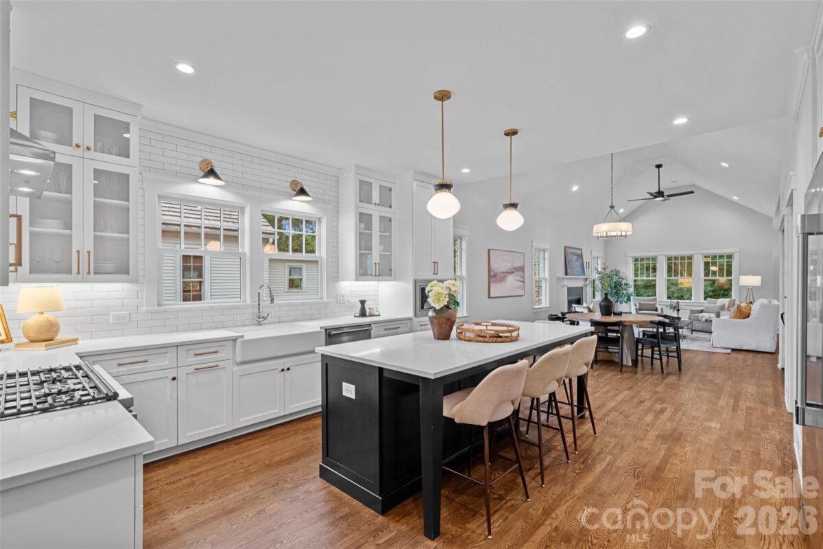 Experience the rare opportunity to own a piece of Davidson’s history right on Main Street in the heart of downtown. The iconic John Raymer House, Circa 1925, has been masterfully renewed blending timeless charm with modern sophistication. Original refinished hardwoods, an inviting wraparound porch and four fireplaces showcase its heritage, while the show stopping gourmet chef's kitchen with expansive island & scullery that flows seamlessly into the casual dining and spacious living room with vaulted ceiling anchors the home for today’s lifestyle. The main level also features a dedicated front office, formal dining room, drop zone and laundry, along with the primary retreat boasting its own fireplace, sitting room, spa-inspired bath & custom walk-in closet. Upstairs offers a loft and three spacious ensuite bedrooms. The finished walkout basement with full bath is ideal for guests or entertaining, and the detached garage with unfinished quarters above offers endless possibilities.