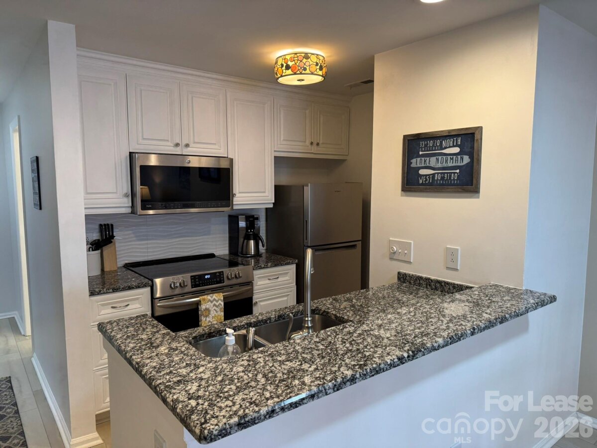 Two bedroom, two full bathroom furnished condo in the Edgewater complex of the highly desirable Davidson Landing. The exterior of the Edgewater complex has been completely renovated with new siding, roof, sidewalk, parking lot, and landscaping. This second floor condo has an excellent unobstructed view of Lake Norman. Kitchen has updated cabinets, granite countertops, tile backsplash, and stainless steel appliances. The living area and both bedrooms have new LVP floors. Both bathroom have new tile showers. Community amenities included, the Lake, day dock, pool, tennis courts, pickle ball courts, basketball, and fitness/walking trails. Boat slips can be leased. Water is included. Condo is being leased furnished. Tenant is responsible for electricity and internet service.