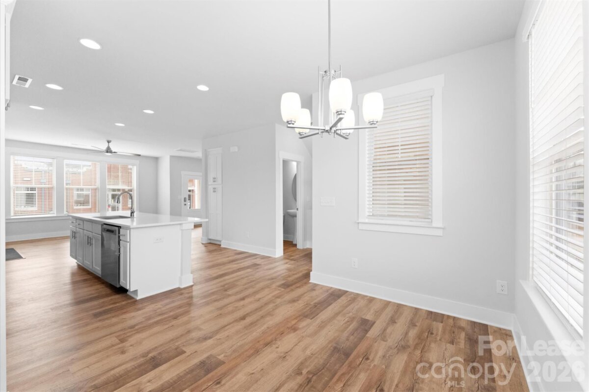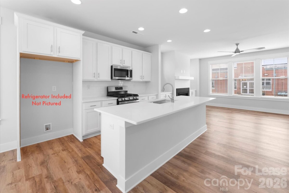 Modern 2022 built end unit townhome. Three story townhome. Downstairs: guest suite, full bath, 2 car garage with extra storage area. Main: family room, kitchen, pantry, dining room, covered porch, and half bath. Upstairs: primary bedroom and bath, balcony, second bedroom and bath, laundry room. This open floor plan unit features beautiful LVP floors throughout, oversized island, gas fireplace, quartz countertops, white shaker cabinets, stainless steel appliances, washer/dryer, craftsman style molding, modern fixtures. Located across the street form the Community School of Davidson, this home is less than a mile walk from downtown Davidson. This community has lake (Lake Davidson) access for swimming and paddle sports. Application fee $80 per resident 18 yo or older. No admin or move-in fees. $50 a month per rent for approved pet.
