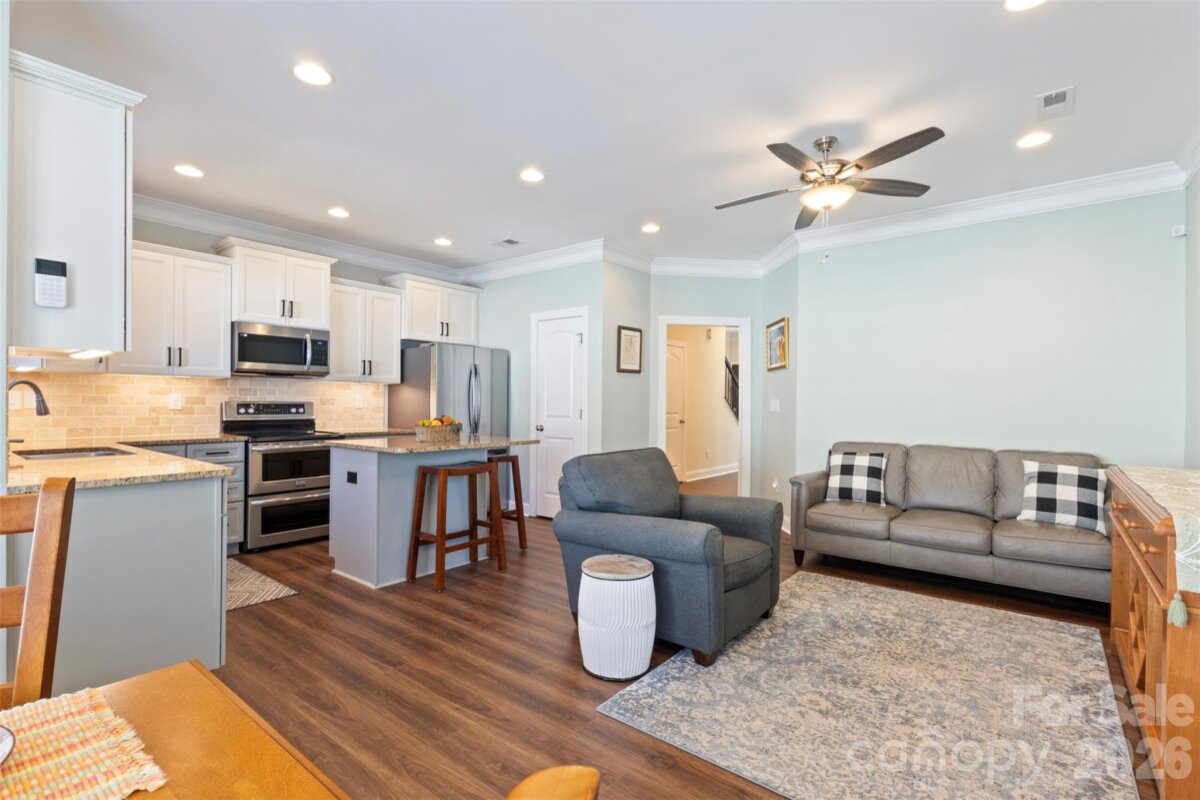 Beautifully updated end-unit townhome offering 3 bedrooms, 3.5 baths, and rare dual-primary flexibility—choose your primary suite upstairs or on the main level. Being an end unit, this home is filled with exceptional natural light, creating an airy, uplifting, and beautifully open feel throughout. The kitchen features granite countertops, an island, abundant cabinetry including glass-front accents, and stainless steel appliances. Plantation shutters on the main level and LVP flooring throughout add both style and durability. The great room is warm and inviting with an open-concept living area off the kitchen. Upstairs, you’ll find the laundry room and two spacious bedrooms—each with its own full bathroom. One of these bedrooms can serve as a second primary suite. A convenient half bath is located on the main level for guests. Outside, the fenced backyard oasis is a standout feature—complete with a patio, landscape lighting, privacy fencing, and a gate that leads to the common area. It’s the perfect tucked-away retreat. The detached 2-car garage sits at the rear of the home for easy access. Residents enjoy sidewalks, streetlights, and the option to purchase membership to the Westport Tennis & Swim Club, offering clay tennis courts, pickleball, a clubhouse with social events, outdoor pool, fitness center, and more. You’re also just steps from Westport Golf Course and minutes to Lake Norman, shopping, dining, and an easy commute to Charlotte via Highway 16. A bright, airy end-unit with privacy, upgrades, and an unbeatable location—this townhome truly has it all.
