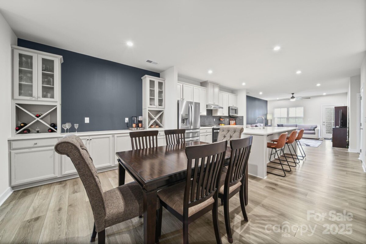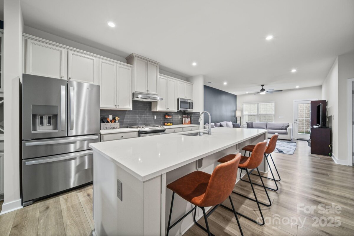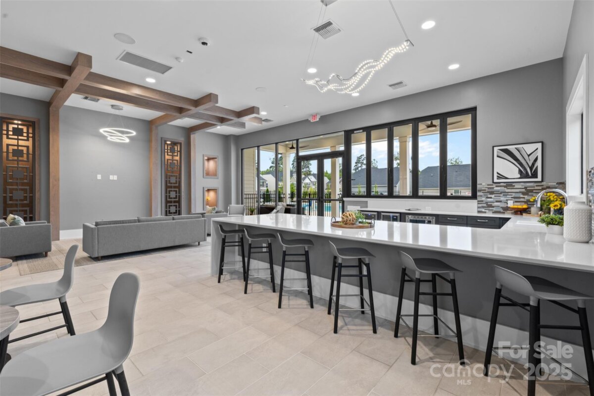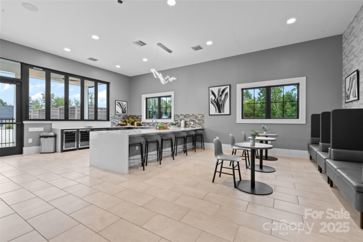 This beautiful townhouse in Denver, NC, is move-in ready! The kitchen features quartz countertops, a stylish blue tile backsplash, an island with w/additional seating, a gas range & a walk-in pantry. A beautiful coffee/wine bar has been built, with matching cabinets like the kitchen. The open layout flows from the kitchen to a dining area & a separate living room with access to the covered back patio—perfect for relaxing or entertaining. A tray ceiling & custom-designed walk-in closet highlight the main-level primary suite. En-suite bath includes a walk-in shower. A convenient half bath & laundry room complete the main level. Washer and dryer included. Upstairs, find a dedicated office or study, two additional bedrooms & a full bath—ideal for guests, family, or flexible living arrangements. Enjoy all that Rivercross has to offer with w/amenities that include a clubhouse, fitness center & outdoor pool—low property taxes.