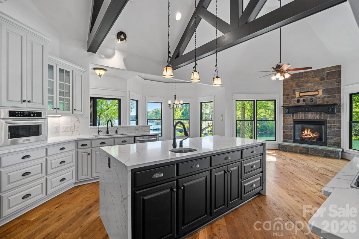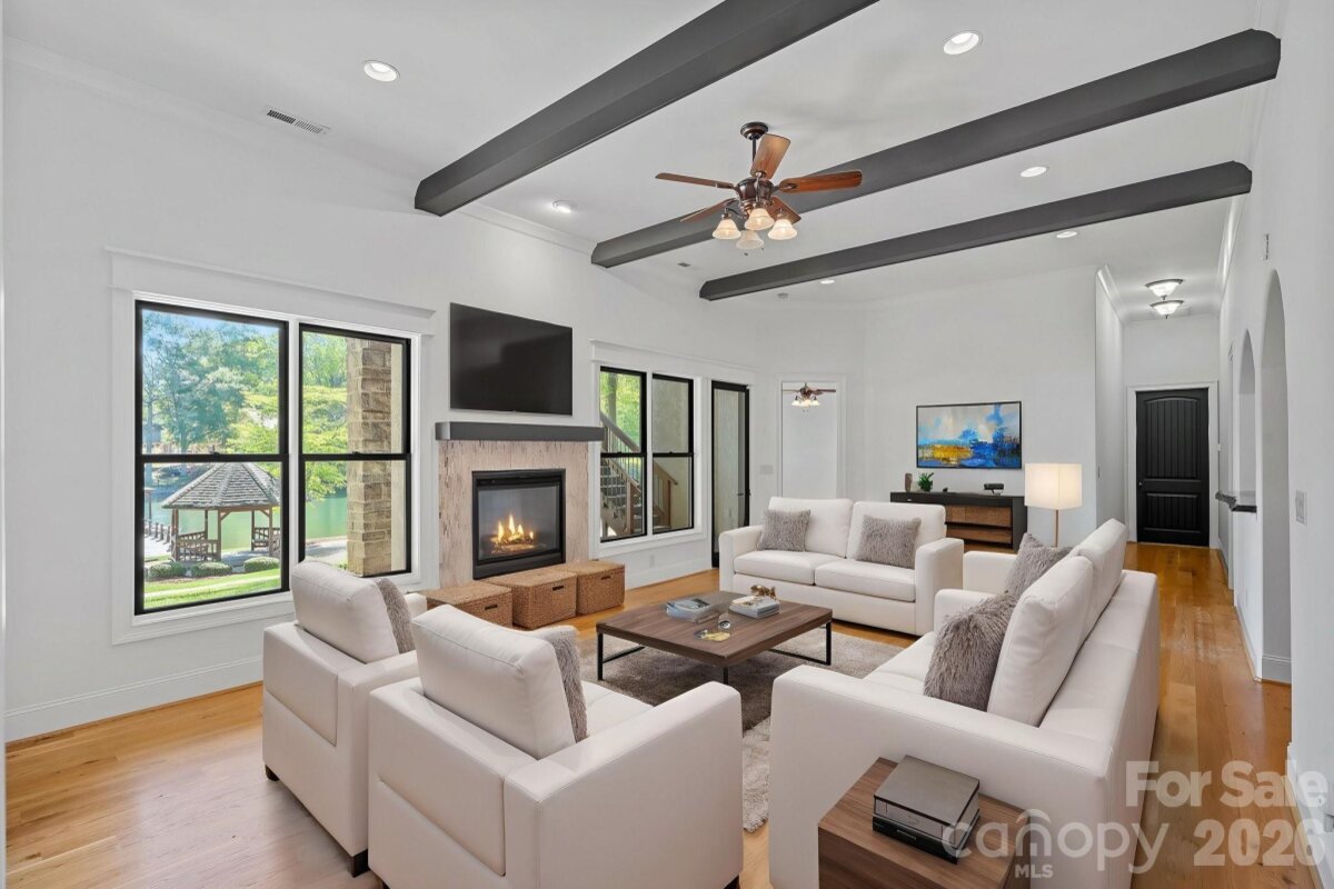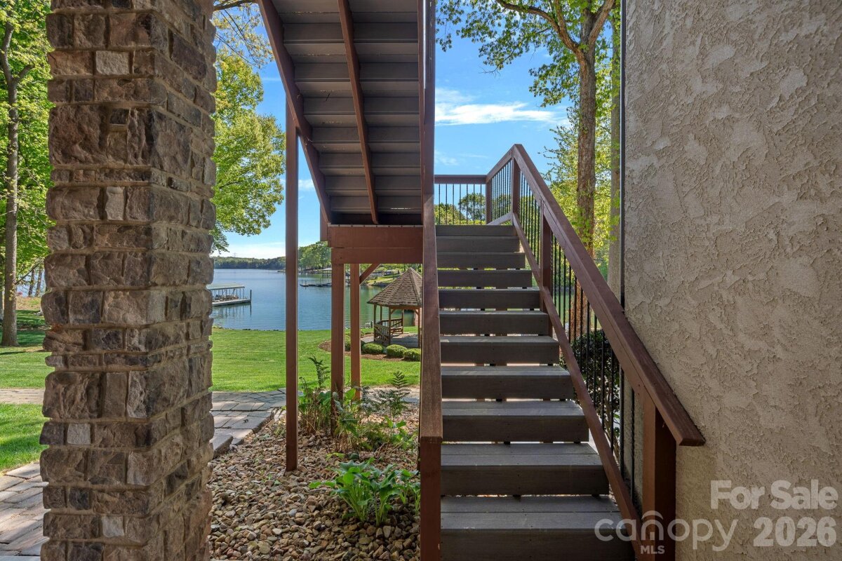 Beautiful, waterfront home with over 106' of shoreline, situated on a tranquil deepwater cove. Open-concept living leads you to a large wrap-around covered balcony equipped with ceiling fans for added outdoor comfort; or take a dip & soak up the sun in the peaceful infinity pool with hot tub overlooking Lake Norman. Enjoy meal-prep in the gourmet, eat-in kitchen with double-oven, gas cooktop, & lake views, open to the family room with gas fireplace. Retreat to the main level primary suite featuring balcony access & a large ensuite with garden tub. A guest bedroom, huge laundry room, mud room, den/office complete the main level. The Lower level features a second primary suite & additional guest bedroom, bonus room, second laundry room, custom-built bar, & flex room! Also featuring a lake-level garage off the basement, perfect for lake toys and/or yard tools. Newly painted interior (walls/trim/windows), new kitchen countertops. An impressive lake-front home where you can live/work/play!