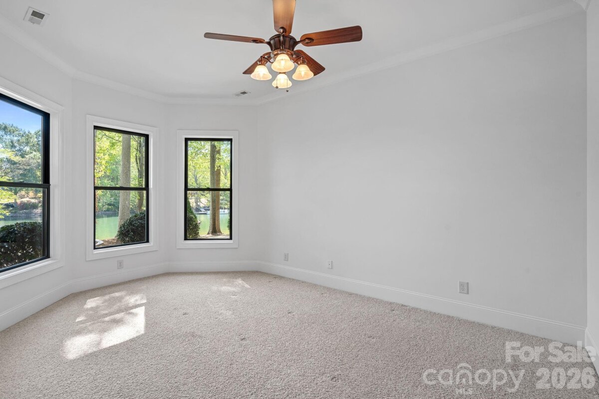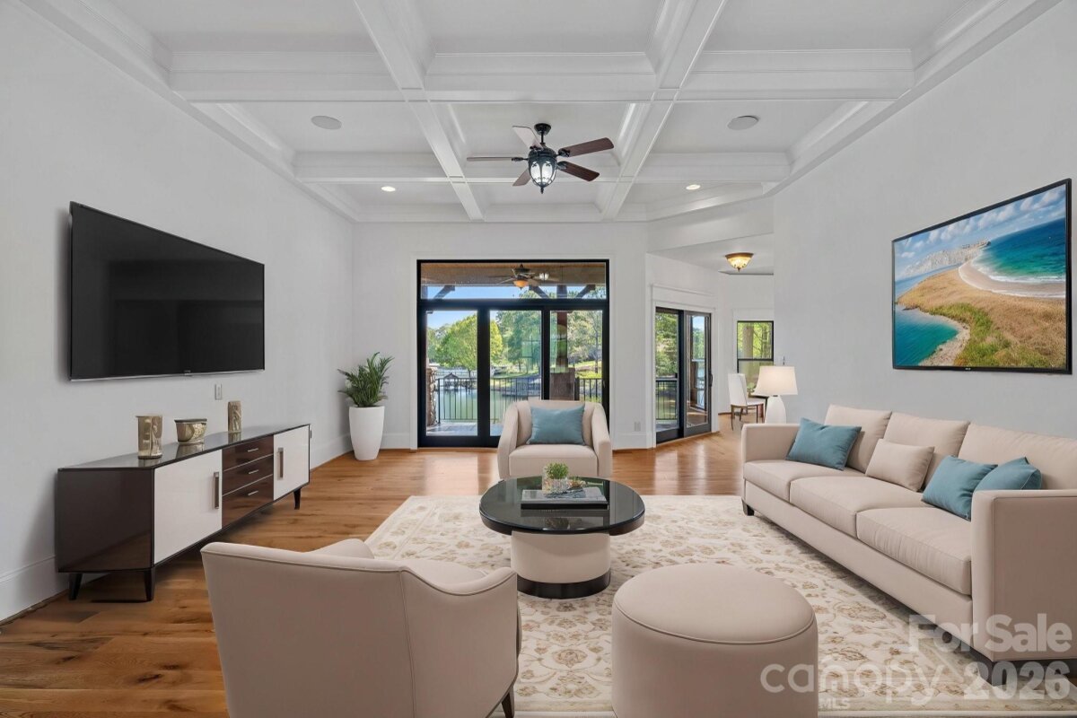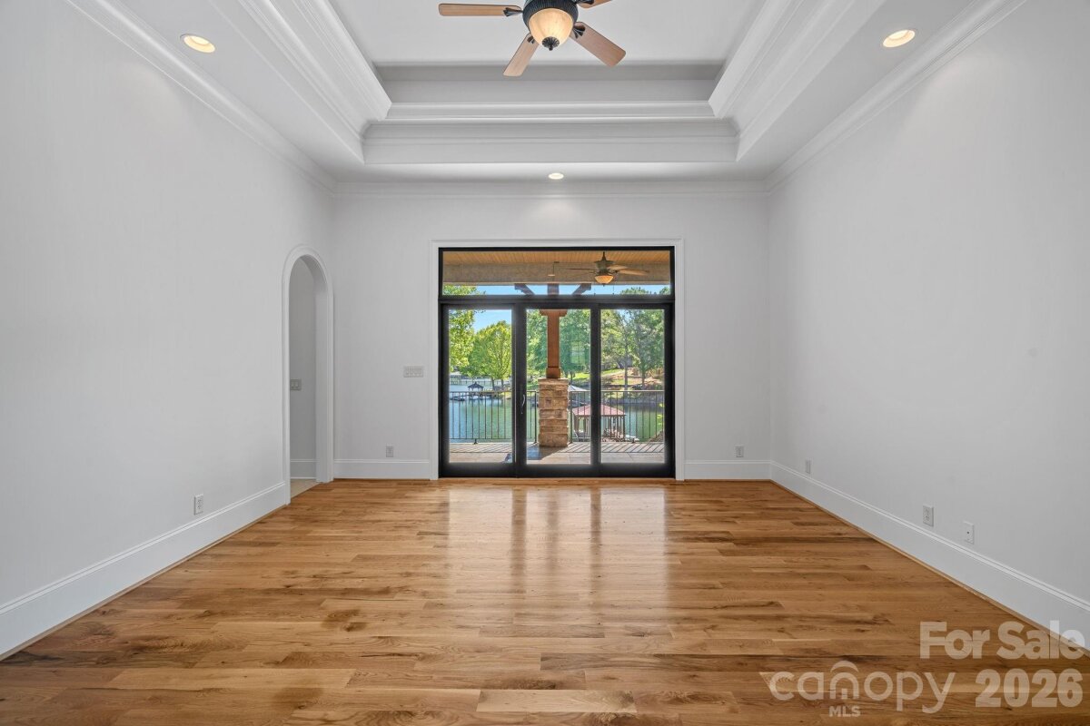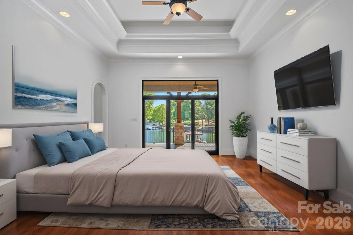 Beautiful, waterfront home with over 106' of shoreline, situated on a tranquil deepwater cove. Open-concept living leads you to a large wrap-around covered balcony equipped with ceiling fans for added outdoor comfort; or take a dip & soak up the sun in the peaceful infinity pool with hot tub overlooking Lake Norman. Enjoy meal-prep in the gourmet, eat-in kitchen with double-oven, gas cooktop, & lake views, open to the family room with gas fireplace. Retreat to the main level primary suite featuring balcony access & a large ensuite with garden tub. A guest bedroom, huge laundry room, mud room, den/office complete the main level. The Lower level features a second primary suite & additional guest bedroom, bonus room, second laundry room, custom-built bar, & flex room! Also featuring a lake-level garage off the basement, perfect for lake toys and/or yard tools. Newly painted interior (walls/trim/windows), new kitchen countertops. An impressive lake-front home where you can live/work/play!