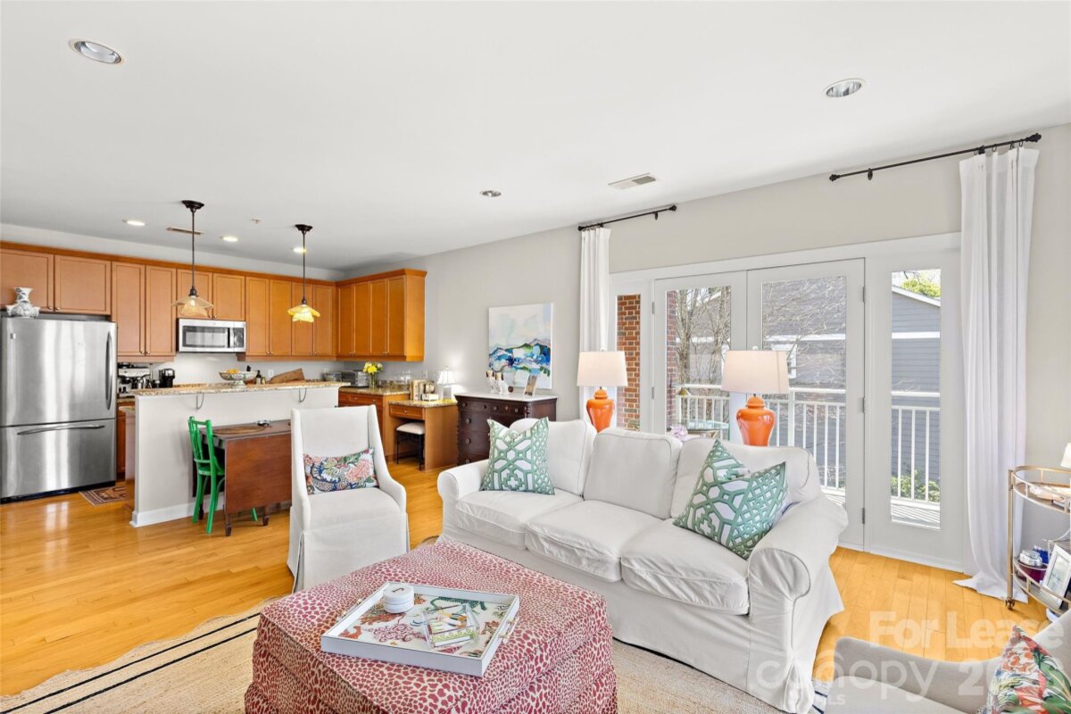 Bright corner unit in the heart of Dilworth offering the walkable, in-town lifestyle buyers are looking for. This 2-bedroom, 2-bath condo features an open living space filled with natural light, creating a bright, welcoming feel throughout. French doors lead to a private wrap-around balcony—perfect for morning coffee or evening unwind. The kitchen is fully equipped with range, microwave, dishwasher, and pantry, and opens seamlessly to the main living area—ideal for everyday living and easy entertaining. Hardwood floors run throughout the main living spaces, with soft carpeting in the bedrooms for comfort underfoot and added sound absorption. Secure building with key-fob access, elevator, and one assigned space in a gated, covered garage, plus ample guest parking. Ideally positioned near East Blvd, offering easy access to Dilworth’s restaurants, shops, greenway, and Uptown. Clean, well-maintained, and move-in ready. Exceptional walkability puts the best of Dilworth just outside your door. Enjoy a short stroll to two nearby grocery stores and local favorites like Foxcroft Wine, The Backyard Brew, and Dilworth Social House, along with easy access to Freedom Park, Latta Park, and the Little Sugar Creek Greenway. A rare opportunity to enjoy in-town living with comfort, convenience, and everything Dilworth has to offer just steps away.