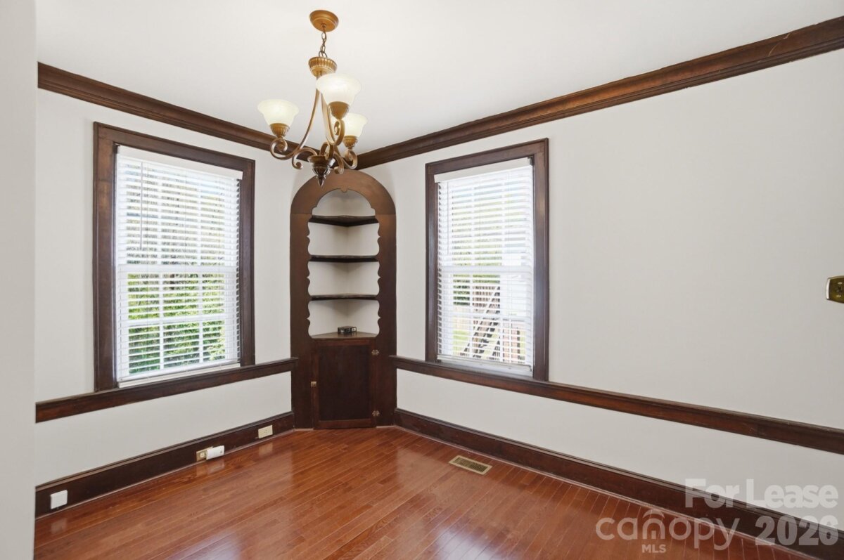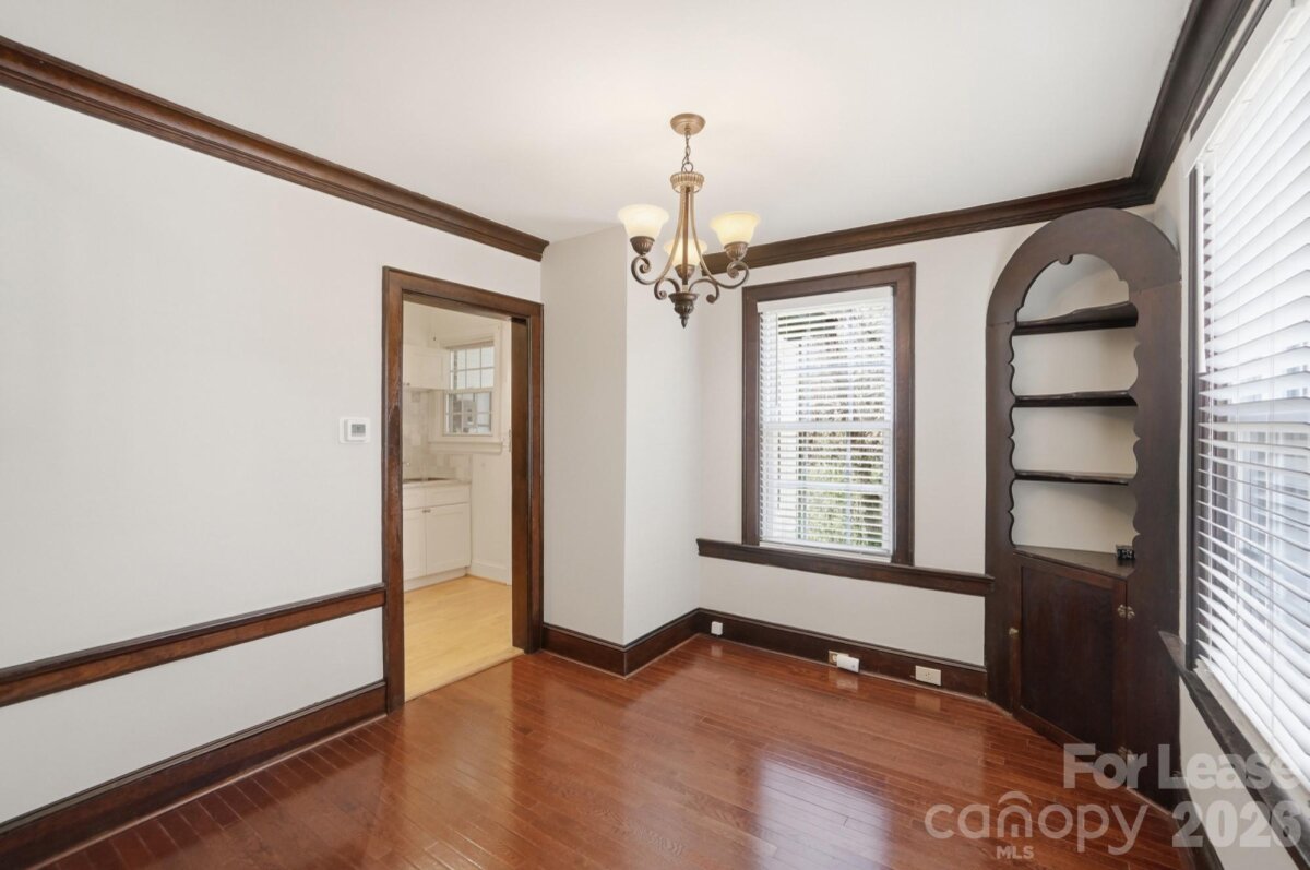 Full of character and classic charm, this 2-bedroom duplex in the heart of Dilworth offers timeless details you don’t find in today’s construction. From the moment you enter, you’ll notice the gleaming hardwood floors, beautiful crown molding, and original woodwork that give the home a warm, inviting feel. The spacious living room features a decorative fireplace with built-ins, while the dining area showcases classic details perfect for everyday living or entertaining. The kitchen is equipped with well-maintained appliances and offers plenty of functionality. Both bedrooms are generously sized with ample closet space, and the tiled bathroom adds to the home’s vintage appeal. One of the standout features is the large screened-in front porch, perfect for relaxing and enjoying the neighborhood setting. Off the kitchen, you’ll find a rear utility area with access to the basement, offering washer/dryer connections and additional storage opportunities. The home also includes a shared backyard space and one driveway parking spot. Conveniently located in Dilworth, the property offers close proximity to a variety of shopping, dining, and everyday conveniences, including grocery stores and local restaurants. Water and landscaping are included. Fireplace is decorative only.